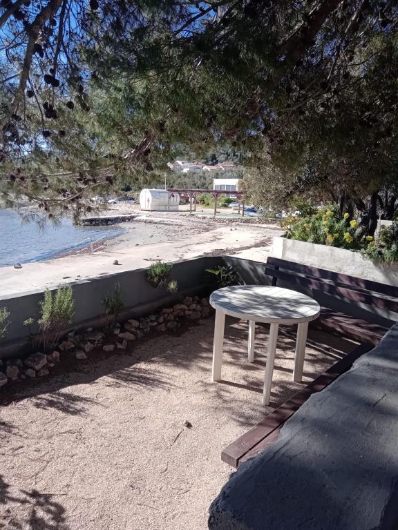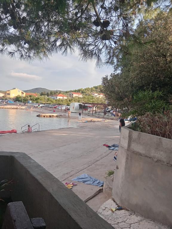 Ždrelac beach Matlovac, first row to the sea, entrance from the sandy beach, in untouched nature and greenery with the sound of the sea and the chirping of birds, fully equipped detached house, two bedrooms, one with a double bed, the other two separated. Corner living room, equipped kitchen, bathroom with shower. Own covered terrace, sandy beach, straight from the garden, clean sea. Terrace and by the sea, grill. On the beach, two cafe bars, pizza, ice cream, beach volleyball. A short walk to the village is a fish restaurant and cafe bar, a shop and a stand with fresh fruit and vegetables. Apartment as a separate accommodation unit in a separate house in the same garden full of greenery, for a small family. A small bedroom, a larger room with a double bed and kitchen and bathroom shower, covered terrace. A vacation for the soul and body, no trips to the beach, no packing of things, everything at your fingertips. All information available on WhatsApp, Viber.