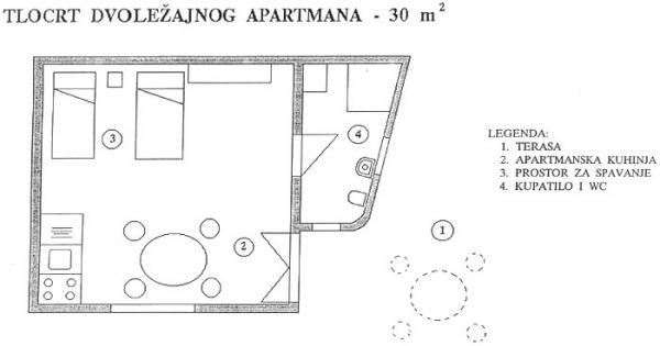 Apartments Skorić are located on the island of Žirje in the bay of Muna, only an hour and forty minutes by ferry from Šibenik. The beach is only 30 meters away from the apartment. The shop and restaurant are 200 meters away, and the post office and clinic are 1,500 meters away. We offer two apartments for rent. Each apartment has a separate entrance and a terrace with a view of the sea. Behind the house there is a barbecue table and benches for sitting and an outdoor shower. Secured parking and boat mooring.