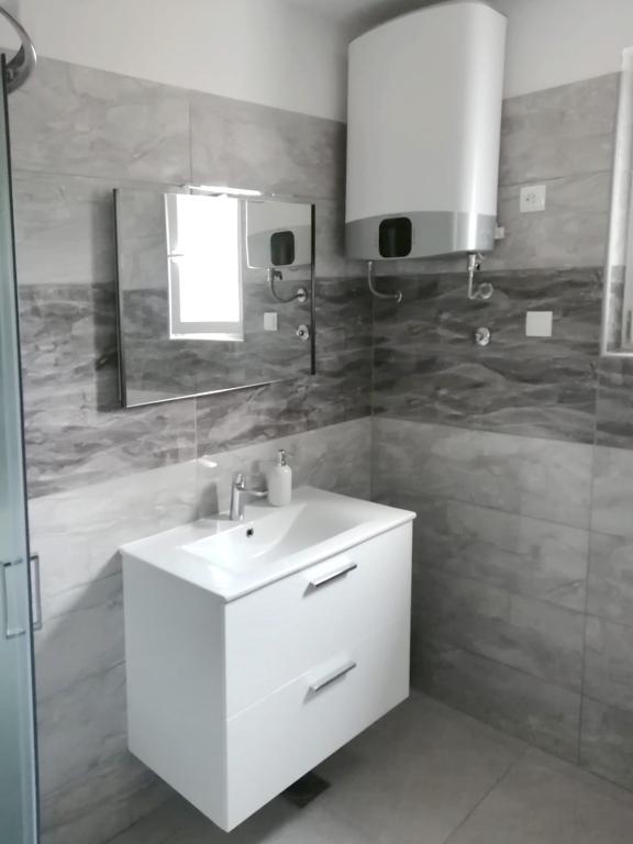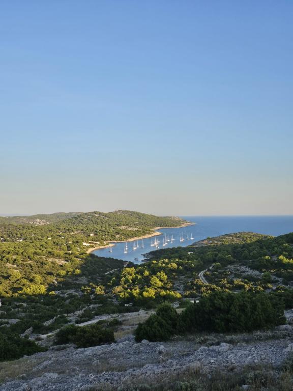 Holiday house Marie is located in Tratinska bay. The house consists of 2 bedrooms, a bathroom, a large living room and kitchen, and a large terrace (40 m2). It has one double bed and 2 single beds, and a three-seater that accommodates 2 people. You can arrange things in wardrobes or bedside tables. The kitchen is equipped with everything you need to make a great lunch, breakfast or snack, and the living room has a large TV for evening entertainment (if you don't decide to walk around the bay). The house is located in the first row to the sea, the walk to the beach takes only a few minutes. The apartment has a garden by the sea, approx. 800m2. There is a grill/oven and a fig tree that bears fruit throughout July and August. There are 2 restaurants next to the house, one 100m away and the other 200m away. In the late afternoon, you can head to the top of the bay, where there is a viewpoint with a view of the Kornate National Park, or explore the neighboring Mikavica, or go to the village along the old road.