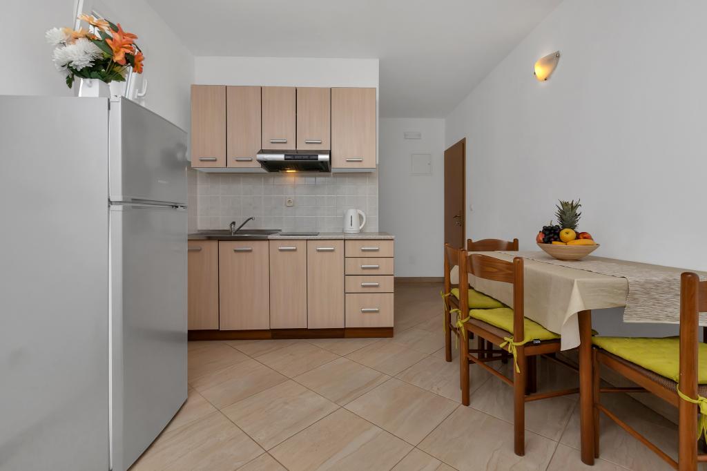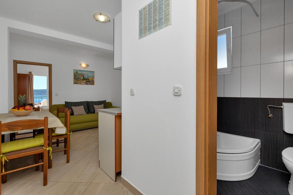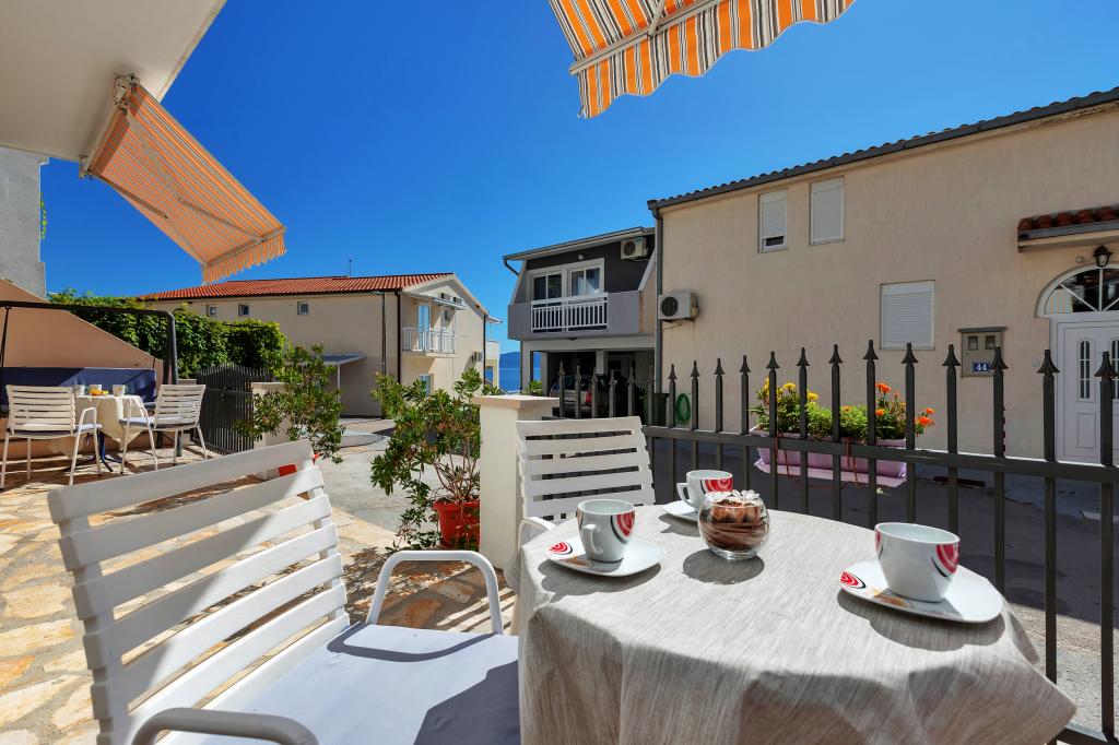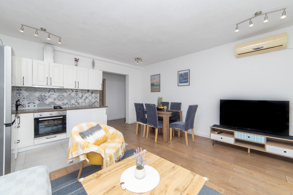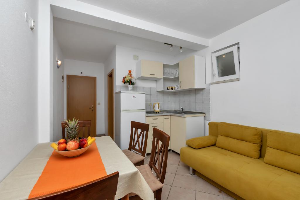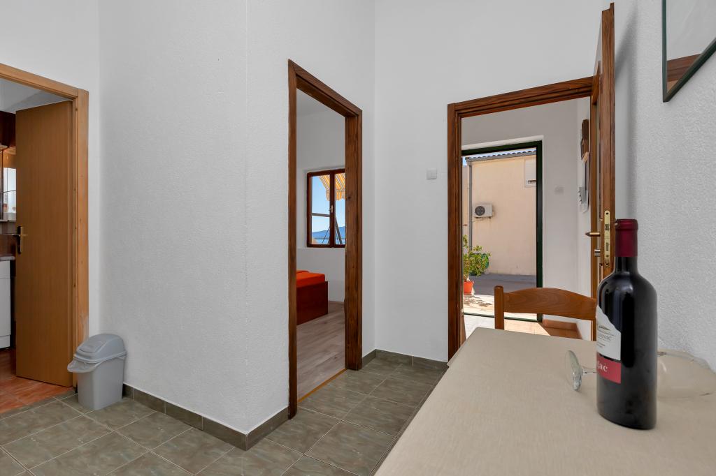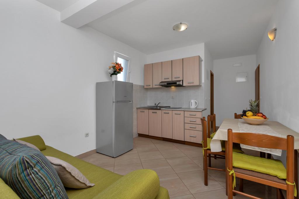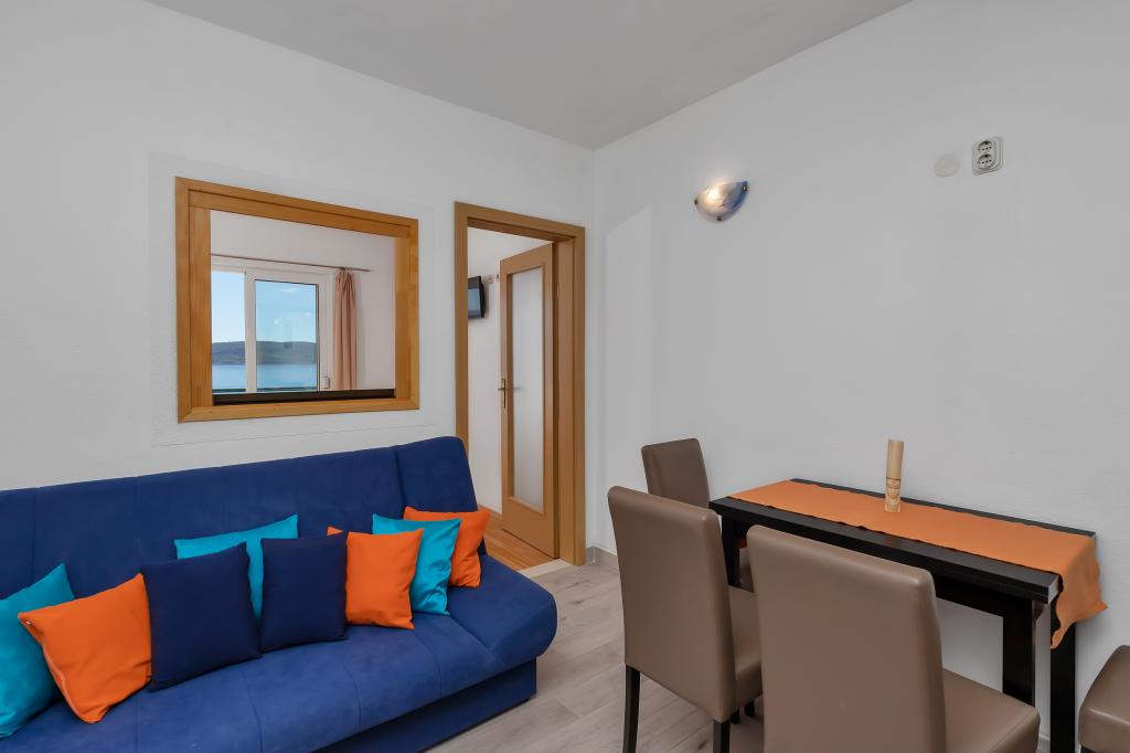 We lived in a 2+2 apartment, separate rooms, kitchenette. Everywhere clean and equipment in good condition, no old furniture, etc. The price is good in my opinion, without any additional fees for air conditioning, dog, etc.... Nightlife only on the beach, complete peace around the apartment, we were surprised. We didn't see the owners much, just the handover at the beginning and then at the end, we drove around a lot, enjoying it. Pebble beaches advantageous in that the sea is really crystal clear. If I should ever be back in the area I know where to go and I don't think I would look anywhere else if it was available. Since there is no such thing as perfection, I would like to make a small note. The pan on the induction cooker was a little difficult to heat up, it was probably not built directly for induction, but something could be done about it, it just took a little time, the rest of the dishes were fine.