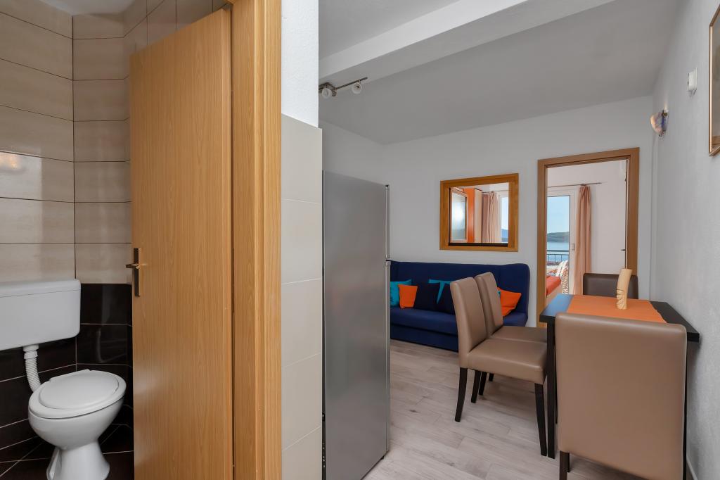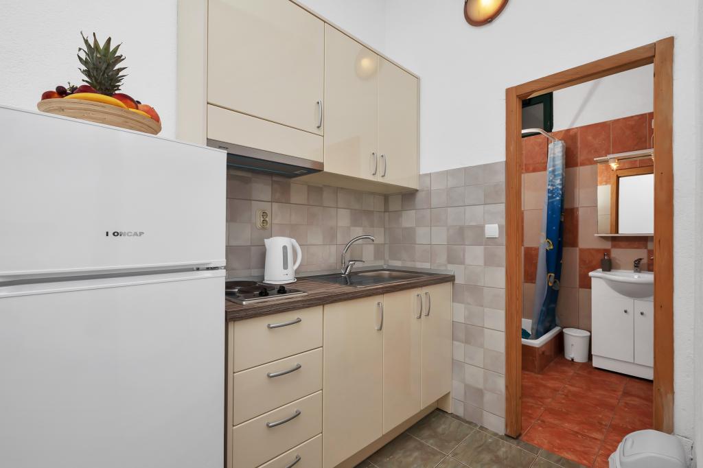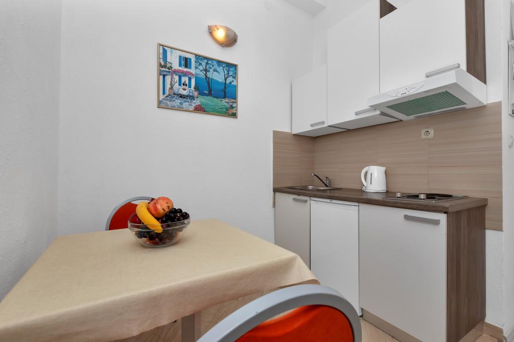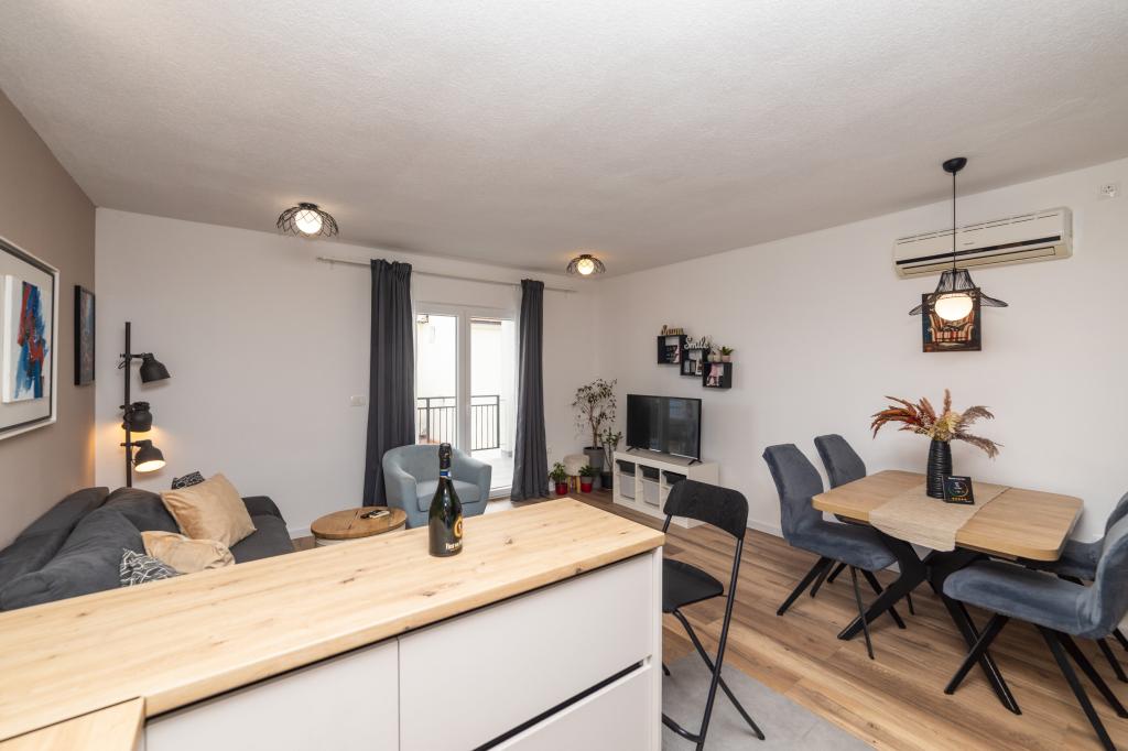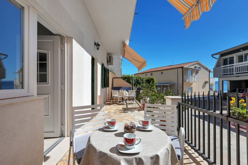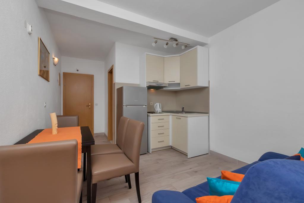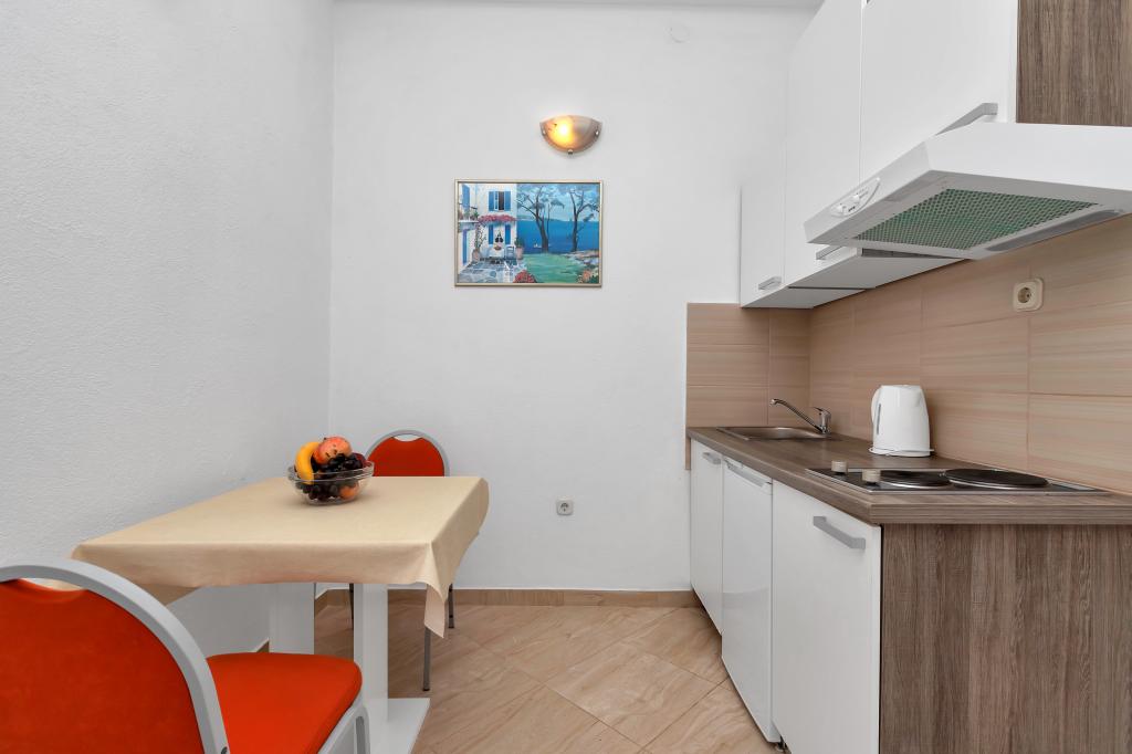 We lived in a 2+2 apartment, separate rooms, kitchenette. Everywhere clean and equipment in good condition, no old furniture, etc. The price is good in my opinion, without any additional fees for air conditioning, dog, etc.... Nightlife only on the beach, complete peace around the apartment, we were surprised. We didn't see the owners much, just the handover at the beginning and then at the end, we drove around a lot, enjoying it. Pebble beaches advantageous in that the sea is really crystal clear. If I should ever be back in the area I know where to go and I don't think I would look anywhere else if it was available. Since there is no such thing as perfection, I would like to make a small note. The pan on the induction cooker was a little difficult to heat up, it was probably not built directly for induction, but something could be done about it, it just took a little time, the rest of the dishes were fine.