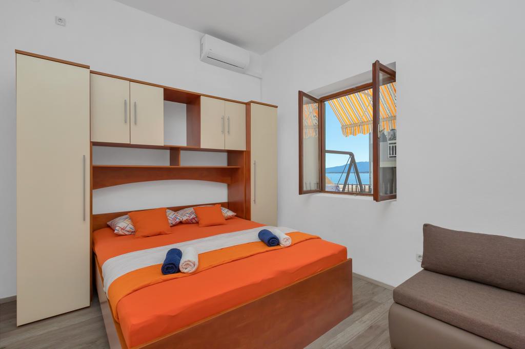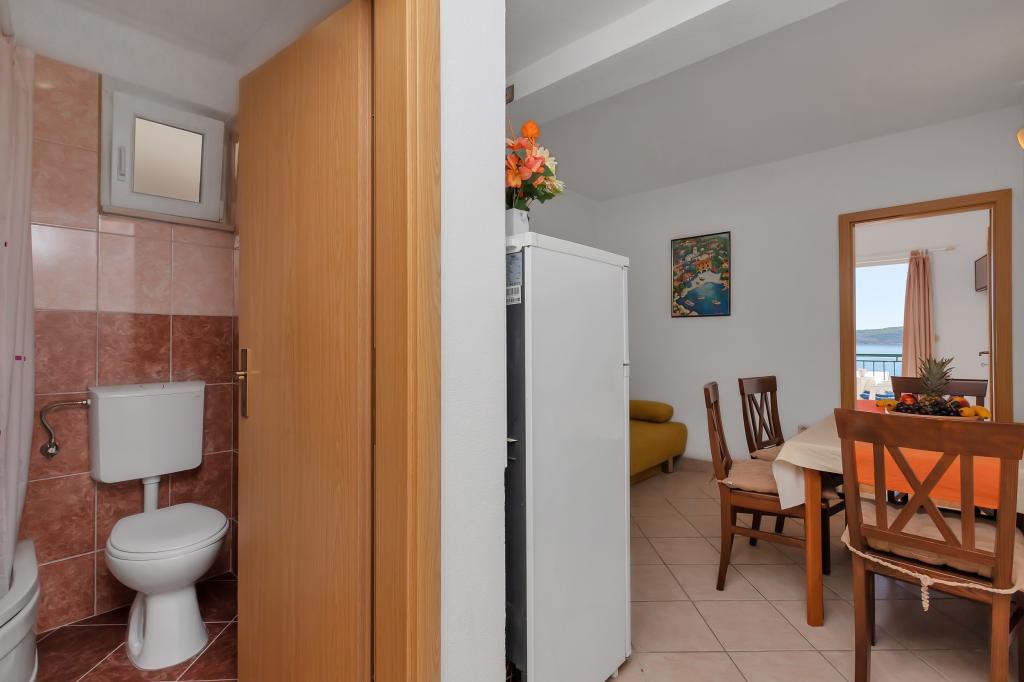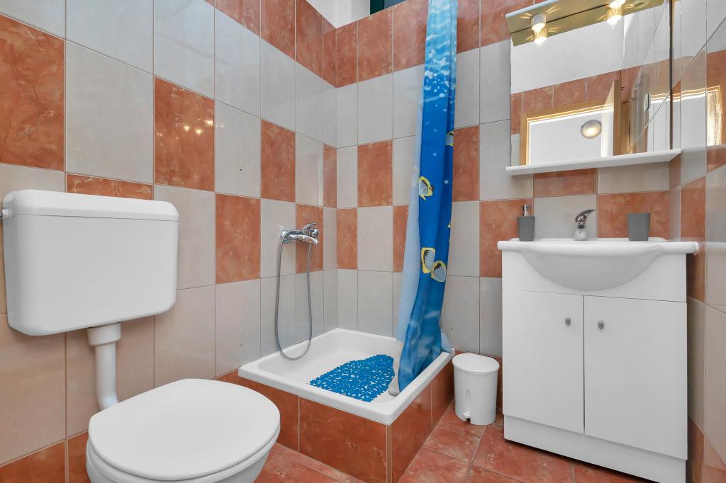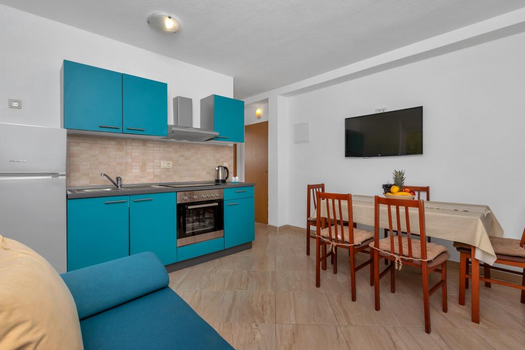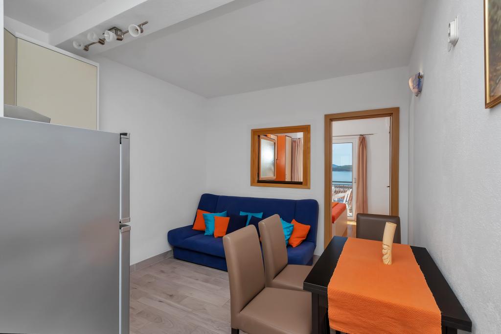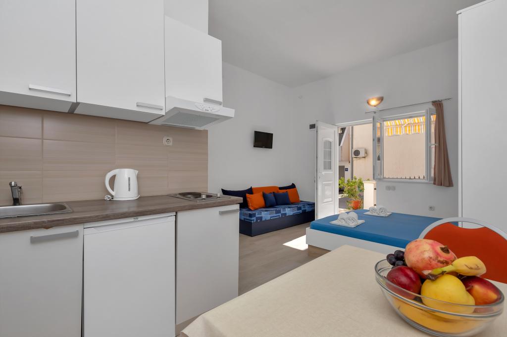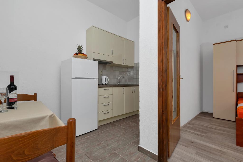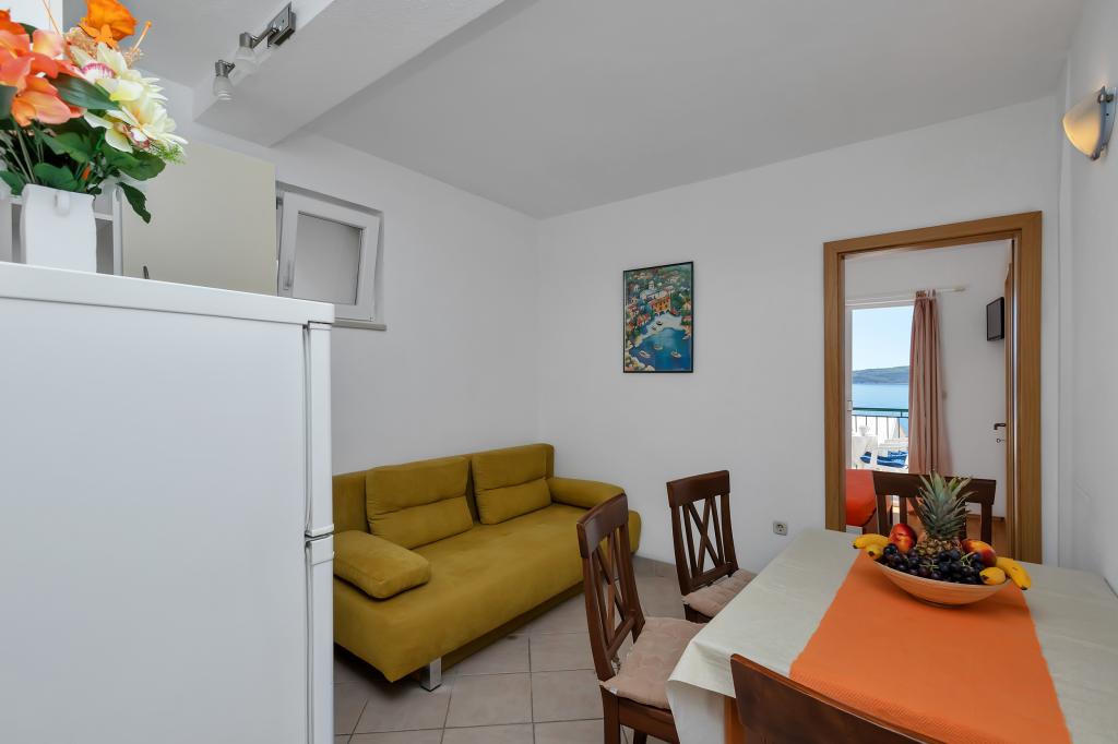 We lived in a 2+2 apartment, separate rooms, kitchenette. Everywhere clean and equipment in good condition, no old furniture, etc. The price is good in my opinion, without any additional fees for air conditioning, dog, etc.... Nightlife only on the beach, complete peace around the apartment, we were surprised. We didn't see the owners much, just the handover at the beginning and then at the end, we drove around a lot, enjoying it. Pebble beaches advantageous in that the sea is really crystal clear. If I should ever be back in the area I know where to go and I don't think I would look anywhere else if it was available. Since there is no such thing as perfection, I would like to make a small note. The pan on the induction cooker was a little difficult to heat up, it was probably not built directly for induction, but something could be done about it, it just took a little time, the rest of the dishes were fine.