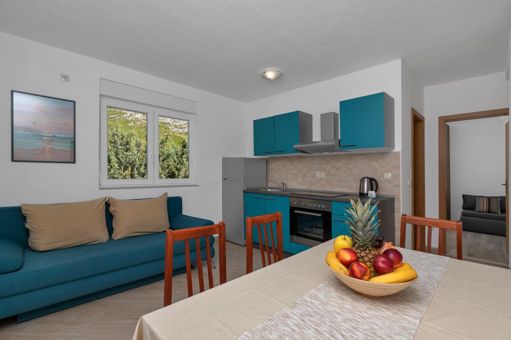 The apartments are located on the Makarska Riviera, in the small village Zivogosce Blato, which offers a unique experience of the natural environment. Fully equipped to make your stay as pleasant as possible. All apartments have terraces overlooking the sea (island and peninsula Peljesac), air conditioning and wi-fi, and are located in a blind alley with only a few minutes walk from the main beach and the town center. Parking is provided for all the guests next to the house. The house is also a common area for barbecue and socializing. Apartments are warmly recommended for a family holiday, and because of the excellent natural location of the village and the rich content in the environment, we are confident to meet the guests and adventurous. We will give maximum privacy while standing at your service 24 hours a day, to a maximum and more comfortable use your holiday with us. We love the relaxed communication and we are happy to inform you about the many opportunities offered in the place and its vicinity. We are looking forward to your arrival!