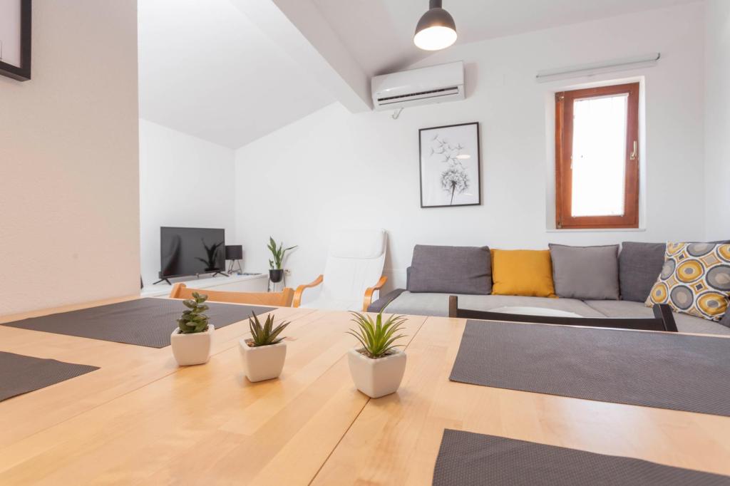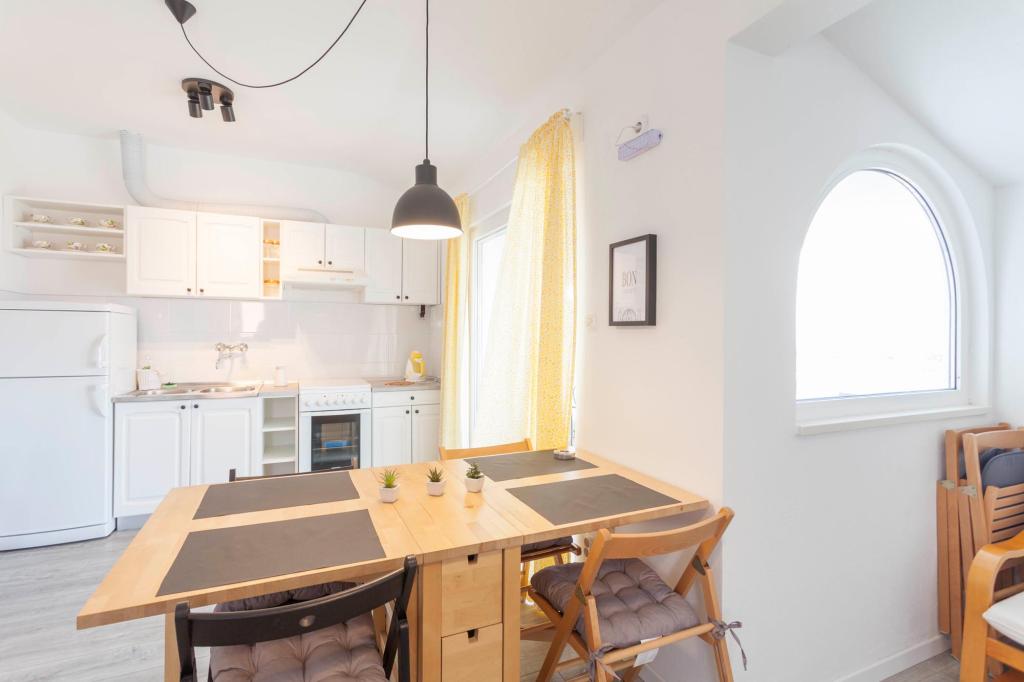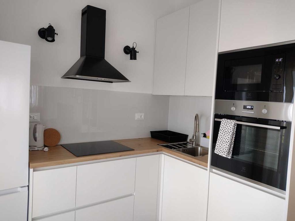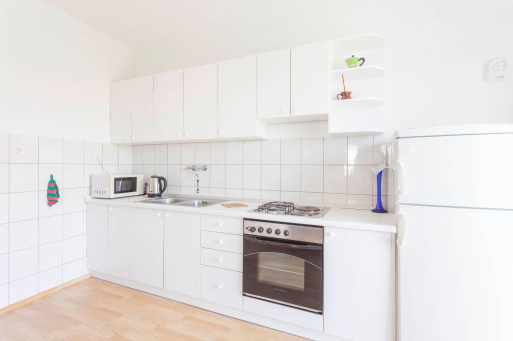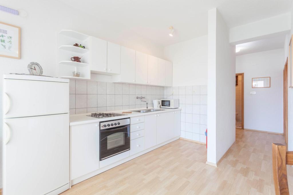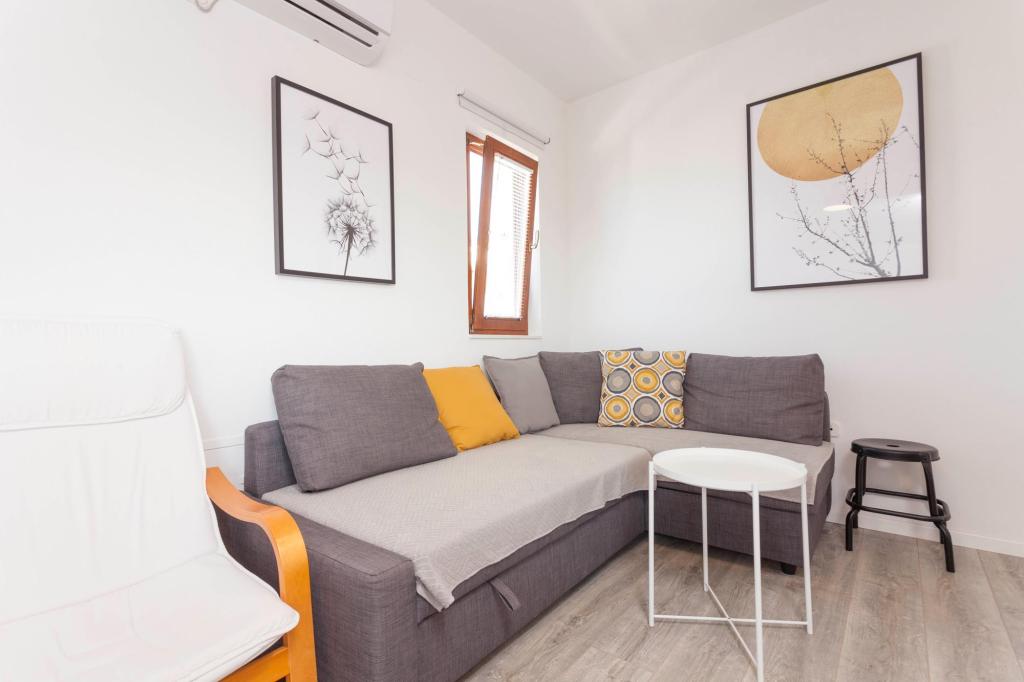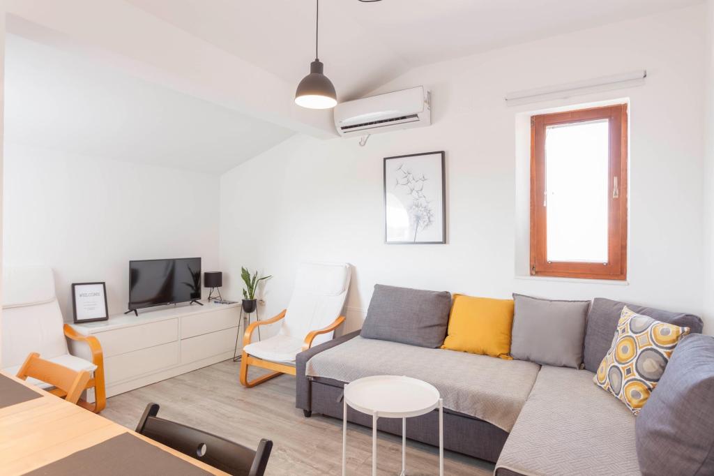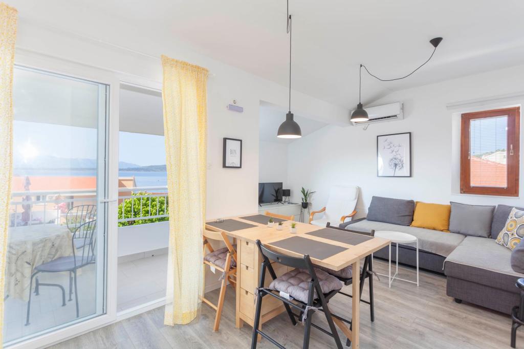 Comfortable apartments with two bedrooms, spacious kitchen and living room with sea view near the beach. Parking included in the price.