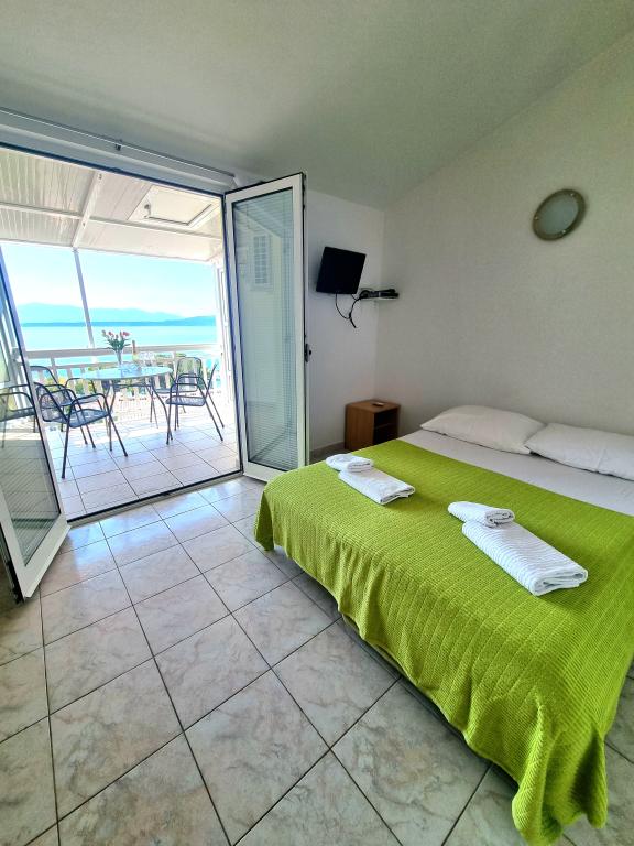 I highly recommend accommodation in Villa Grle. Near the sea, store. From the terrace a beautiful view of both the sea and the mountains. All as described. Spacious room, soap, towels, Air conditioning as standard. Plenty of space, nice interior. The owners are very nice people - trustworthy, willing to talk.
