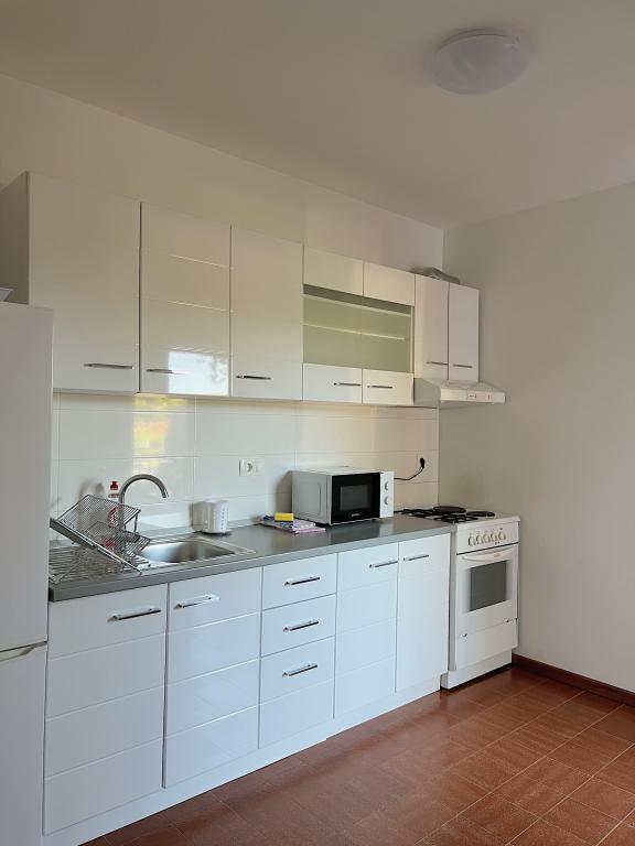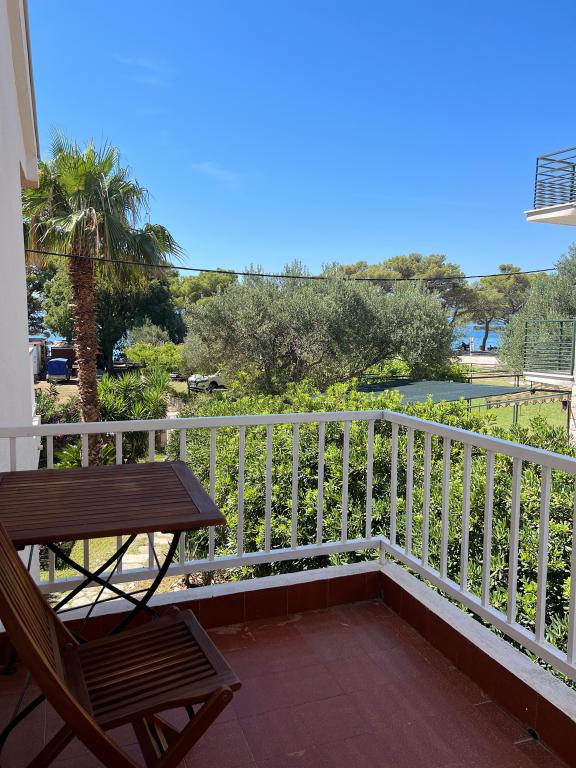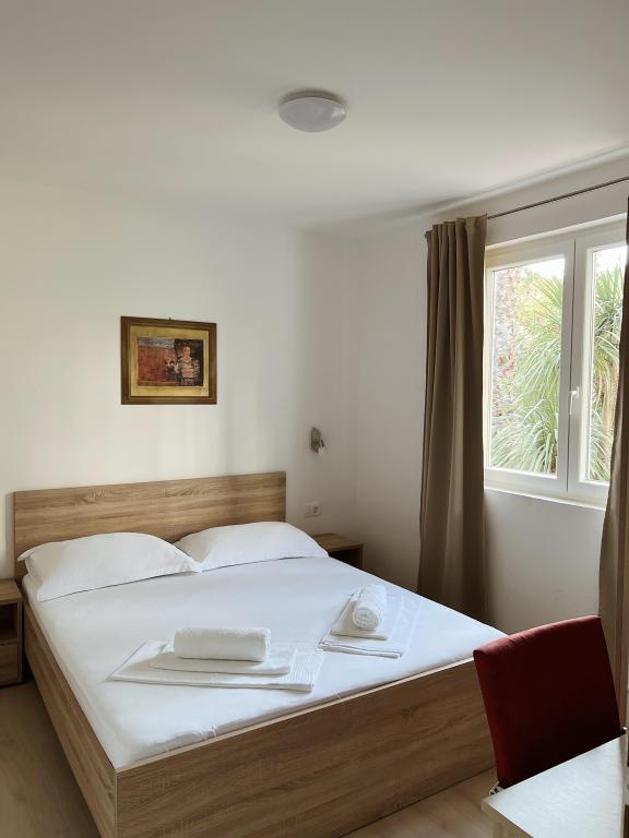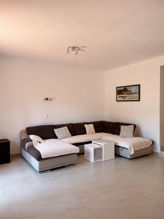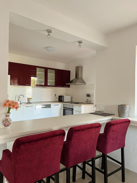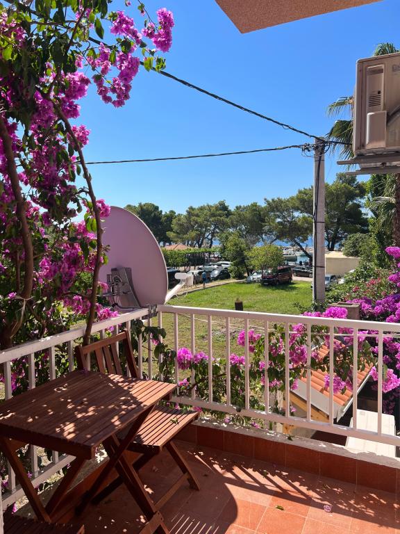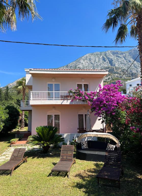 This beautiful villa located in the first row to the sea offers the perfect combination of peace and relaxation, surrounded by a large lush garden and a beautiful view of the Biokovo mountain. Relax on the spacious terrace or balconies, surrounded by gorgeous bougainvillea flowers and tall palm trees. Villa Ilaria consists of two comfortable and spacious fully equipped apartments that will provide you with a pleasant vacation. The apartment on the ground floor includes a terrace and a yard in front of the villa with the possibility of using an outdoor brick grill, and the apartment on the first floor offers you three balconies with a view of the sea. Free private parking is available in the yard at the back. On request, we also offer the rental of the entire facility to larger groups. Within a few minutes' walk, you can find local restaurants and cafes, a bakery, a local fruit and vegetable stand, souvenir shops, and a variety of excursions.