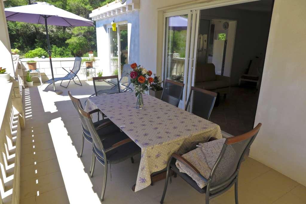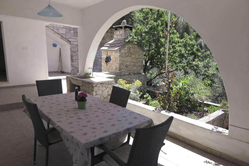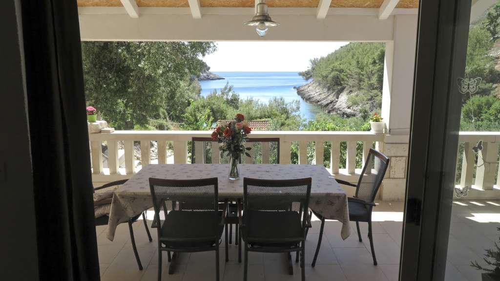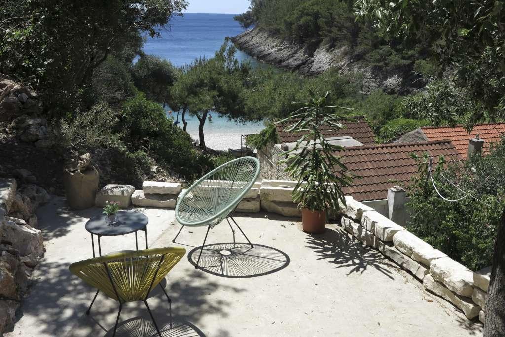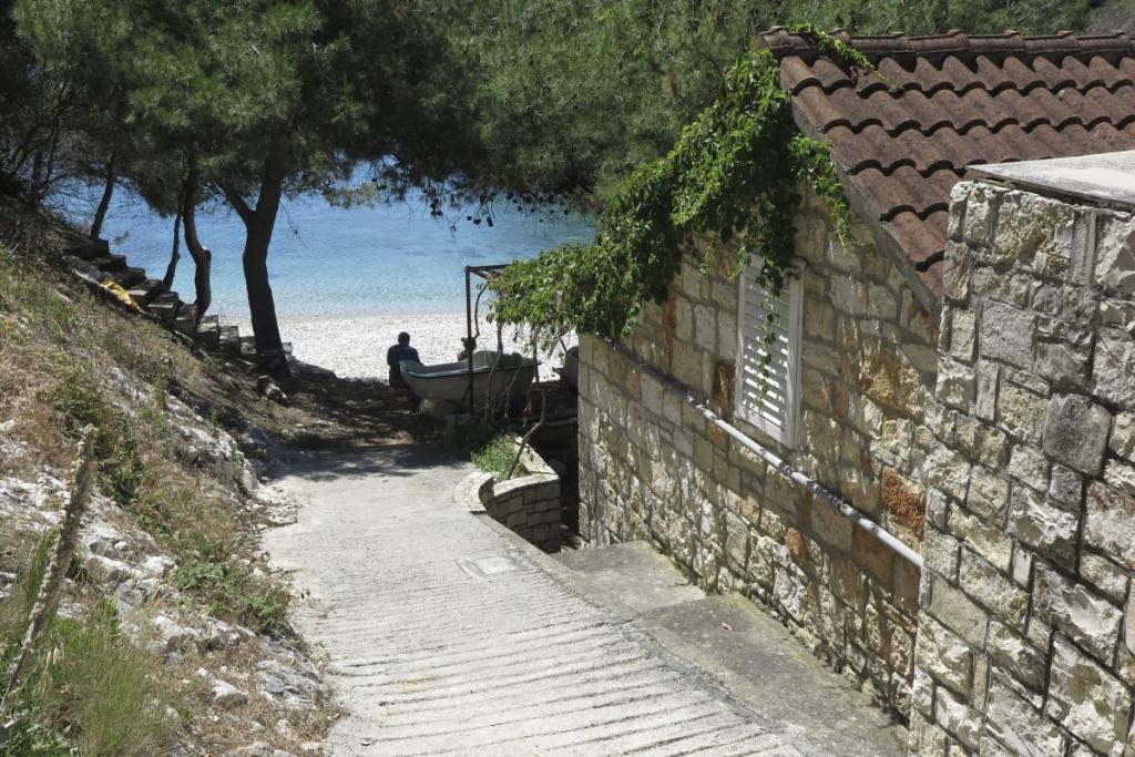 HOUSE "MAJA" FOR REST OF SOUL AND BODY is located in the bay Bratinja luka, 8 km away by macadam road from the village Žrnovo, island KORČULA. Parking is located 100 meters from the house. We offer two apartments, one for 4 people (lower level) and the other above for 4 1 person. There are no tourist facilities in the bay, no restaurants, shops are located from 8 to 12 km away, except for an excellent rural household with local food 5 km away from the bay, on the way to Žrnovo. Due to the proximity of the sea and the mild pebble beach, the house is especially interesting for families with preschool children, and for those seeking solitude and peace in May, June, September and October. Given that we offer a semi-Robinson style of tourism, the need to save water should be emphasized and electricity consumption is limited!