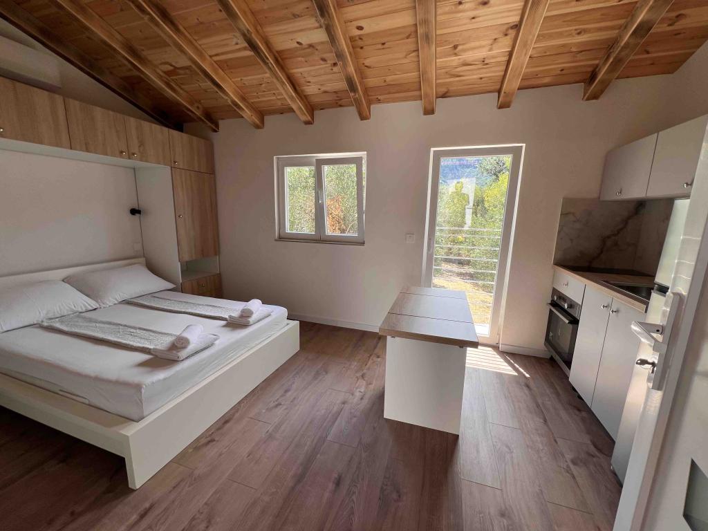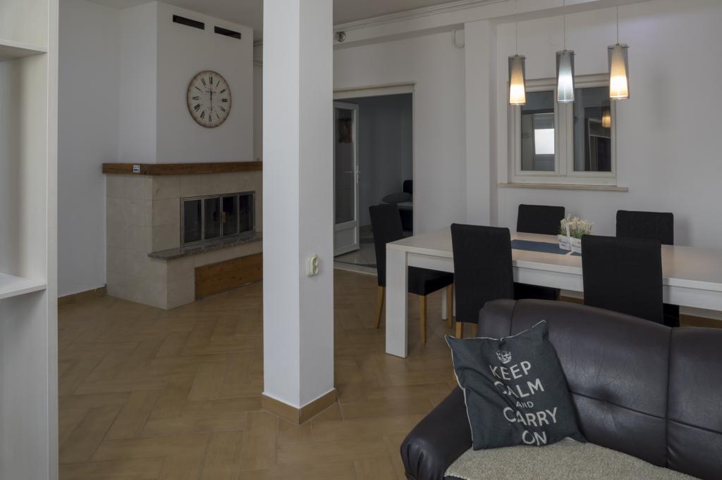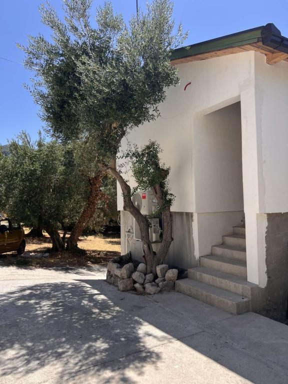 Beautiful house with the oldest olive tree of the area in the garden. House has two bedrooms, modern fully functioning kitchen, spaceous living/dining area that opens onto large covered terrace, bathroom, large terrace and the outside patio. It is very comfortable for 4 people but can easily accommodate 6 as sofa in living room converts into double bed. Equipment: Free Wi-Fi, Oven, Coffee maker, Tv set, Air condition, Grill in the garden, Parking place. Price starts from: € 70 per night Advance payment on request. Discount for longer or out-season accommodation. Tax is included. Distance From: Beach-3 min. Shop-5 min. Restaurant-5 min.