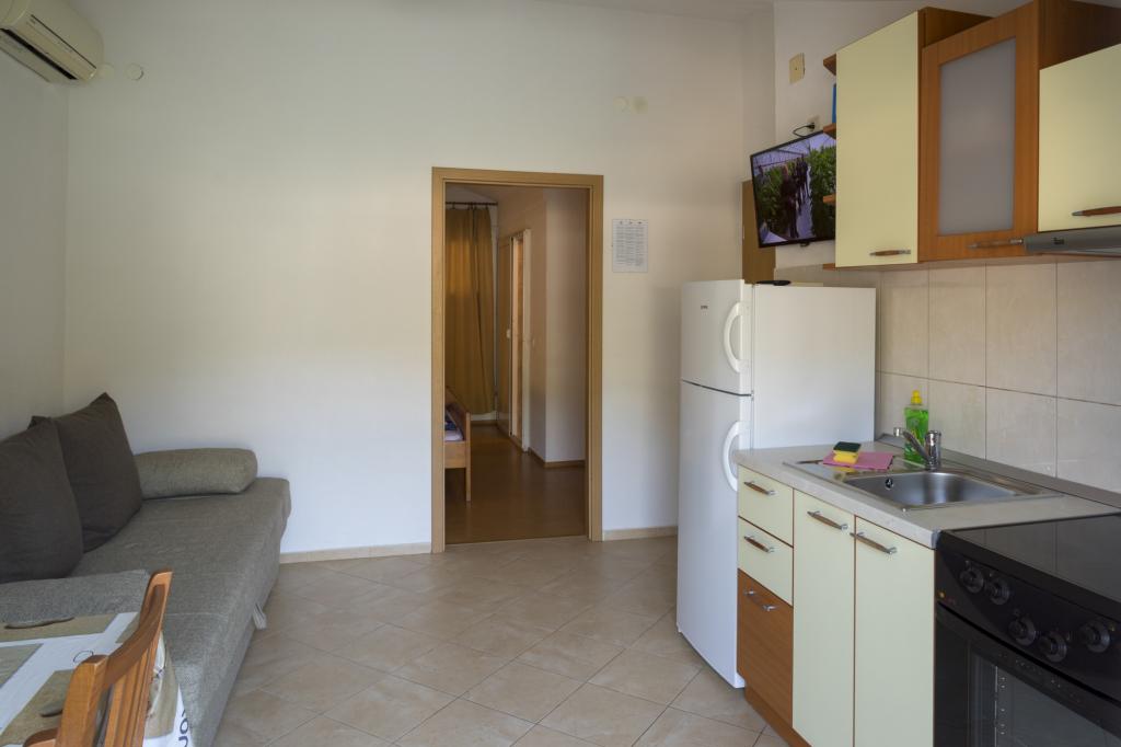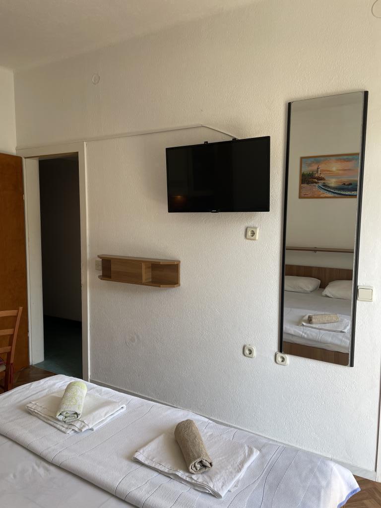 I wholeheartedly recommend the Tina apartments because they provided us with a vacation that we have never had before. The house is literally right on the beach, we were located on the ground floor, and it turned out to be ideal for us with two children because there is no need to worry about packing things, going to the beach, the children can go swimming whenever they want and we watch them from the terrace while we cook lunch or we drink coffee The apartment is large, spacious and equipped with all the necessary accessories, and I give a big plus to the fact that it also has a dishwasher. There are several other beautiful beaches nearby that are a few minutes' walk away. The place is quiet and has all the necessary facilities for a perfect vacation.