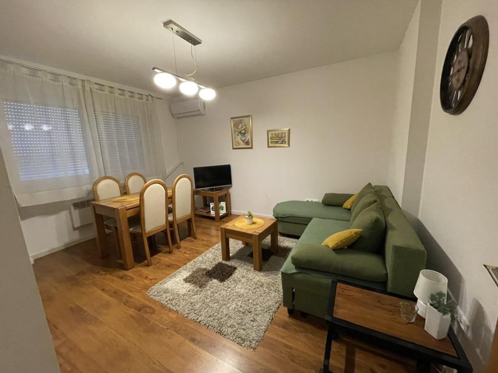 Apartment Ana is located in the center of Županja in a residential building on the 4th floor. It consists of a separate bedroom with a double bed, a bathroom with a washing machine and cosmetics, and a living room with a kitchen equipped with all the necessary appliances. The apartment has air conditioning, Flat screen TV and free WiFi. There is public parking in front of the building, which is charged.