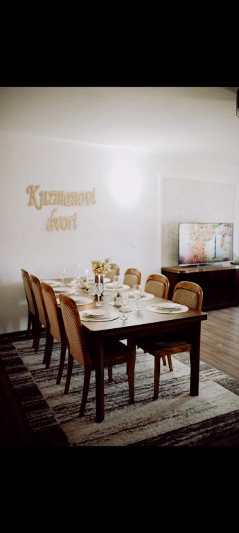 Enjoy the hundred-year-old beauty, the holiday home "Kuzmanovi dvori". This shocking villa has completely withstood the test of time. He is still standing awkwardly and untying his short hair. The house is completely adapted. It has kept its original external appearance. The interior is adapted to the needs of modern man. The courtyards consist of two bedrooms, a large living room with dining room, kitchen and bathroom, as well as an entrance hall and a large terrace with a view of the landscaped courtyard with original architecture. The house is decorated with some original pieces of furniture from the family heritage and unique, massive and handmade elements. A spacious living room with a dining room gives you the opportunity to relax with a large Android TV. The magic of a fire in the fireplace and a book in your hands sounds like a real vacation. Modern and functional kitchen (fridge, freezer, stove, kettle, coffee machine), spacious bathroom with bathtub and washing machine. The house is covered by an unlimited Wi-Fi network, and we have cable TV on all three TVs in the house. Come to us in Štitar and experience Slavonia, Shockadia in all its splendor and in all the comfort you need for your vacation.