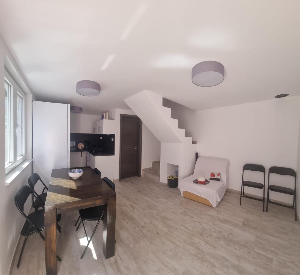 Fisherman's house in Vrulje bay - Kornat island. Renovated house for max. 5 people is located in the heart of Kornati, only 30 meters from the sea. The house is equipped with a gas stove and refrigerator, the kitchen is fully equipped. The house has its own place for the boat. On the first floor of the house there is a room that can sleep 4 adults, in the living room on the ground floor there is an extra bed that can sleep 1 person. Pets are allowed with an additional charge. Transportation to the house from Murter is organized with an additional charge.