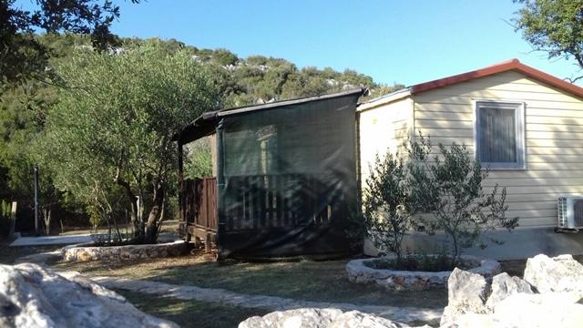The house is located on the south side of the island of Pasman in a quiet place by the sea. The cottage is a mobile home with a wooden terrace and sea views. In the yard there is a shower, barbecue and parking space. Electricity is obtained from solar energy - a limited number of devices. The kitchen has a large refrigerator with a separate electric freezer. The gas stove has 4 hotplates. Near the house is the Kornati National Park.