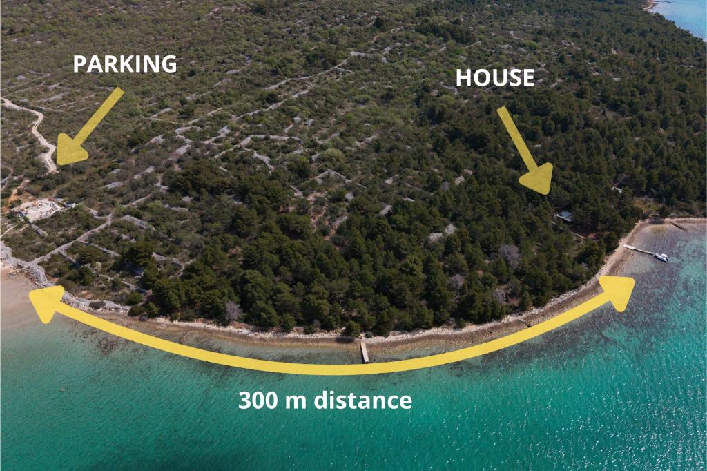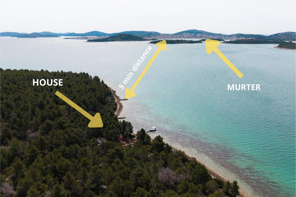 The seaside house “Una” is located in complete isolation, surrounded by greenery and untouched nature, making it an ideal place to escape from everyday stress. It is located just a 5-minute speedboat ride from the island of Murter. Here you can enjoy the silence, natural shade and the sea, which is just a few steps away. The nearest facility is 70 meters away and is not in use, which additionally guarantees complete peace and privacy. This is the perfect place to relax and connect with nature, away from the crowds and noise. The house can only be reached by boat, and transportation is included in the price. Arrival by car is not possible - the vehicle must be left at our parking lot in Murter.