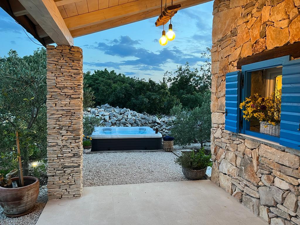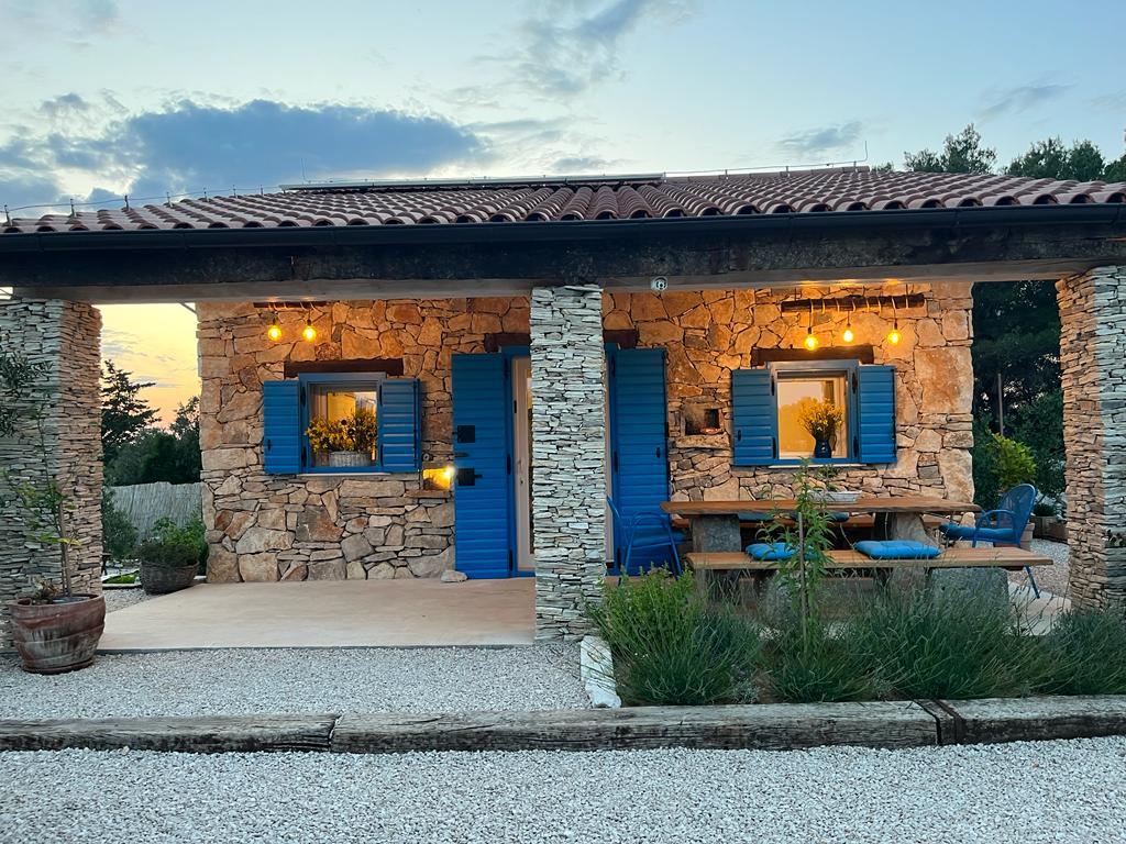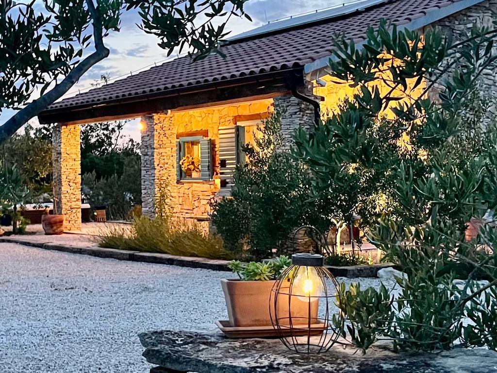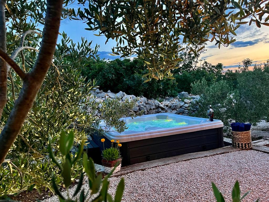 Luxury secluded house in an olive grove, next to the sea. We provide an unforgettable Robinson atmosphere of high quality accommodation. Arriving at the estate is possible by car. More parking spaces provided. We offer a large jacuzzi, outdoor garden furniture, sun loungers, swings, a large stone grill, outdoor shower. The facility is fully equipped for a comfortable stay, kitchen with all appliances (gas stove, refrigerator, freezer, dishwasher, coffee machine, kettle...Wi-fi, internet, satellite TV. The space is air-conditioned and has a central heating that allows you to stay even during the winter period.The bathroom has a spacious walk-in shower and washing machine, and other equipment.