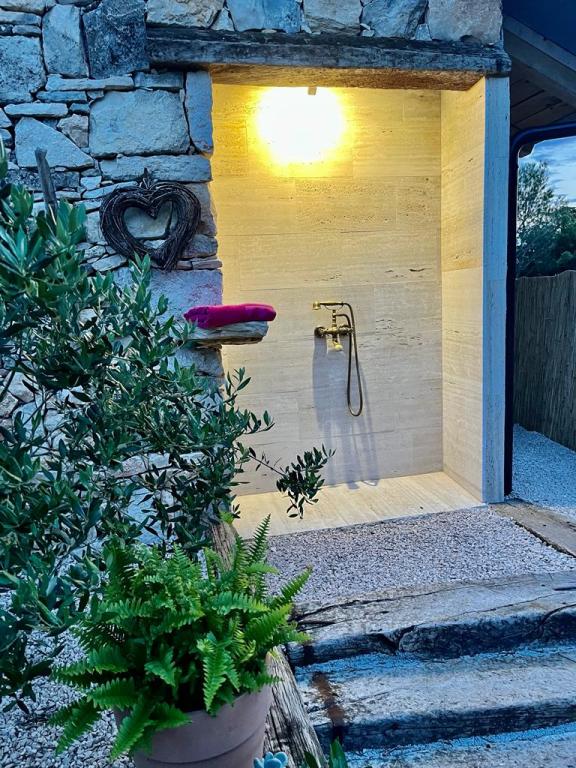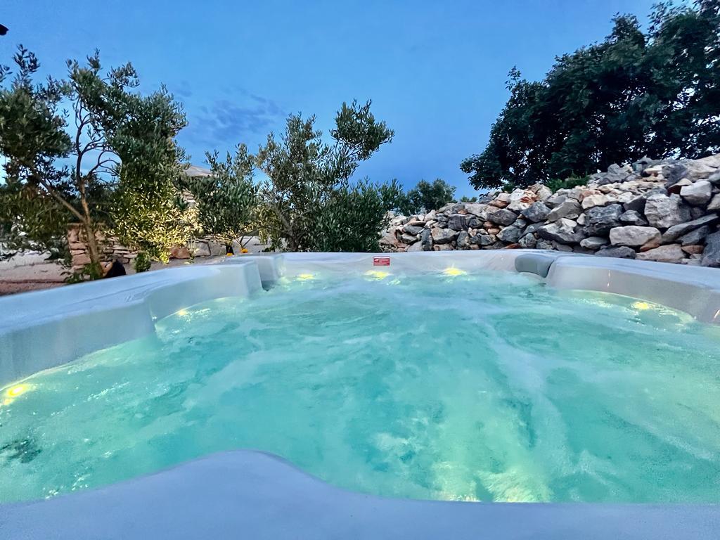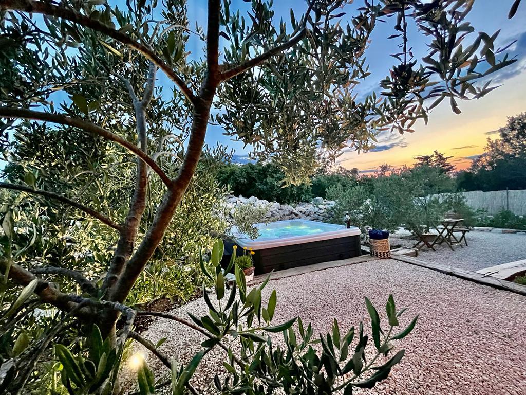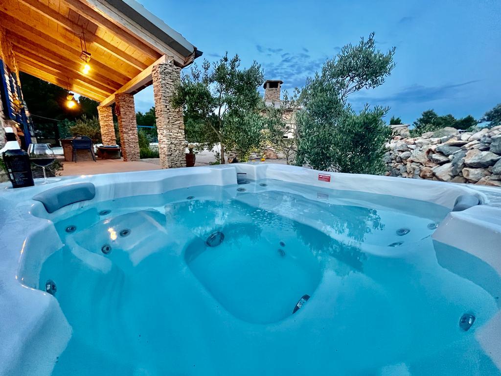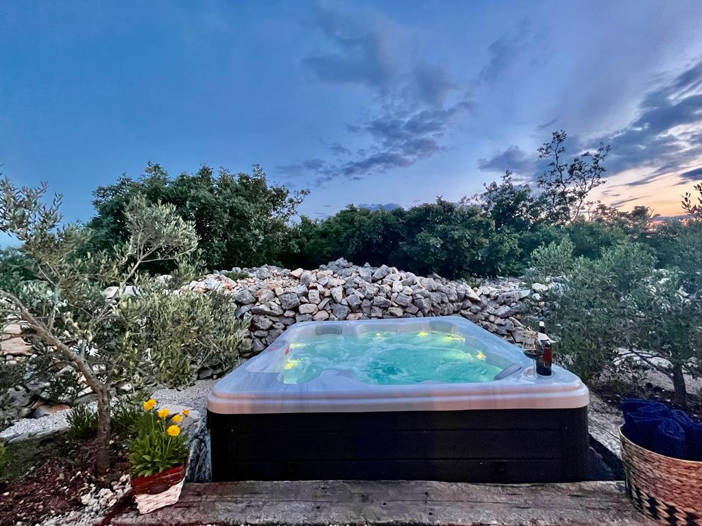 Luxury secluded house in an olive grove, next to the sea. We provide an unforgettable Robinson atmosphere of high quality accommodation. Arriving at the estate is possible by car. More parking spaces provided. We offer a large jacuzzi, outdoor garden furniture, sun loungers, swings, a large stone grill, outdoor shower. The facility is fully equipped for a comfortable stay, kitchen with all appliances (gas stove, refrigerator, freezer, dishwasher, coffee machine, kettle...Wi-fi, internet, satellite TV. The space is air-conditioned and has a central heating that allows you to stay even during the winter period.The bathroom has a spacious walk-in shower and washing machine, and other equipment.