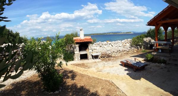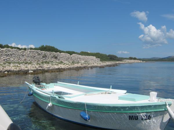 We had the opportunity to spend a holiday in the house and I would like to write about the experience. The island is small and there is only one house on it, so you can enjoy the sea in complete privacy. A boat will sail by or dock nearby, otherwise you won't meet anyone. The beach is not sandy, but pebbles and concrete, yet the entrance to the sea is smooth and the sea is shallow. We had children with us and there was no problem. Access is also possible via steps, even so the sea is waist deep. The house was clean, fragrant sheets and towels available. Commercial water, for cooking and drinking you need to bring your own water. Only cold water flows in the sink, sink and shower. Hot water is outside. There is a barrel of water that will be heated by the sun. Don't expect hot water, but enough for showering, no problem even washing your hair. A great experience for children. 12 V light, no problem with that. Mobile phones and computers can be recharged on a spare source, other appliances cannot. The fridge is gas, it cooled well, it has a small freezer. There are enough utensils, there is also oil, flour, some pasta, sugar, etc., toilet paper, paper napkins. We didn't try TV and radio, there was no need. Renting a motorboat, but beware, it will not work without a captain's license, there is no other boat. But you can negotiate with the owner and for a fee of 120 Euros he will take you to the mainland and then back. There were also mosquitoes, but nothing terrible, some here and there, definitely not as much as on the mainland. But what I recommend is an insect spray, the ants made their way to the house, all we had to do was spray the road with repellant and they were gone. The owner is nice, helpful. And our summary, a quiet vacation without people, a lot of rest and a piece of sea that belonged to us for a while.