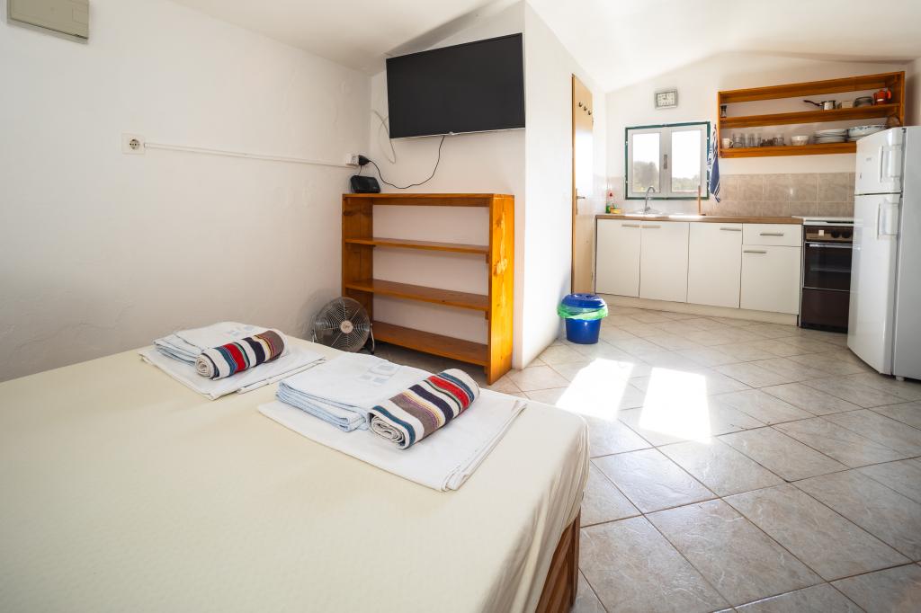 The fisherman's house with a beautiful sea view is located in an excellent location just 30 meters from the sea on the beautiful Murter beach of Podvrške. The fisherman's house has solar panels from which electricity is obtained (smaller appliances can be used). The refrigerator and stove are gas-powered. The water is good for showering (from the mains or rainwater), heated by the sun. There is enough water if used rationally. The fisherman's house has an area of 25 m2. It has one bedroom that can sleep 2 adults. It has a living room. It has a bathroom with a shower. The balcony/terrace area is 30 m2. Parking is provided and included in the price. There is an outdoor barbecue that can be used. The fisherman's house is about 1000 m. away from the town center and 30 m. from the sea or the first beach in Murter. Pets are allowed for an additional fee.