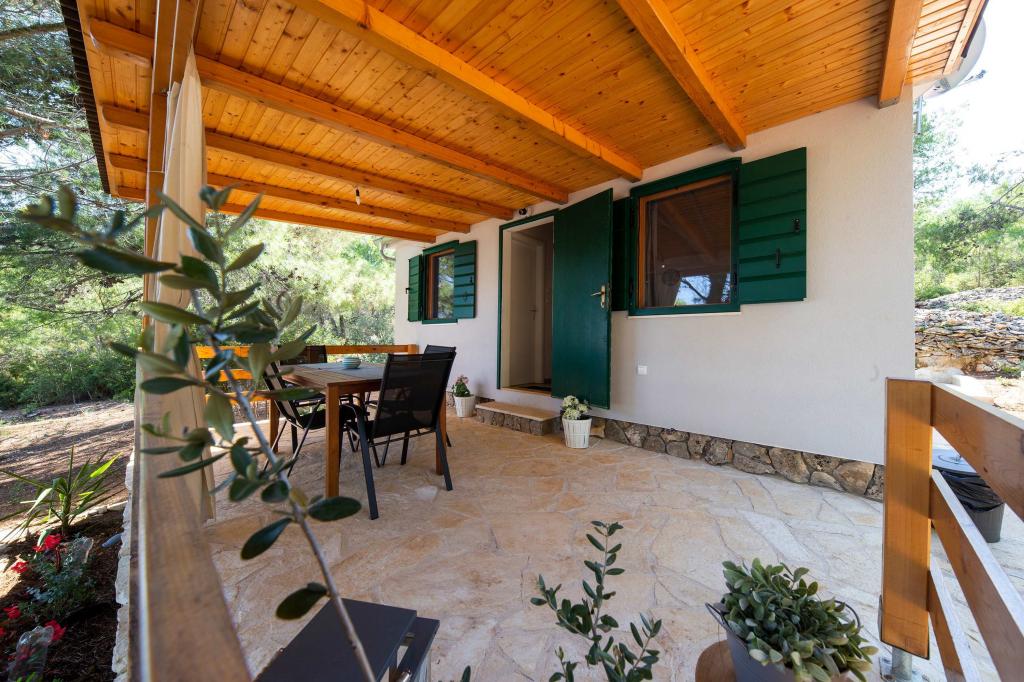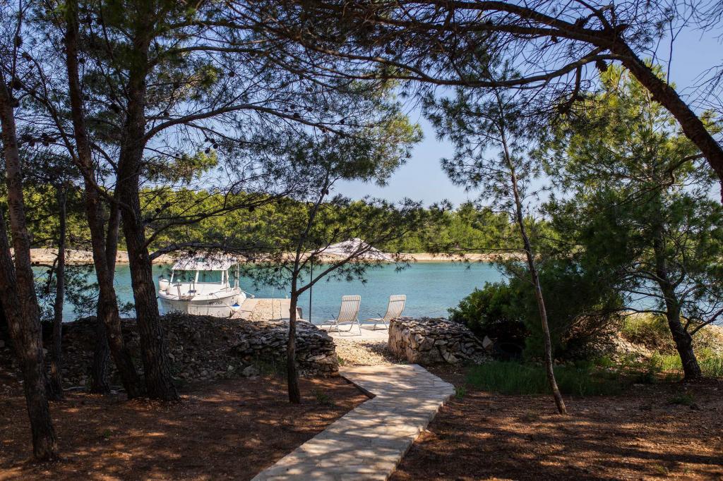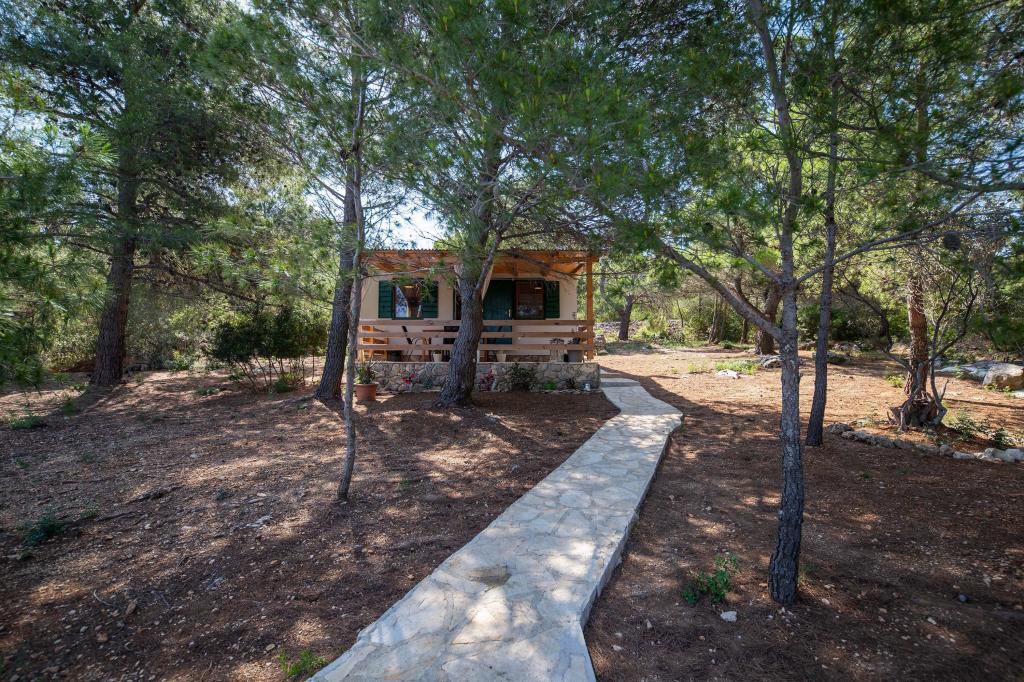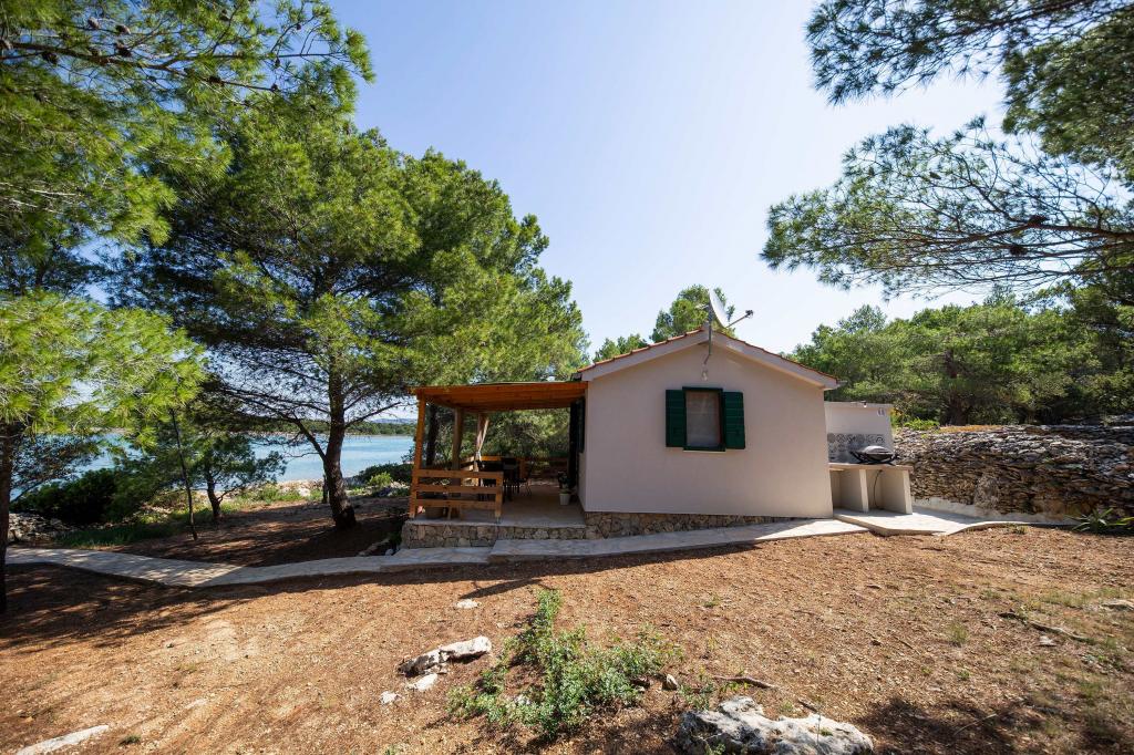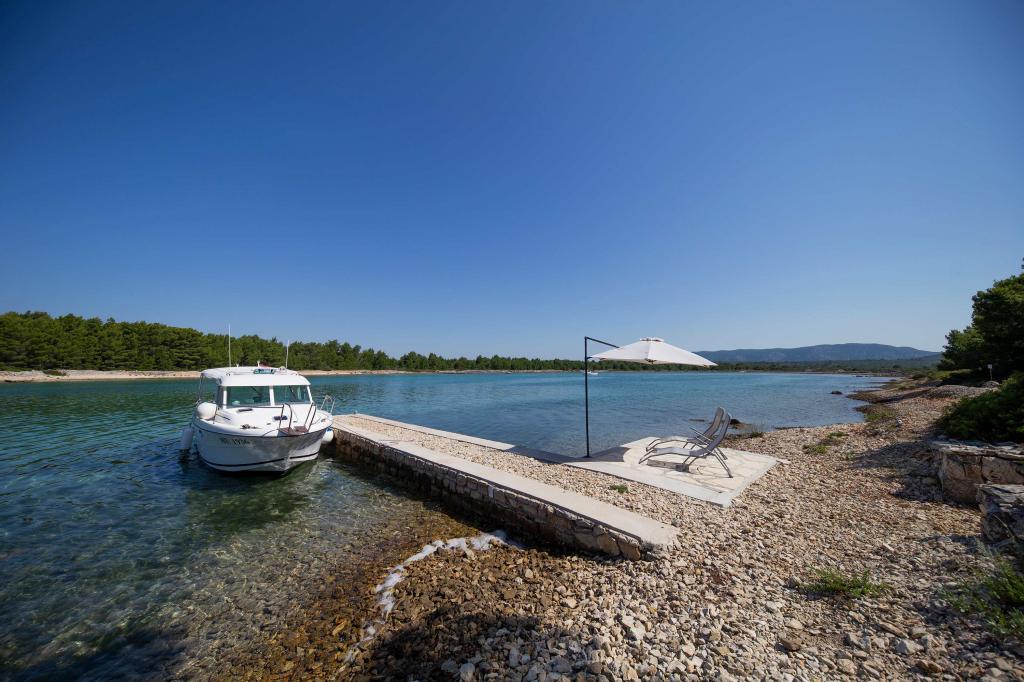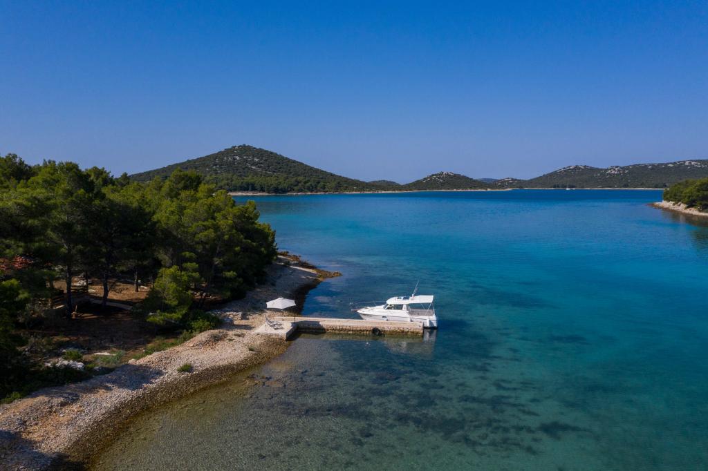 The Sea House Modrave is located in the Zečica Bay, 15 minutes from Murter. It is located 10 meters from the sea and has its own boat dock. The facility can only be reached by boat. Free parking is provided in Murter, as is a transfer to the house. The house has one bedroom with a double bed, a bathroom with a shower, a sofa bed that can sleep two more people. The kitchen has a refrigerator with a freezer and a gas stove. It has a TV with satellite receiver, internet with wifi connection and air conditioning. The house is powered by solar energy and rainwater, which is sufficient if used rationally. Pets are allowed and are charged 5 euros per day.