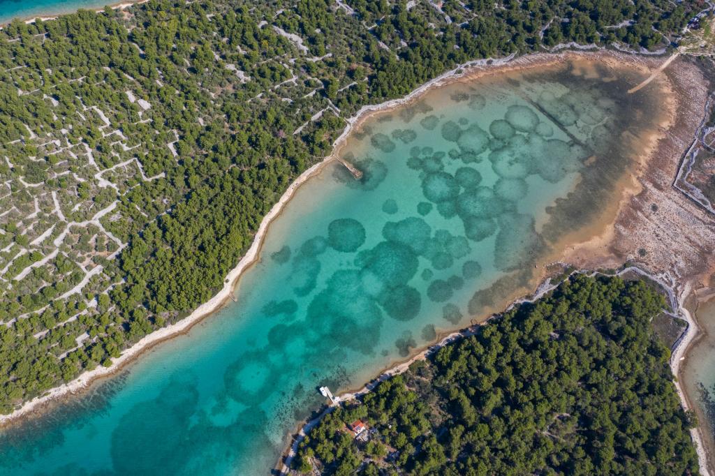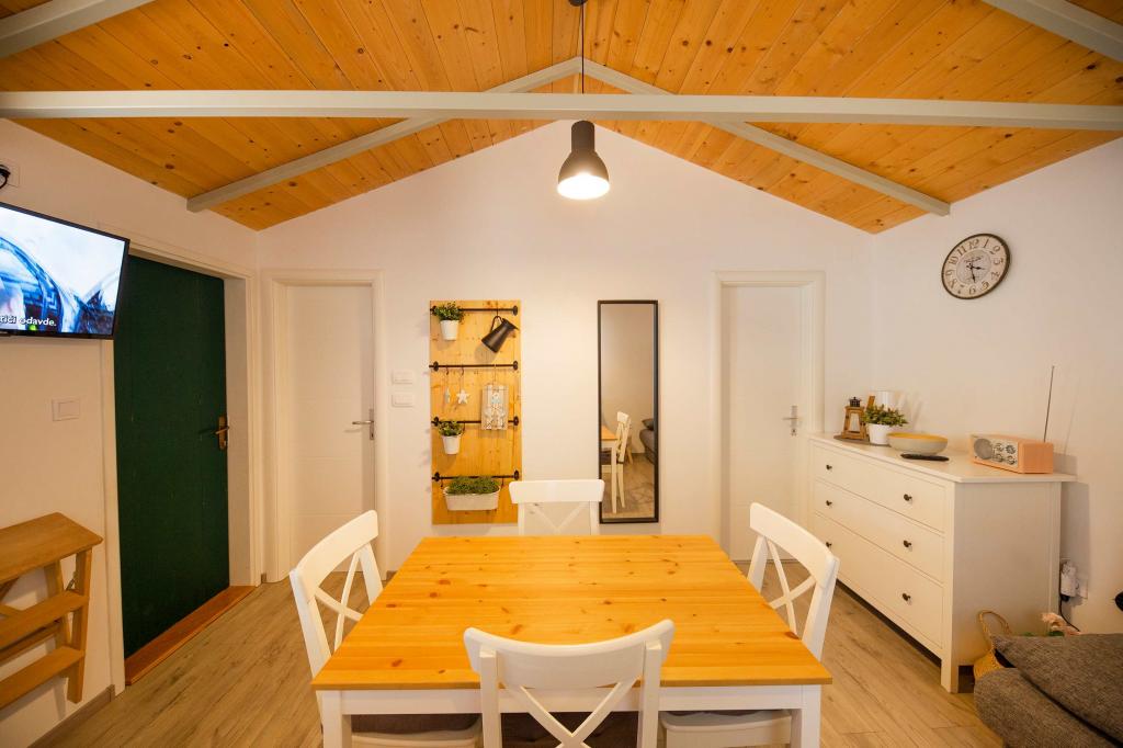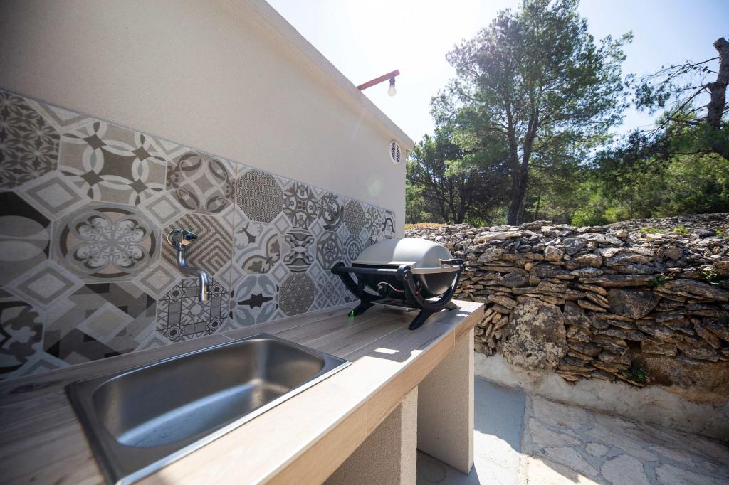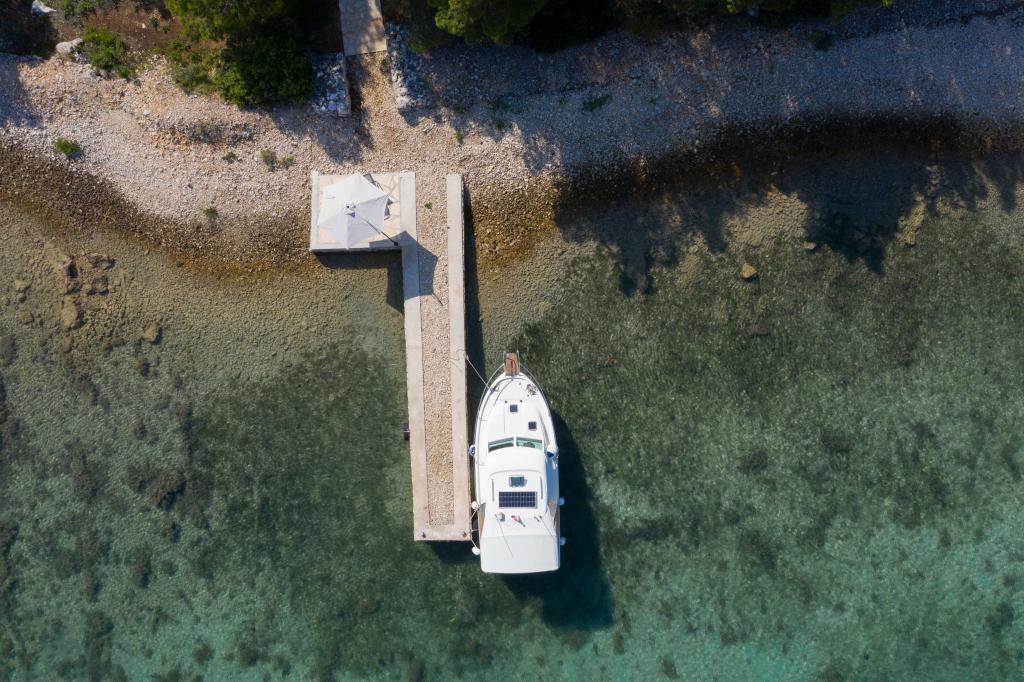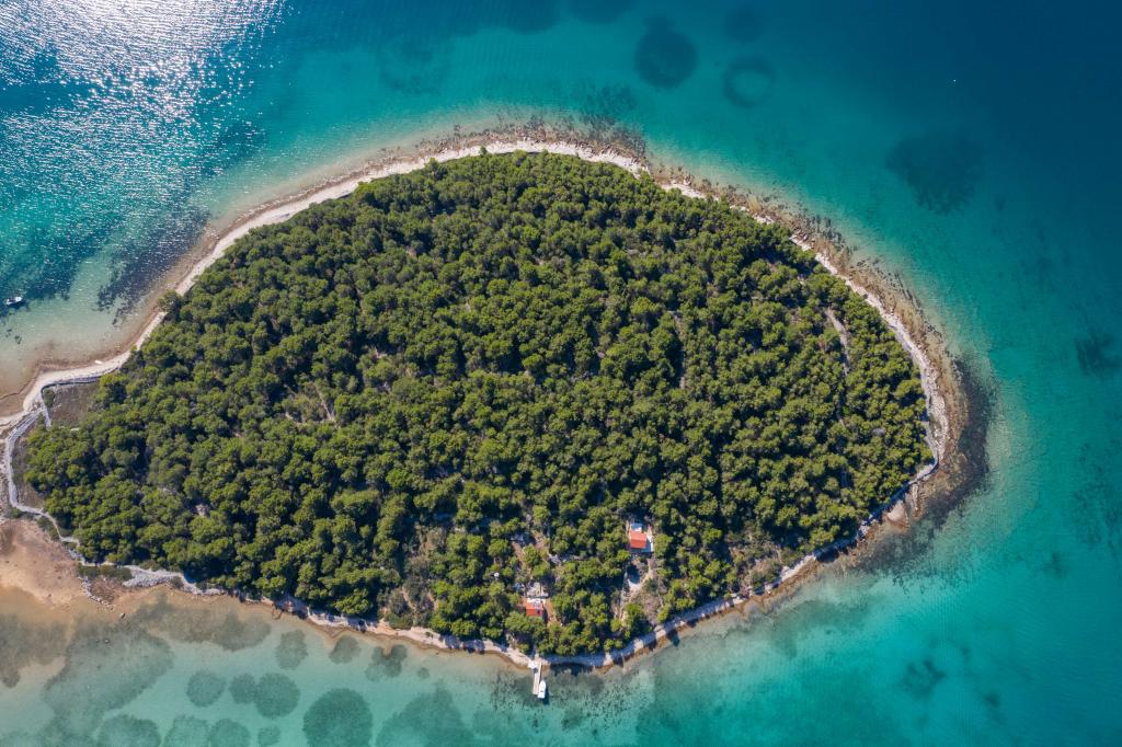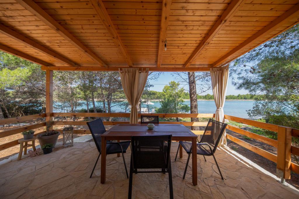 The Sea House Modrave is located in the Zečica Bay, 15 minutes from Murter. It is located 10 meters from the sea and has its own boat dock. The facility can only be reached by boat. Free parking is provided in Murter, as is a transfer to the house. The house has one bedroom with a double bed, a bathroom with a shower, a sofa bed that can sleep two more people. The kitchen has a refrigerator with a freezer and a gas stove. It has a TV with satellite receiver, internet with wifi connection and air conditioning. The house is powered by solar energy and rainwater, which is sufficient if used rationally. Pets are allowed and are charged 5 euros per day.