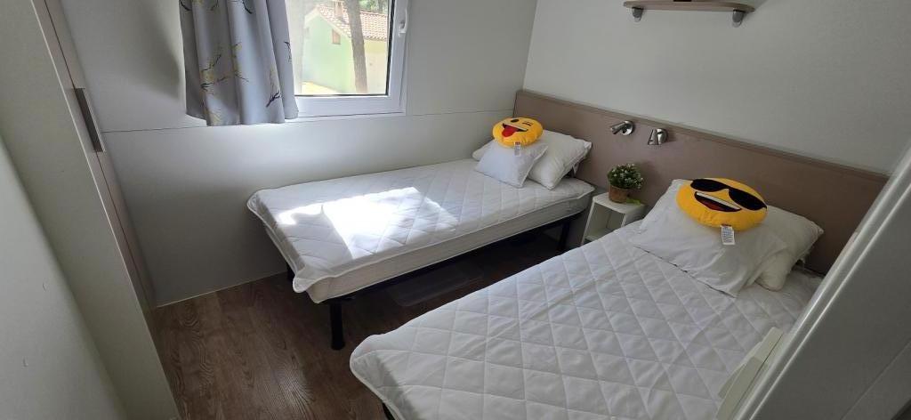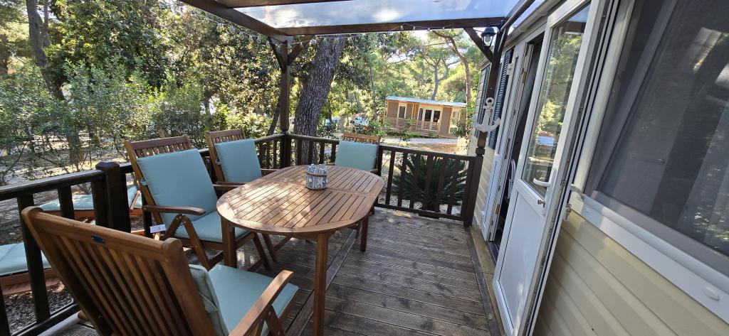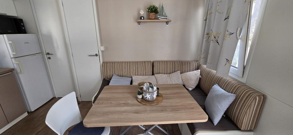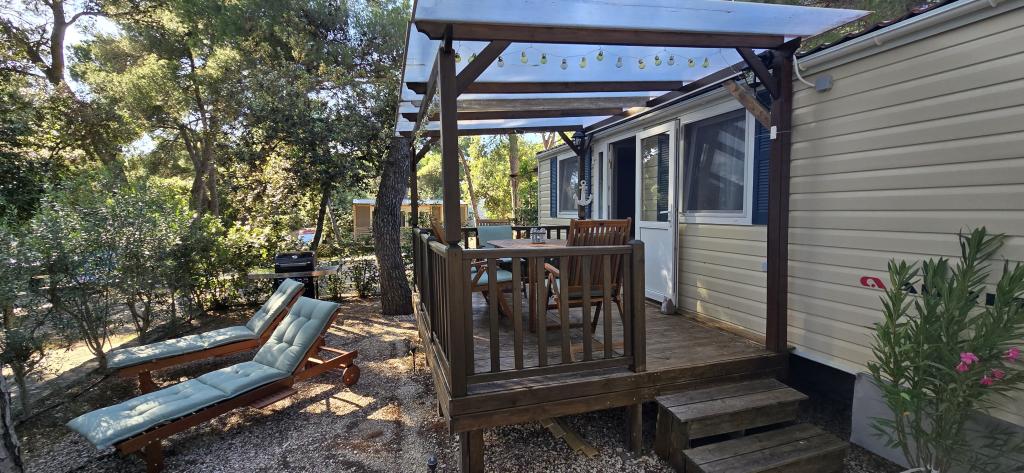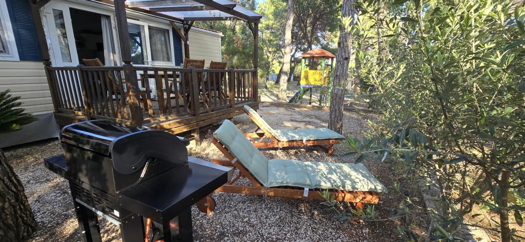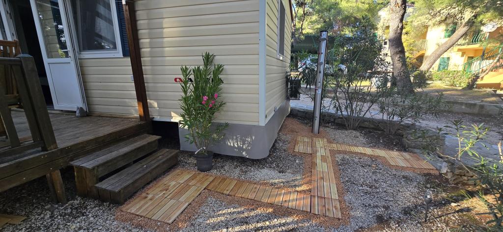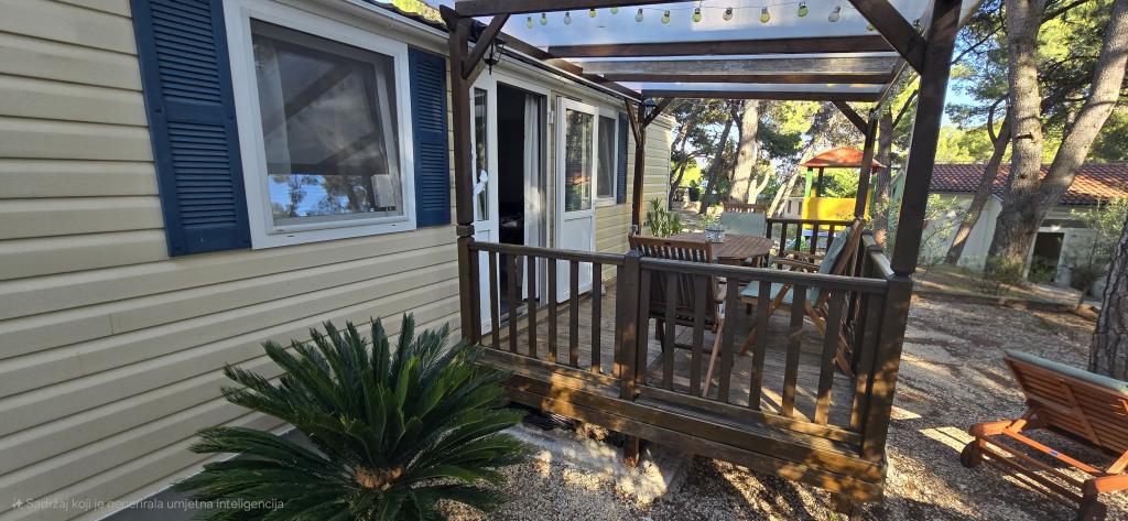 Summer is here, Book your appointment for 2025 Mobile Home Vomer Beachside unit Fully equipped mobile home in Camp Kozarice Pakoštane Beach 50 m Pleasant shade even during the strongest sun. 4+1 persons 32 m2 + terrace 10 m2 Bedroom 1 1 double bed Bedroom 2 2 single beds Living room (sofa bed) 2 bathrooms sup outdoor shower, TV Free parking (right next to the house) Free WiFi (A1 high-speed internet) Air conditioning Barbecue Bed linen, towels In the kitchen there is an induction cooker, fridge with freezer, microwave, toaster, kettle, dishes ... On the terrace you will find a place to relax in comfortable deck chairs. There is a park in the camp, and a washing machine and dryer nearby. Restaurant and cafe within the camp a few minutes walk Close to the city (3 min walk), promenade, restaurants, cafes, pharmacies, shops,