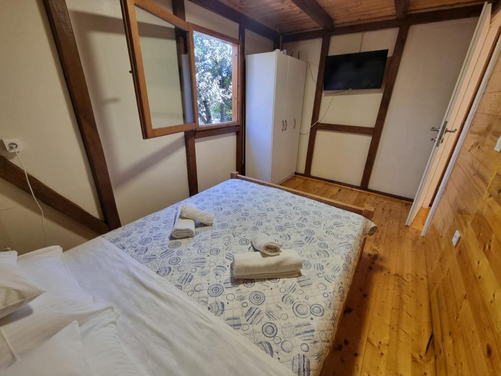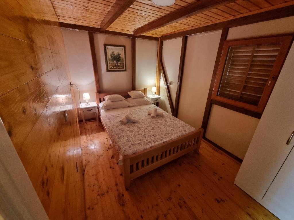 A newly built wooden house on a secluded spot on the island of Babca, which can be reached from the town of Pašman on the island of the same name. It is located on over 10,000 m2 of private land and has 25 m2 of interior space in which there are two double beds in two rooms measuring 140x200 cm and a bathroom. The kitchen and table are located on the outside covered area of 15m2. There is a TV in one room. There is wi-fi internet in the house.