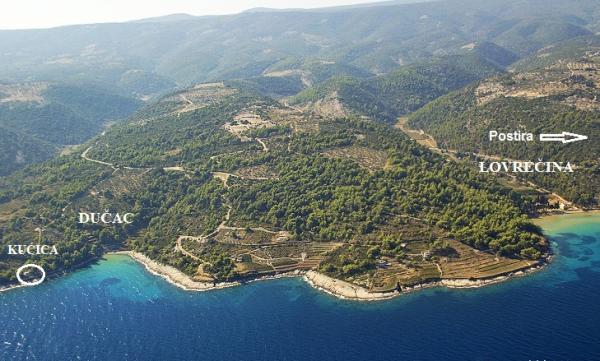Available dates: 16.-23.8.2025. and from 11.9. The house is located in Dučac bay 6km from Postira on the island of Brač and is ideal for fans of Robinson tourism who value nature and silence above all. There is no water supply in the bay, but we have a cistern for washing dishes and taking an outdoor shower and solar panels that are sufficient for lighting and charging mobile phones. Drinking water must be purchased. There is a good telephone signal. The house has 2 rooms: one has a double bed and the other, connected to the kitchenette, has 2 single beds. There is also an extra bed. The toilet is in a separate house (toilet and watering can). The house has a refrigerator, gas stove, fireplace/barbecue in the yard, kitchen utensils, utensils and bedding. The house itself can be reached by car, the road is a bit steep but newly paved, without any potholes, etc. You can walk to the nearby Lovrečine Bay, which has been declared the most beautiful beach in the Adriatic and also has a restaurant. A path along the sea leads to the bay.