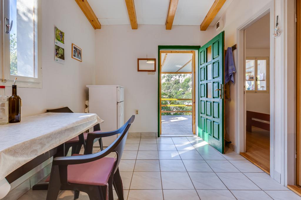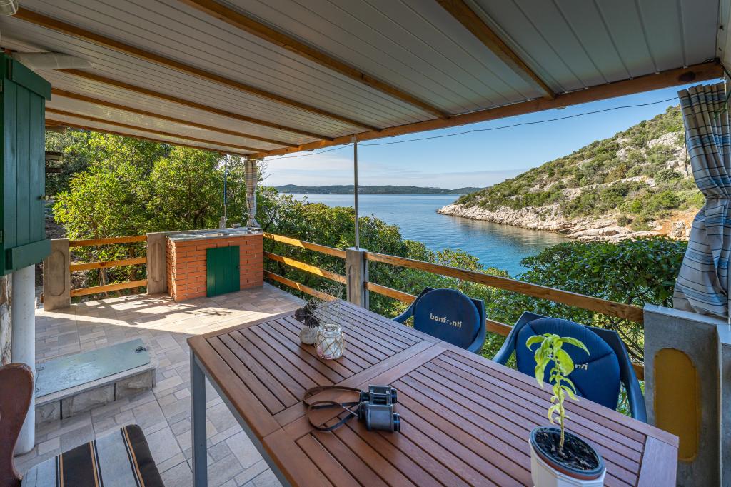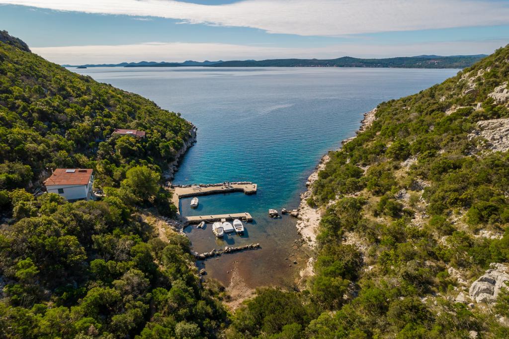 The house is located on the island of Ugljan in a small protected bay. It has a terrace with a view to the southwest and the island of Iž. There is a road to the house, and at the end of the white road you park your car and then you have another 10 minutes of walking along the path. The house has water and an alternative source of energy, i.e. it has solar electricity at 12 V. The possibility of charging small consumers such as mobile phones, etc. The house is ideal for accommodating 2 people. The position of the house is such that you feel completely free in nature and enjoy a peaceful vacation. If you have a boat or a speedboat, you also have a mooring and you can organize your stay as you wish.