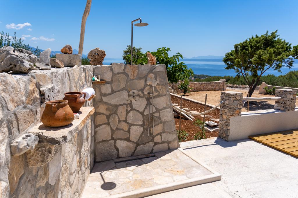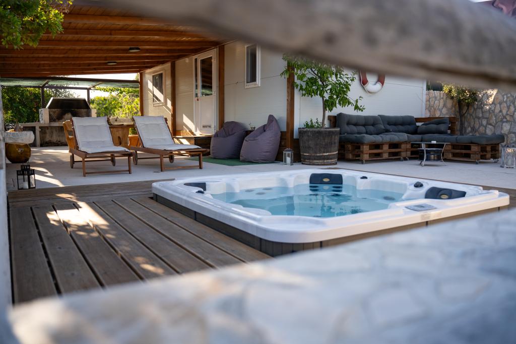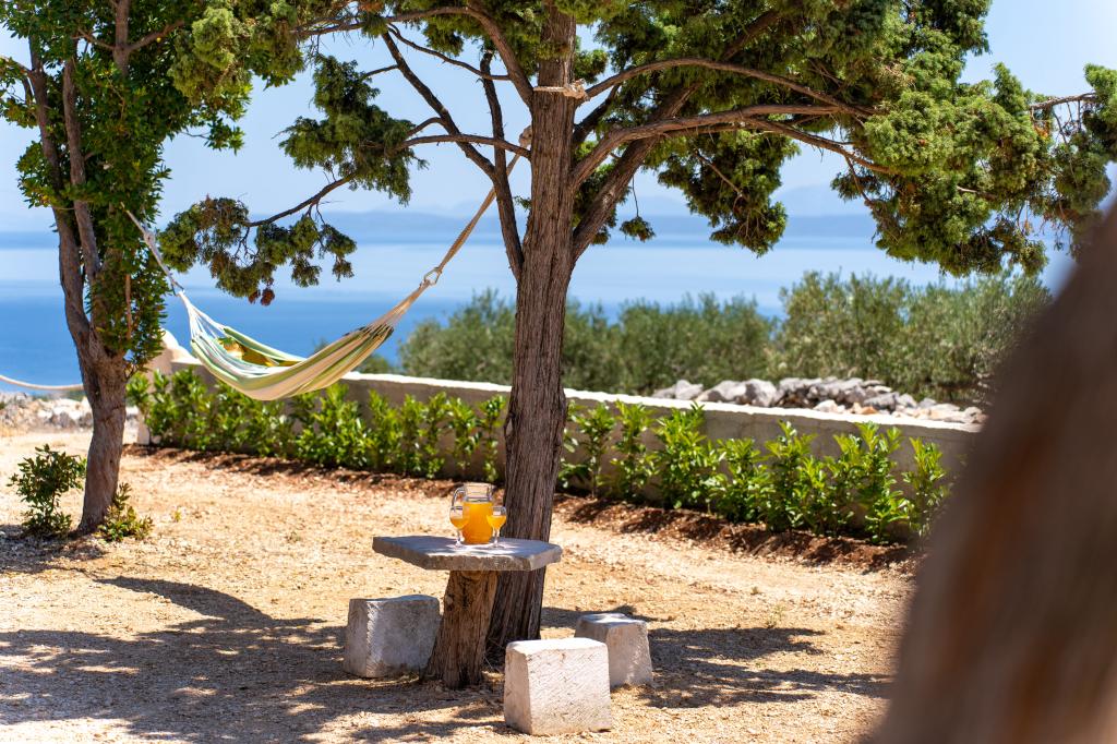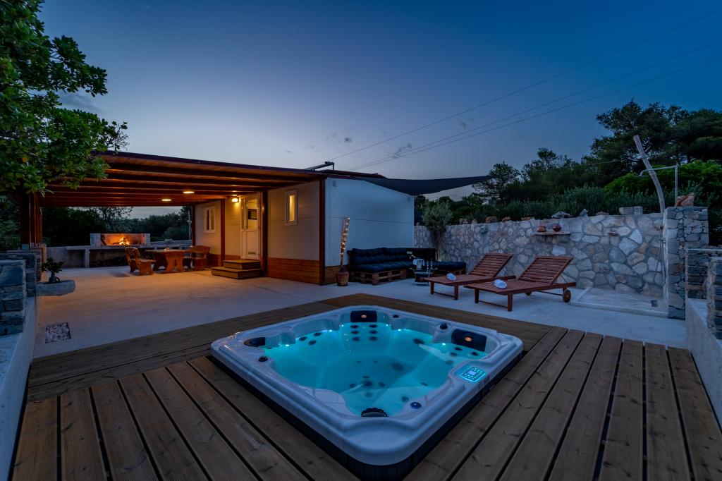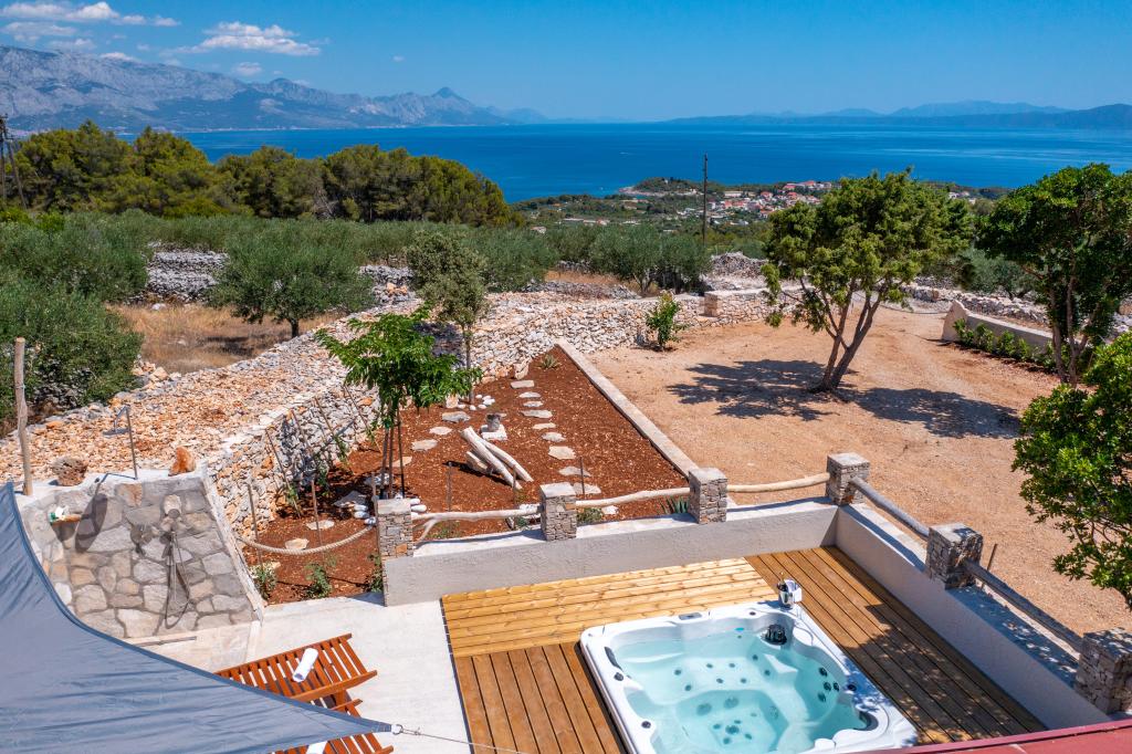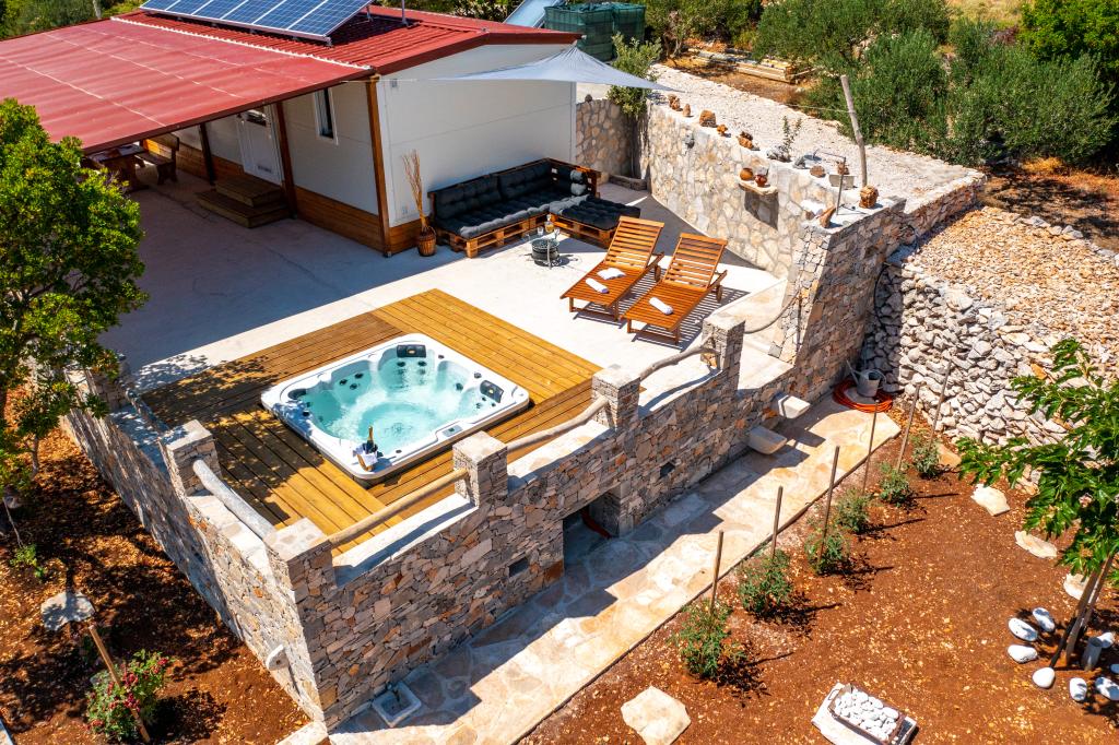 Robinson house Bawa is an ideal place to escape from everyday life. Surrounded by olive groves, Brač stone and the scent of the sea, it provides the perfect opportunity to enjoy every moment. Only 1.5 km from the authentic town of Sumartin, it offers complete privacy, but all the necessary services and amenities are still within reach. Come and welcome the morning with a view of the Biokovo mountain and sunny Hvar from your own jacuzzi. Relax on the nearby beaches and enjoy the sunsets with your special people. Discover an experience you will remember - a vacation like you have never experienced before! We offer you: free parking, jacuzzi with a view, relaxation corner, outdoor shower with hot water, dining area, grill with necessary equipment, living room (Wi-Fi, TV and ceiling fan), kitchen, (stove, sink with hot water, refrigerator, freezer, Nespresso coffee machine, spices...), 2 bedrooms and 2 bathrooms (bed linen and towels included). Blinds and insect screens are on all windows.