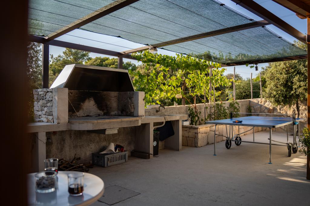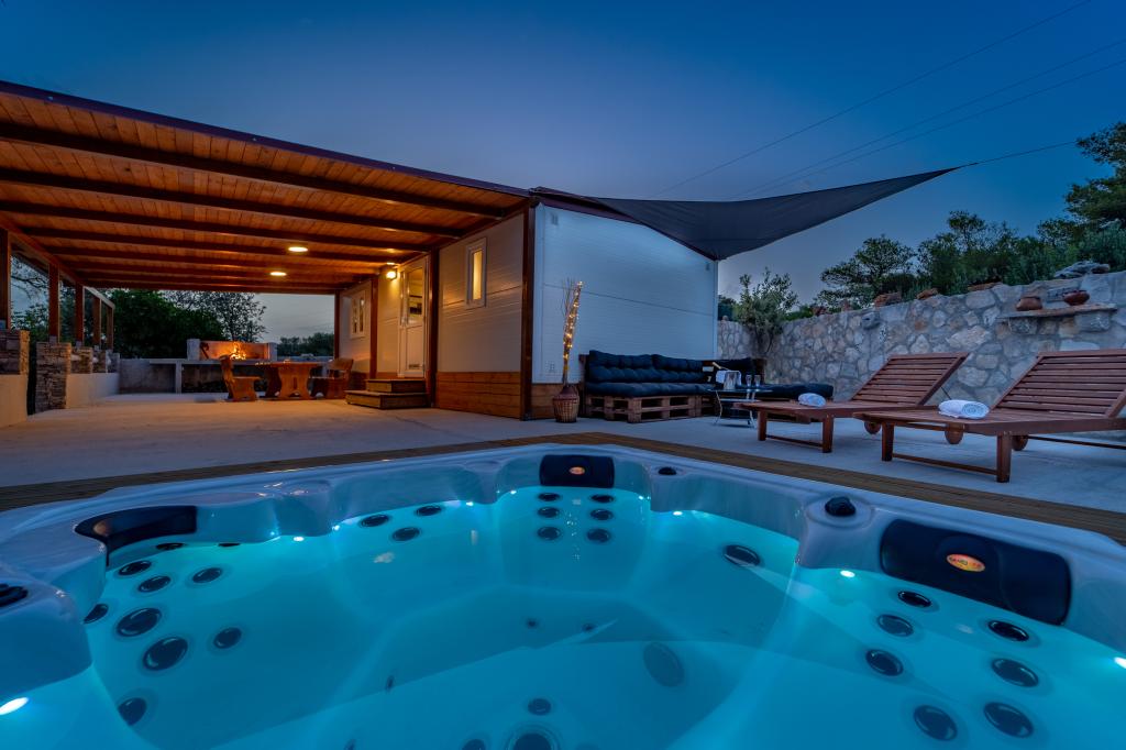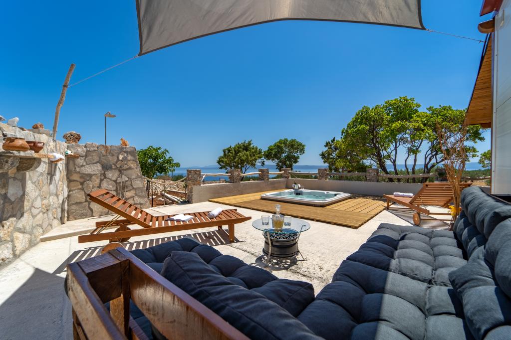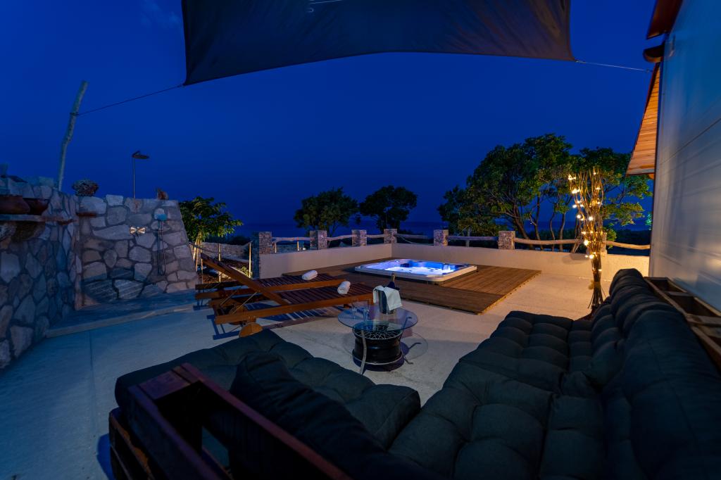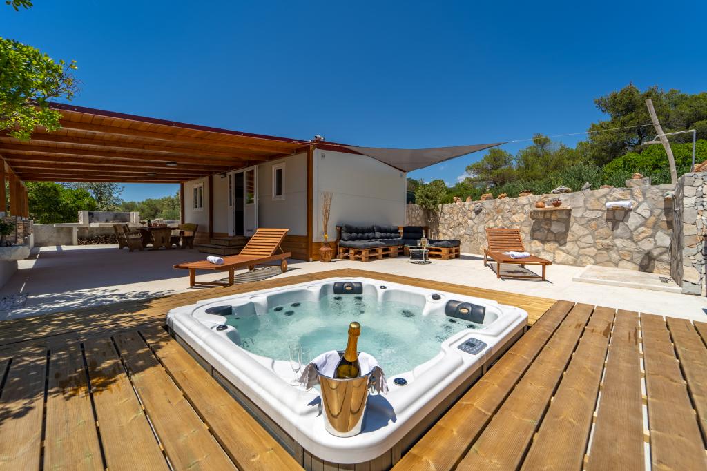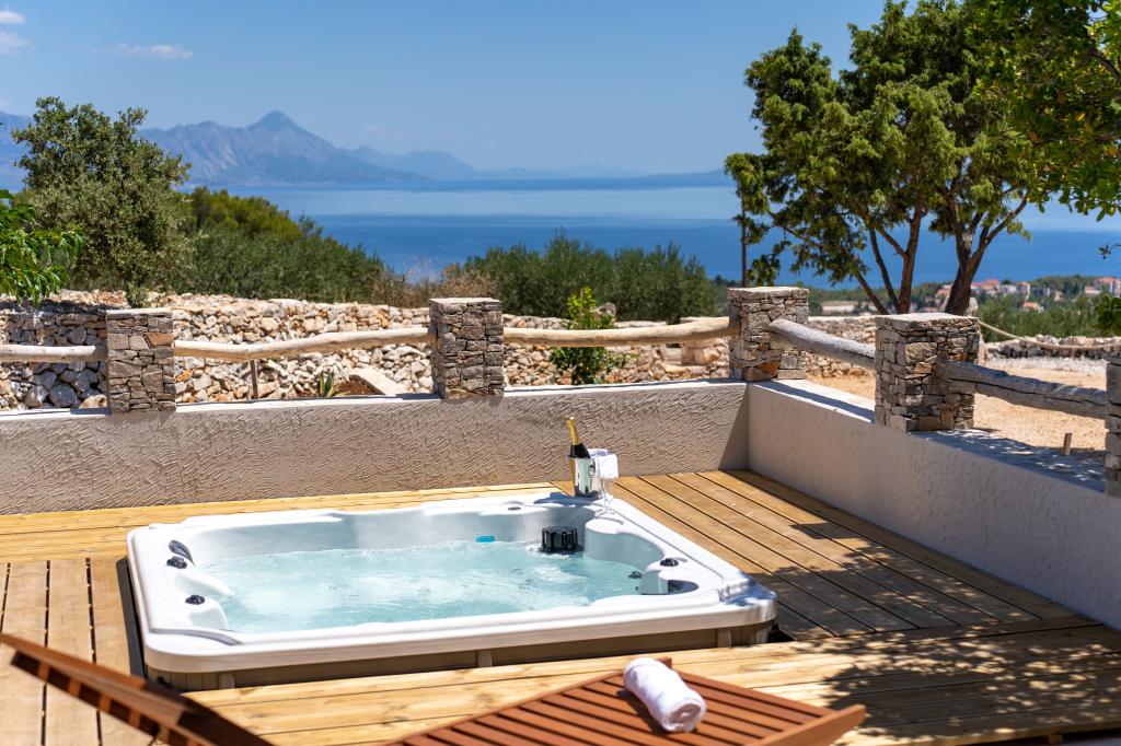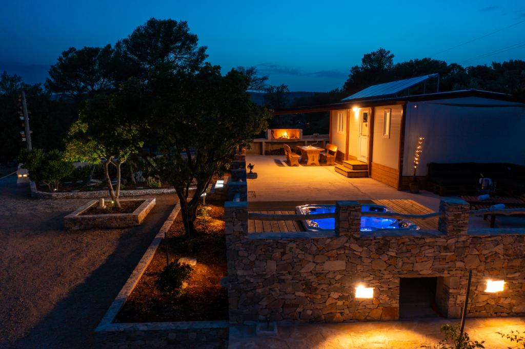 Robinson house Bawa is an ideal place to escape from everyday life. Surrounded by olive groves, Brač stone and the scent of the sea, it provides the perfect opportunity to enjoy every moment. Only 1.5 km from the authentic town of Sumartin, it offers complete privacy, but all the necessary services and amenities are still within reach. Come and welcome the morning with a view of the Biokovo mountain and sunny Hvar from your own jacuzzi. Relax on the nearby beaches and enjoy the sunsets with your special people. Discover an experience you will remember - a vacation like you have never experienced before! We offer you: free parking, jacuzzi with a view, relaxation corner, outdoor shower with hot water, dining area, grill with necessary equipment, living room (Wi-Fi, TV and ceiling fan), kitchen, (stove, sink with hot water, refrigerator, freezer, Nespresso coffee machine, spices...), 2 bedrooms and 2 bathrooms (bed linen and towels included). Blinds and insect screens are on all windows.