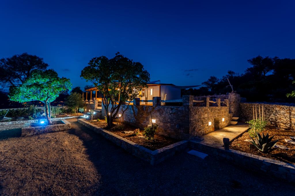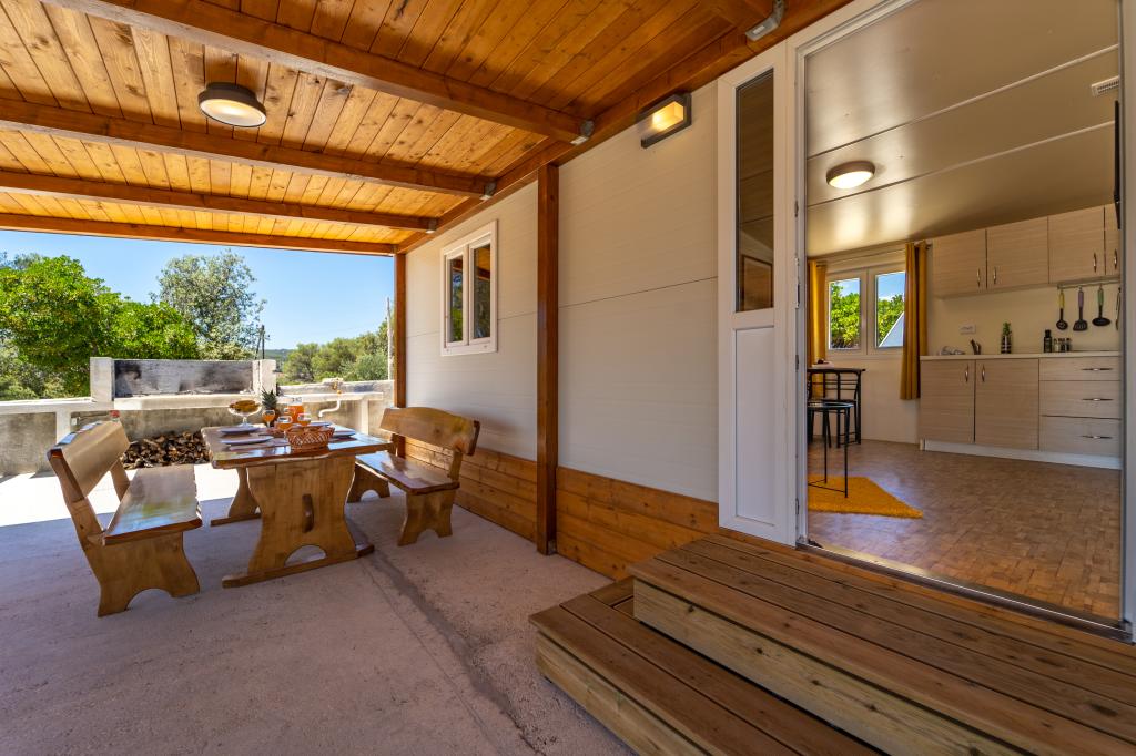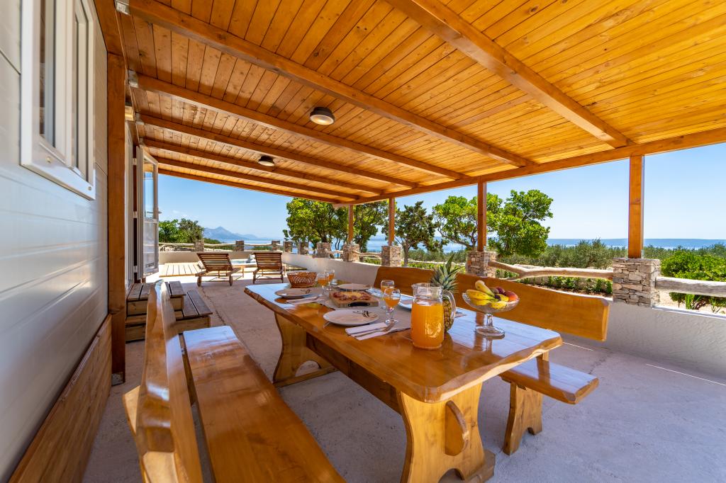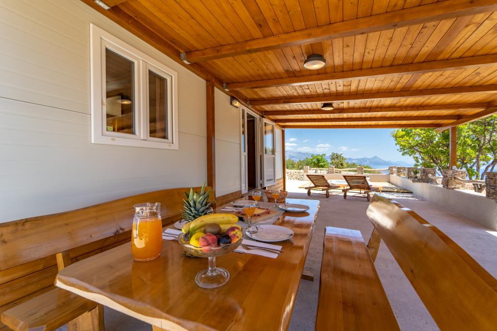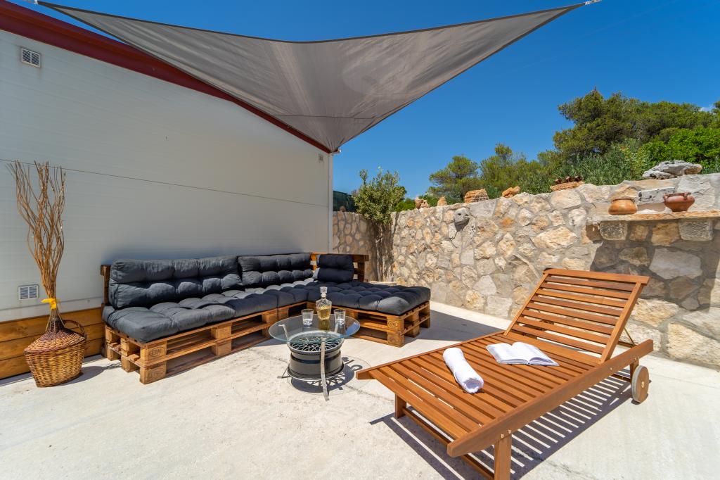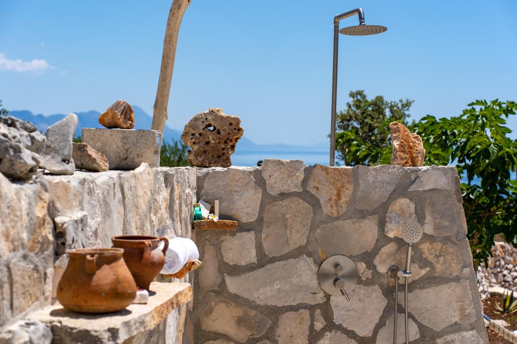 Robinson house Bawa is an ideal place to escape from everyday life. Surrounded by olive groves, Brač stone and the scent of the sea, it provides the perfect opportunity to enjoy every moment. Only 1.5 km from the authentic town of Sumartin, it offers complete privacy, but all the necessary services and amenities are still within reach. Come and welcome the morning with a view of the Biokovo mountain and sunny Hvar from your own jacuzzi. Relax on the nearby beaches and enjoy the sunsets with your special people. Discover an experience you will remember - a vacation like you have never experienced before! We offer you: free parking, jacuzzi with a view, relaxation corner, outdoor shower with hot water, dining area, grill with necessary equipment, living room (Wi-Fi, TV and ceiling fan), kitchen, (stove, sink with hot water, refrigerator, freezer, Nespresso coffee machine, spices...), 2 bedrooms and 2 bathrooms (bed linen and towels included). Blinds and insect screens are on all windows.