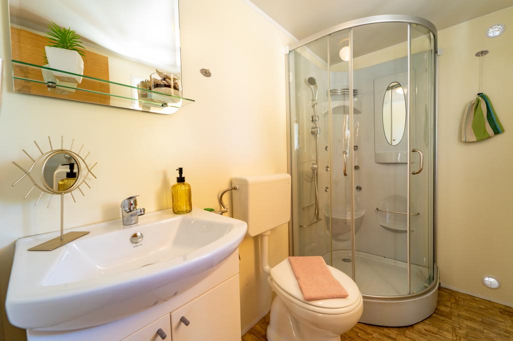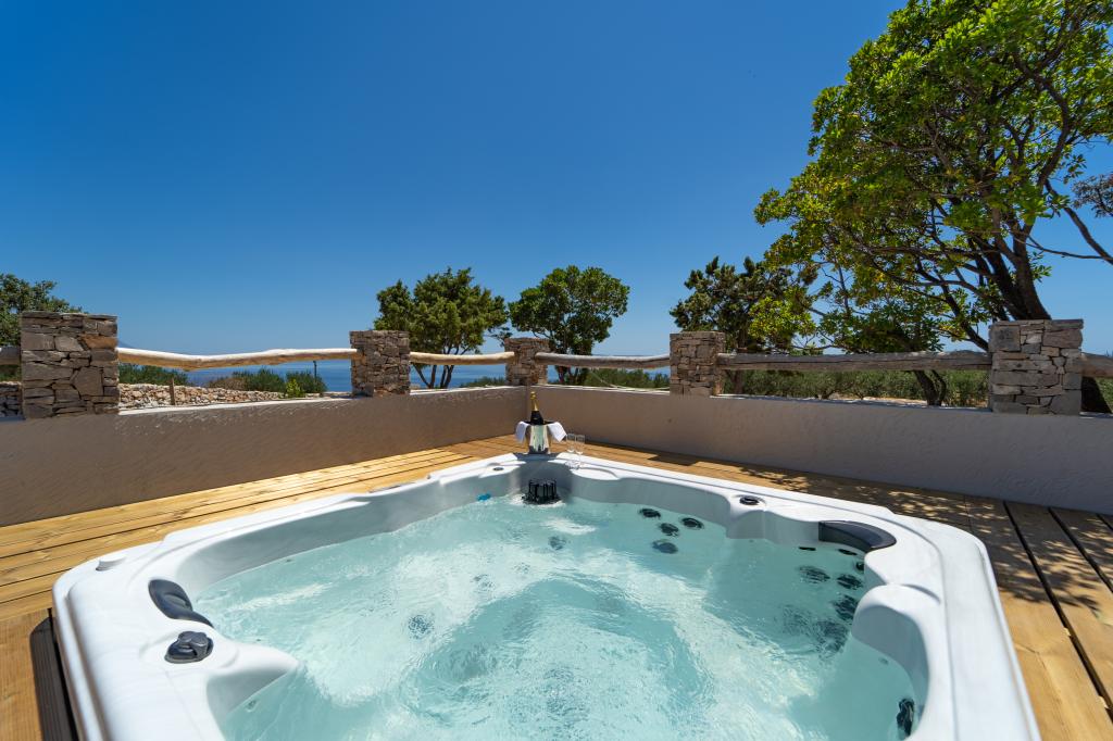 The road to the house is partially concreted, but passable and suitable for cars. The house runs exclusively on solar energy, so it is important to use electricity rationally. The solar system provides energy for lighting, a refrigerator, a freezer, a fan and charging electronic devices (mobile phones, laptops...), while e.g. the air conditioner and dishwasher/clothes washer are not supported. It is best to use electricity during the day, while the system batteries are full. On cloudy days, we recommend saving. Water is constantly available and hot, we bring it in a 15,000 L tank - it is suitable for washing and cooking, but not recommended for drinking. The jacuzzi automatically circulates the water, and the temperature depends on the Sun. The jacuzzi is available throughout the day, while the massage function is available at the press o