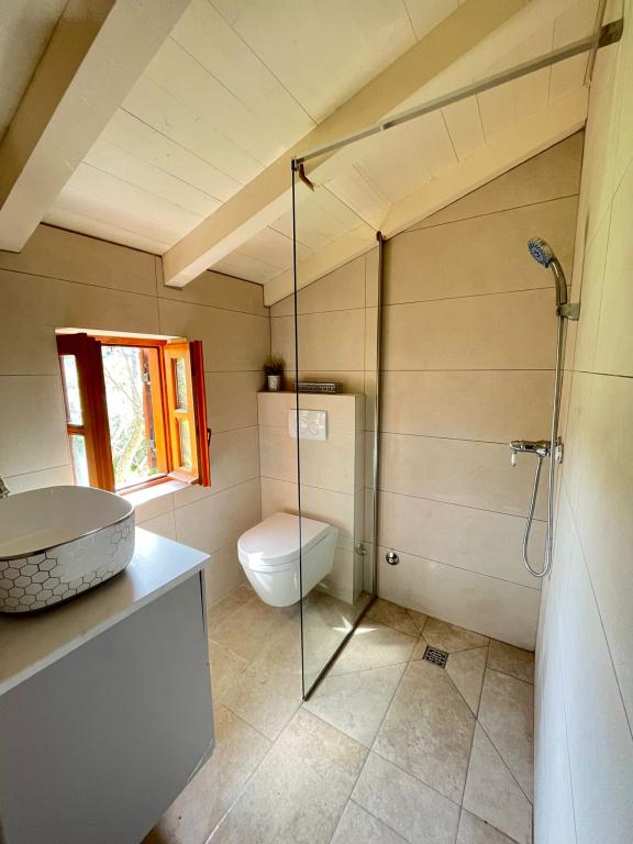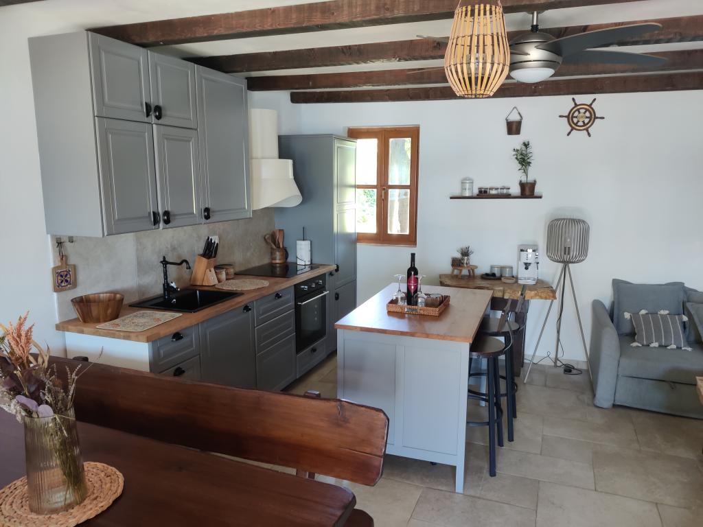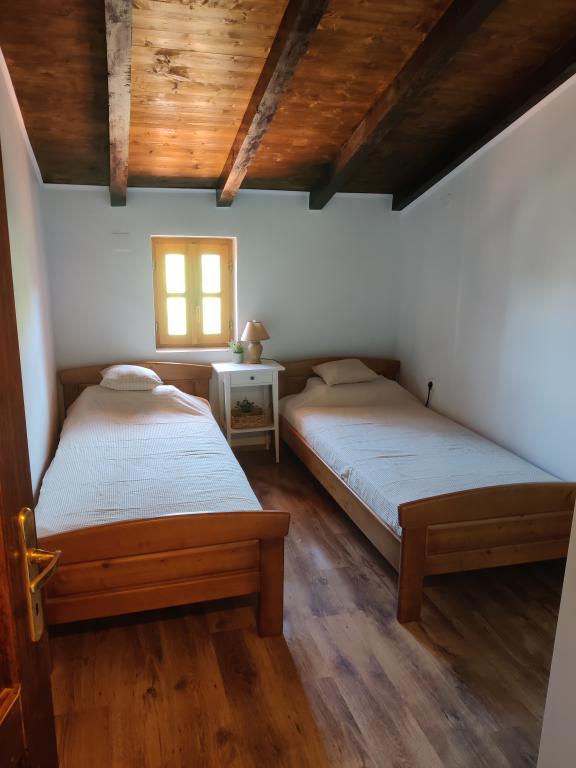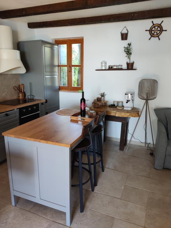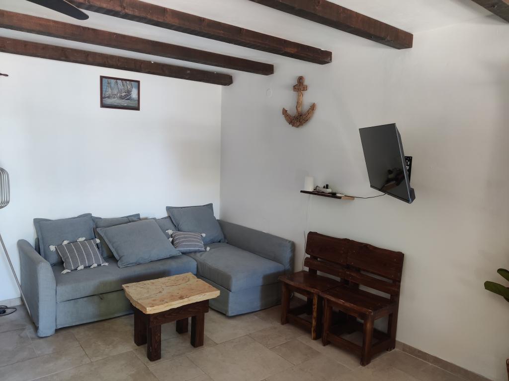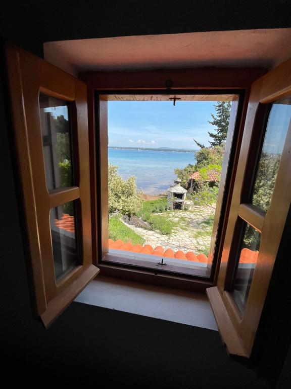 The ground floor of the house consists of one space in which there is a new modern kitchen with an induction hob, oven, dishwasher and refrigerator. Kitchen appliances include a kettle and a coffee machine. The living room consists of a sofa bed that becomes an extra bed, a small coffee table, an old solid wooden shelf and a television. The TV is equipped with satellite channels, and private WiFi is also available. Right next to the window there is a solid table and benches where you can also eat and enjoy the beautiful view of Biograd na Moru. On the first floor of the house (in the attic) there are two bedrooms and a toilet. One has a double bed, and the other has two single beds. Air conditioning is located on the first floor to provide a more comfortable sleep. Behind the house there is a spacious yard that is fenced with