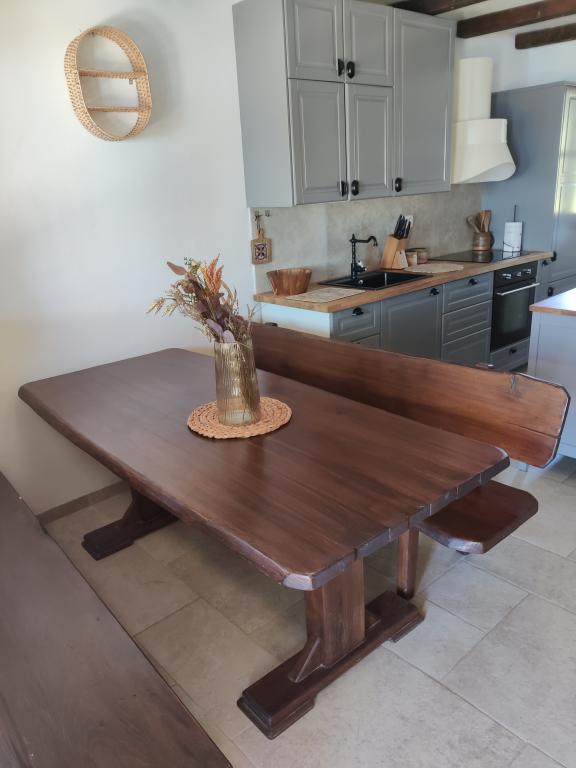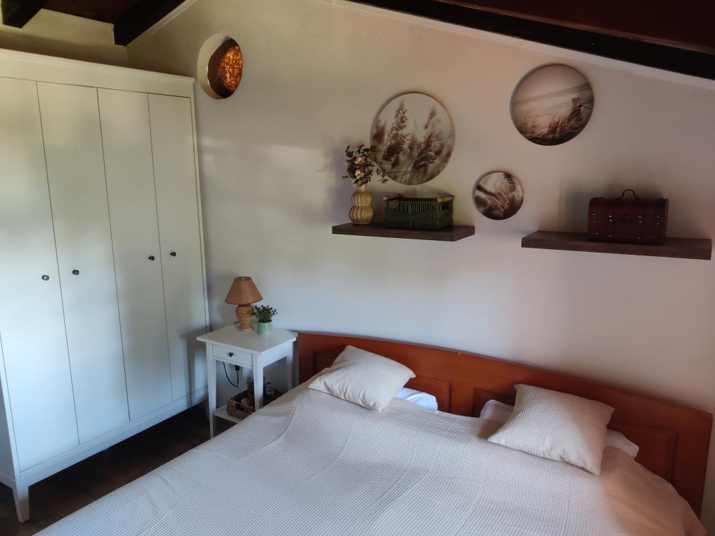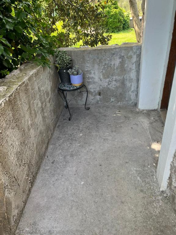 The house is located south of the center of Tkon on the island of Pašman, right next to the road. You can drive through the gate and park your car right next to the house. Next to the house is a nudist camp that is hidden from view by climbing plants. The first building on the other side is 50m away. The house is located 10m from the sea and sandy beach. The sea is about half a meter deep with a sandy bottom, which is ideal for children. In front of the house is a covered wooden terrace with a table and benches where you can enjoy the shade and have lunch, and right next to it is a stone grill. There is also a canopy right in front of the house that provides shade. There is an outdoor shower on the terrace.