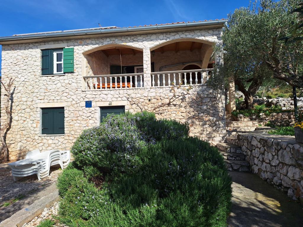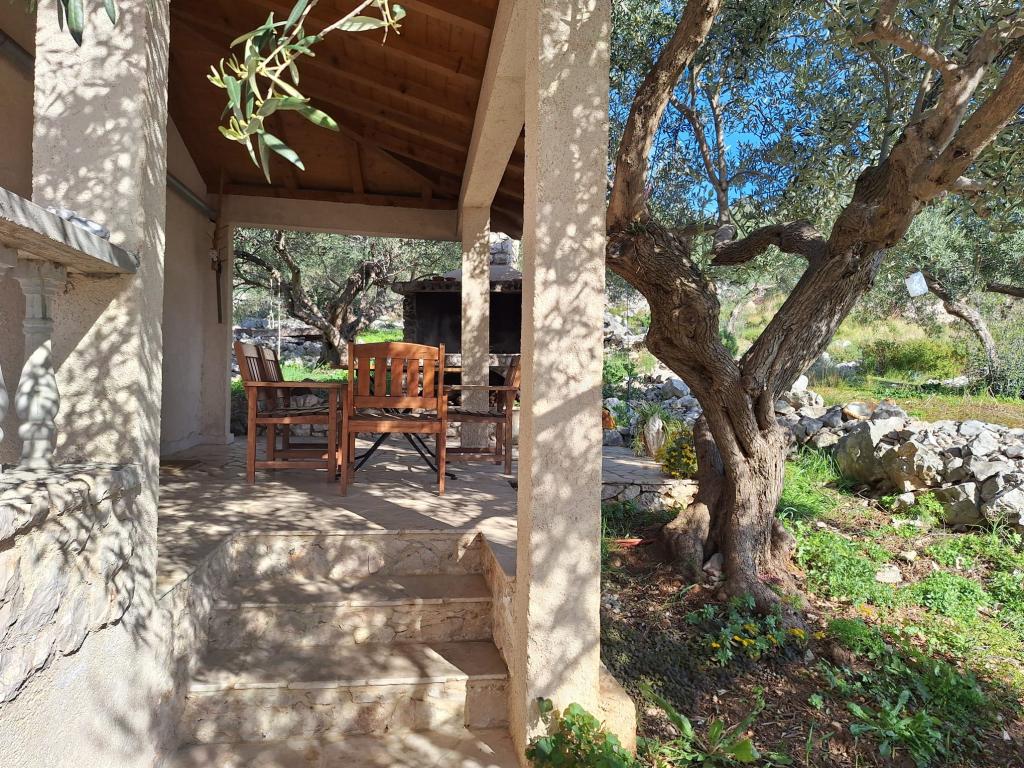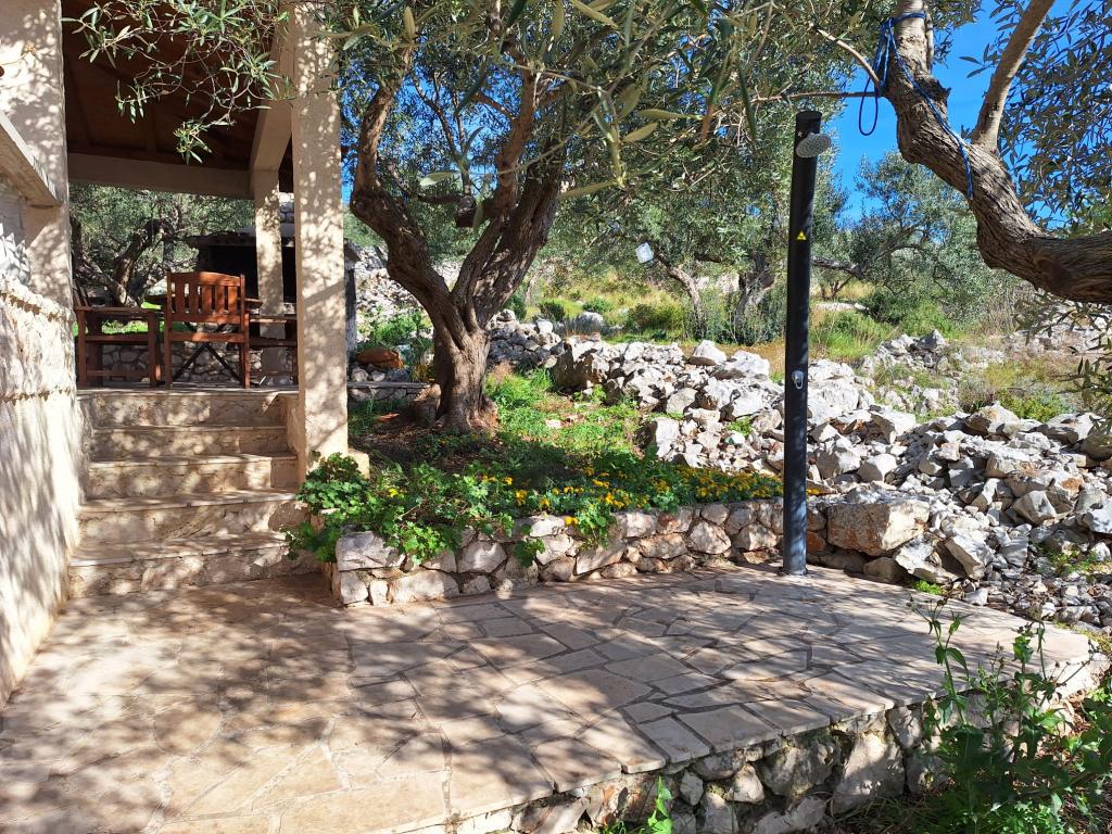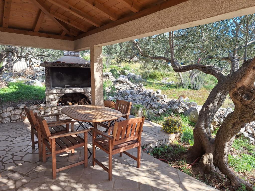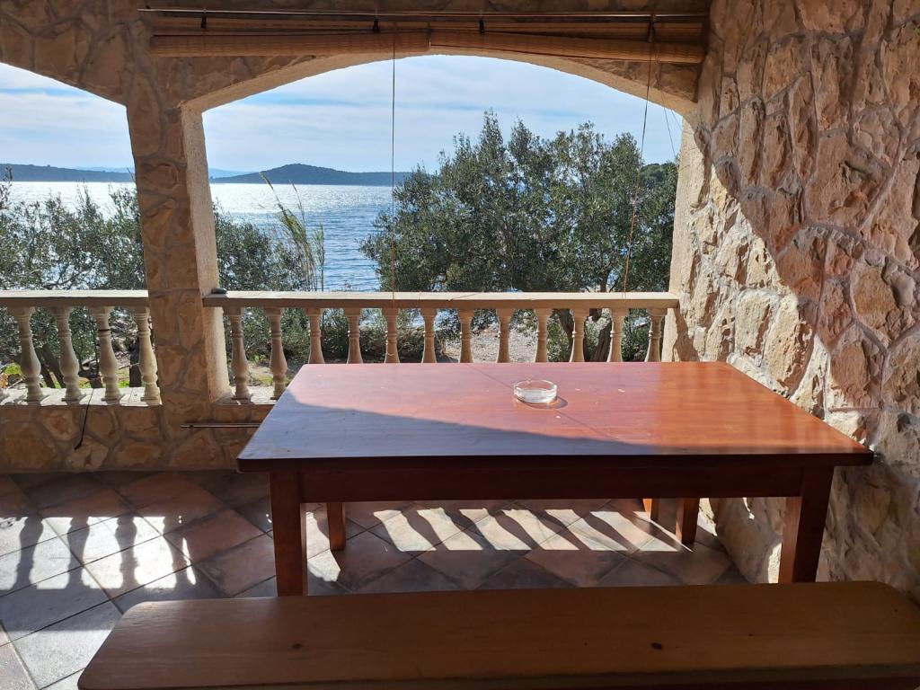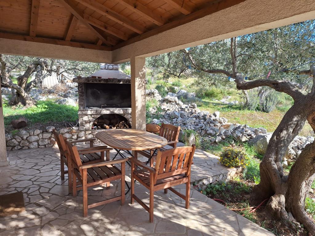 The Robinson house Cvita is located on the south side of Pašman, in Vitane bay. It is 4.5 km from Tkon. Tkon can be reached by ferry from Biograd (15 min. drive). The property has two bedrooms with a ceiling fan for a comfortable sleep, a bathroom with a shower, a living room with a kitchen and a covered terrace with a grill. The house is equipped with 220v electricity via solar collectors, hot water, wi-fi, solar shower, parking... In the living room there is a pull-out sofa (extra bed for two). In front of the building is a jetty for mooring boats. There are 4 deckchairs with umbrellas on it.