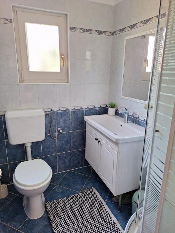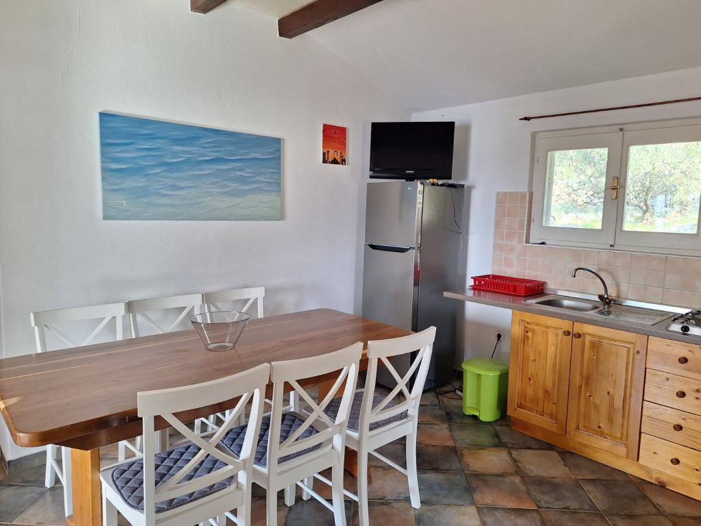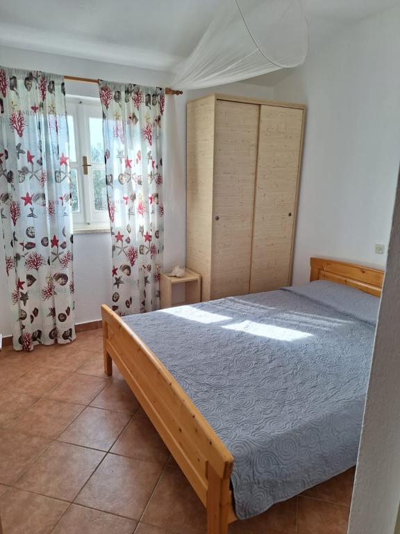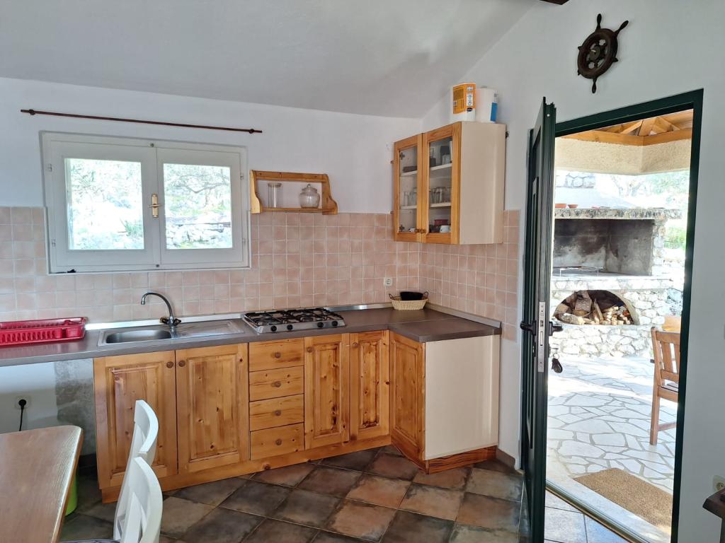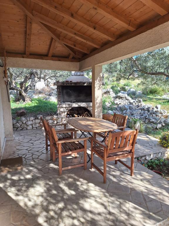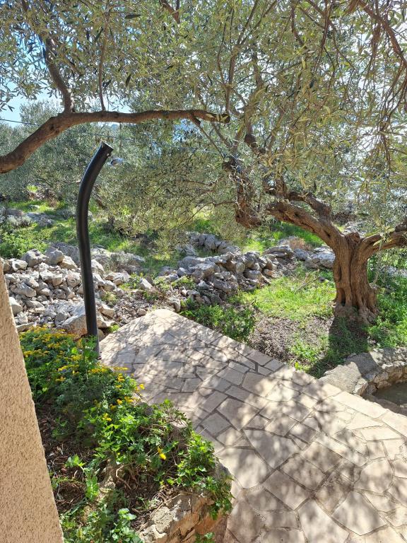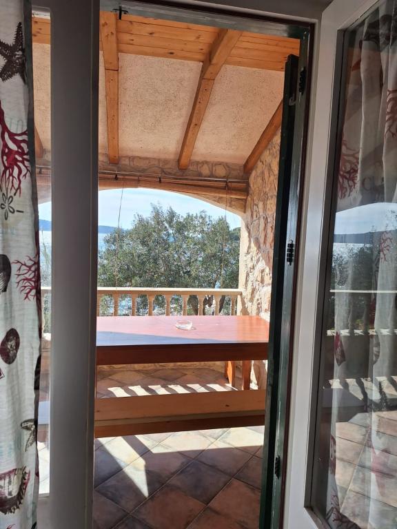 The Robinson house Cvita is located on the south side of Pašman, in Vitane bay. It is 4.5 km from Tkon. Tkon can be reached by ferry from Biograd (15 min. drive). The property has two bedrooms with a ceiling fan for a comfortable sleep, a bathroom with a shower, a living room with a kitchen and a covered terrace with a grill. The house is equipped with 220v electricity via solar collectors, hot water, wi-fi, solar shower, parking... In the living room there is a pull-out sofa (extra bed for two). In front of the building is a jetty for mooring boats. There are 4 deckchairs with umbrellas on it.