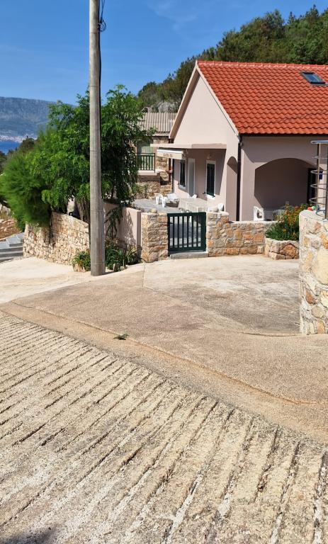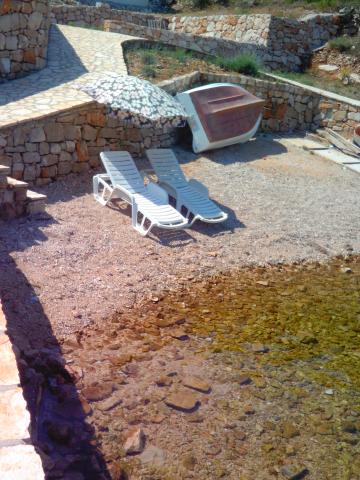 OSKORUŠICA is a beautiful little bay in the central northern part of the island of Hvar, with a view towards Bol on the island of Brač. The house consists of 2 apartments, one for max 5 people, and the other for max 2 people. Both apartments have electricity, water and air conditioning. They are 10 m from the sea and a beautiful pebble beach. The apartment for 5 people consists of a room with a main bed for 2 people, a living room with a sofa bed for 2 people, and a folding bed for a child up to 12 years old. The apartment has a kitchen with a stove, a microwave, and all the necessary utensils for eating and cooking. , fridge (with freezer compartment), TV, air conditioning and a large terrace in front of the apartment, fireplace. It has a bathroom with a shower and a washing machine. Apartment for 2 people consists of one room with a bed for 2 people. The apartment has a mini kitchen with a stove, all the necessary utensils for eating and cooking, a fridge (with a freezer section), TV, air conditioning, terrace, bathroom with shower.