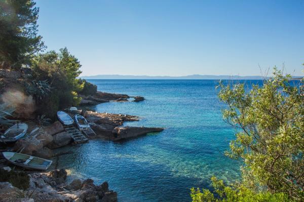 The house has a capacity of up to 5 people, located on the island of Hvar in Gromin Dolac. The property has 2 separate bedrooms, a kitchen, a living room and a toilet, both rooms have a double bed, and in the living room there is a sofa set. There is also an outdoor toilet and an outdoor shower on the property. Ferry tickets are not included in the price. We recommend arriving by early afternoon, because reaching the property at night is difficult. The distance from the sea is 1 meter. The house is connected to the electricity grid and is air-conditioned and covered by a wifi internet signal. Water is from our own water tanks (please use in moderate quantities)!!!. Public transport is not frequent in this part of the island, so we recommend that you visit us by car.
