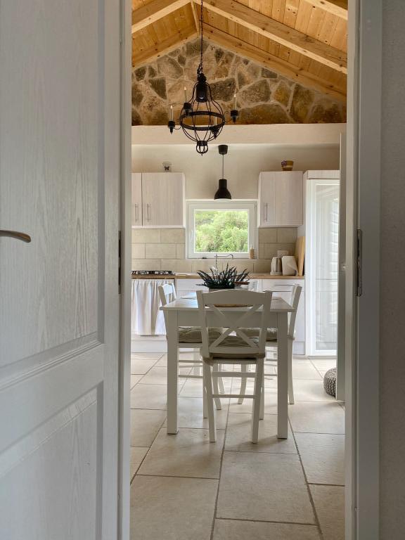 The location and the house are great. I can say it's a very comfortable Robinson because the house is practically new and very nicely furnished... the photos are what awaits you. For a small backup option, you have a 15-minute paddle boat ride to the shop in the marina or a 700m walk along the coast along the rocks, and there's already a path. There are 6 houses in the bay, but this is the only one for rent and we were alone. You even have hot water in the shower and paddle... in short, everything you need and very nice, friendly owners who bring you to the location with a fast boat.