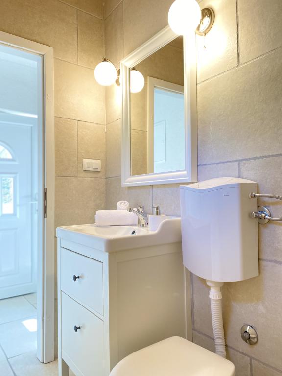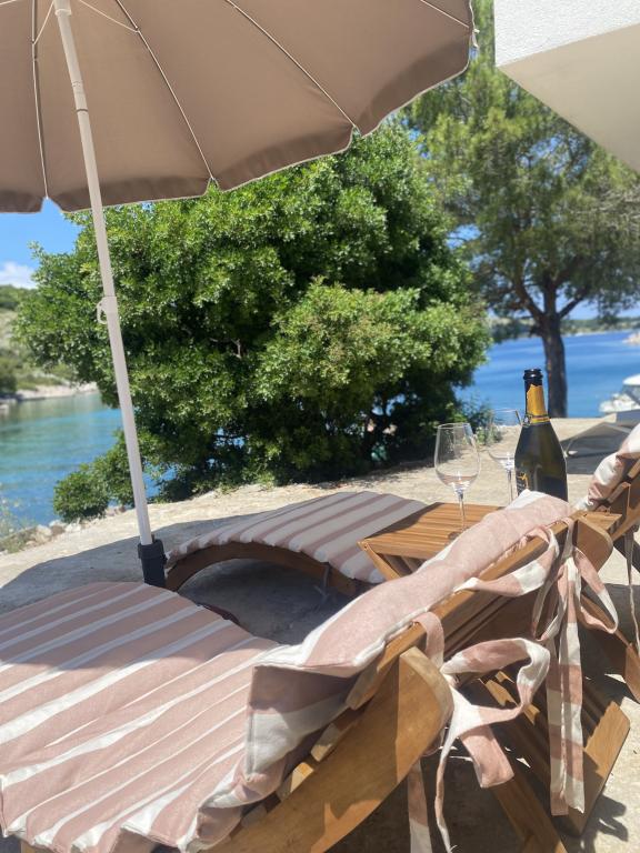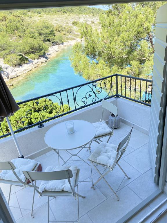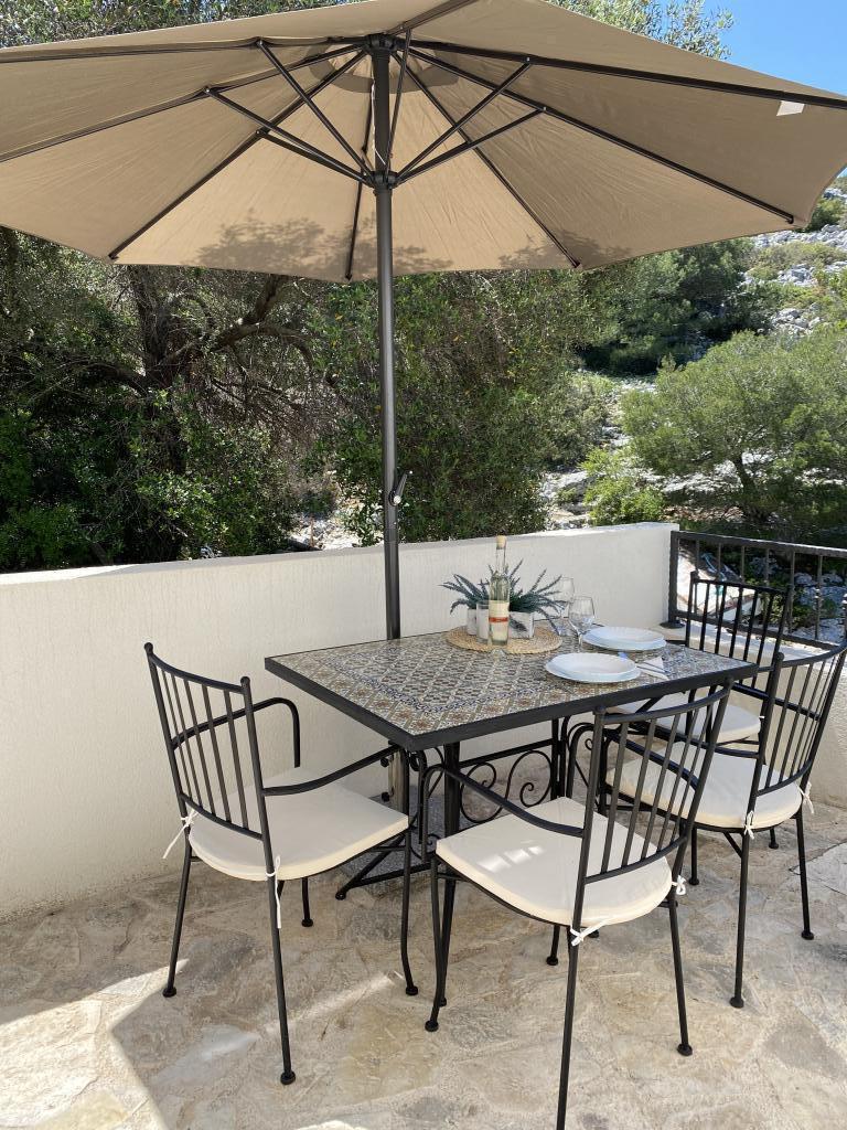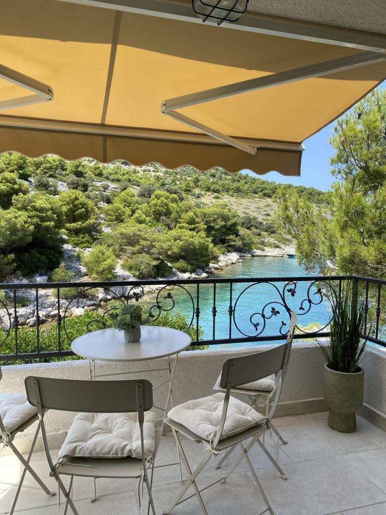 The newly built holiday house "Levina" is located in an oasis of greenery and peace, a perfect place for relaxation and enjoyment. It is decorated in a country style. It is located 10 m from the sea in the bay. The balcony offers a beautiful view of the sea. The bay is full of greenery, it is tucked away, you will feel separated from the world, overwhelmed by peace and beauty. There are only a few other houses in the bay. The house has two bedrooms, a bathroom with a shower, a balcony with a beautiful view and an outdoor terrace with a grill. The house is equipped with a portable air conditioner and a fan. Figuratively speaking, water on the island is gold, so it must be used rationally. The water comes from natural springs, rainwater. The water is not for drinking, it can be used for showering and washing. Top restaurants, ACI Marina and a market are located in the neighboring bay. You have about a 20-minute walk along the rocks or by boat to get there. You are literally located at the entrance to the Kornati National Park. It is best to buy groceries and drinking water at the port of departure.