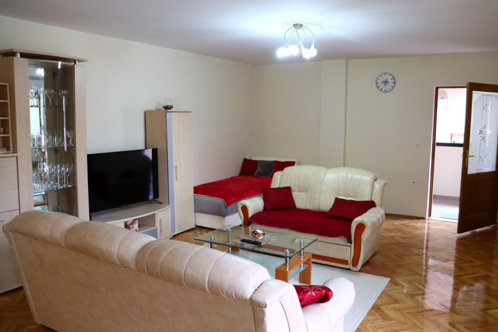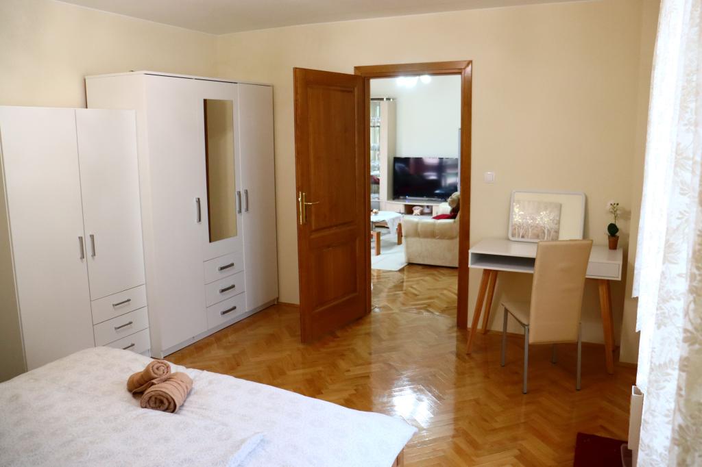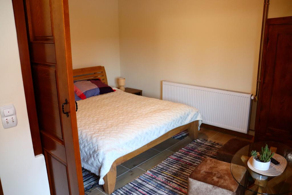 Newly renovated and modernly equipped apartment in a quiet part of the village. It consists of a bedroom, living room, hallway. bathrooms, kitchens with dining rooms and terraces. Access and use adapted to use by persons with disabilities. Capacity: four adults. Room Newly renovated room with attached bathroom in traditional style. Capacity: two people (double bed).