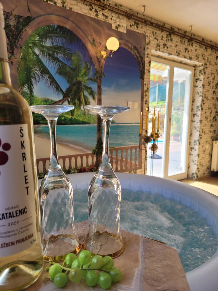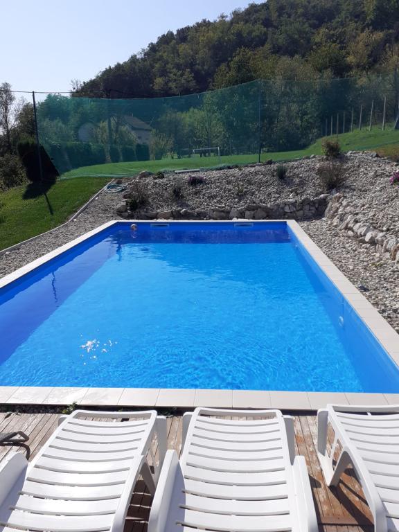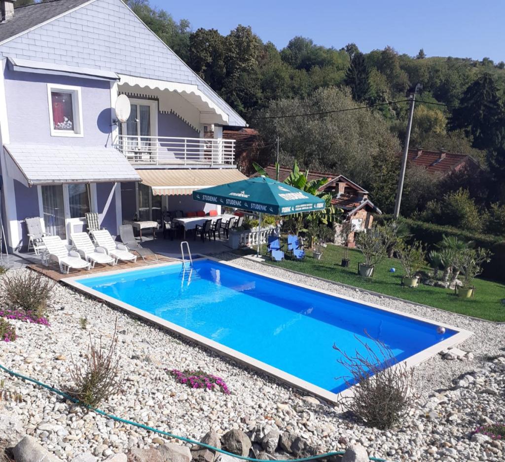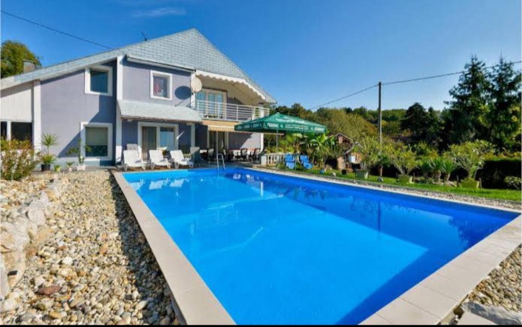 Rural holiday house "Vlado" Sveti Ivan Zelina, Nespesh Kitchen, dining room, living room with sofa bed, 4 bedrooms, capacity for 11 people, plus extra beds, WC. Microwave oven, stove, kettle, washing machine, table service. Hydromassage pool Fireplace, central heating (gas) TV, radio, Wi-Fi Parking (capacity for 7 or more cars Gazebo with all equipment Large fenced children's playground in the yard Two outdoor paved terraces Outdoor pool-46m2 Access to the house is possible for people with disabilities Pets Welcome City center Sveti Ivan Zelina 15KM Airport 29KM Zagreb city center 30KM