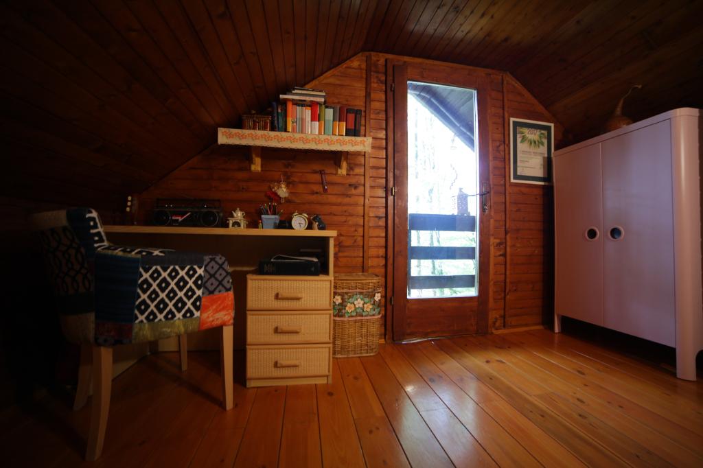 A house in the forest with a beautiful view of the Kupa river. Two bedrooms, one in the attic with a view of the river, the other in the lower part with a panoramic window and a view of the forest. Fishing, walks in the forest, picking mushrooms, collecting chestnuts and medicinal herbs, barbecues, cycling (use of two bicycles included in the price), swimming in Kupa, which is warm and calm in summer, resting in the natural shade, peace and quiet with the chirping of birds and a view of tree tops. We also offer a sauna with a wood stove and a window with a panoramic view of the forest.