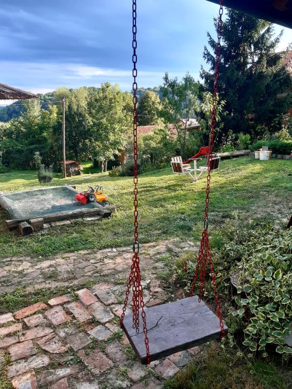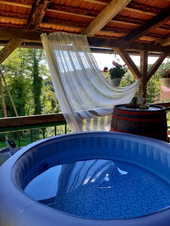 Holiday house Pčelica is located in Sekirišće, Sveti Križ Začretje, in the immediate vicinity of the Roses Outlet Center. It is located outside a populated place and is surrounded by nature and a beautiful view of the surrounding hills and Sljeme in the distance. The house is fully furnished. Open bedroom in the attic. Kitchen, living room and toilet with bathroom on the ground floor. A terrace with a table and an extension of the terrace with a jacuzzi, which is offered at the beginning of the 5th of the month. Terrace on the ground floor with tables, grill, oven, kettle and fridge. For children, a slide, swings, a carousel and a sandbox. The price depends on the number of people.