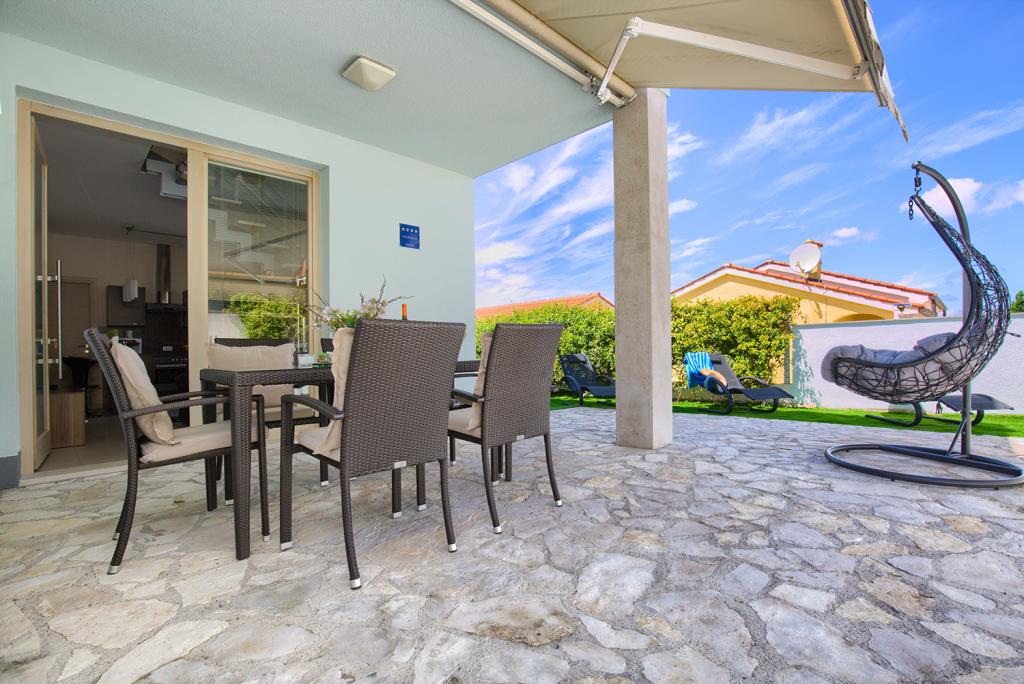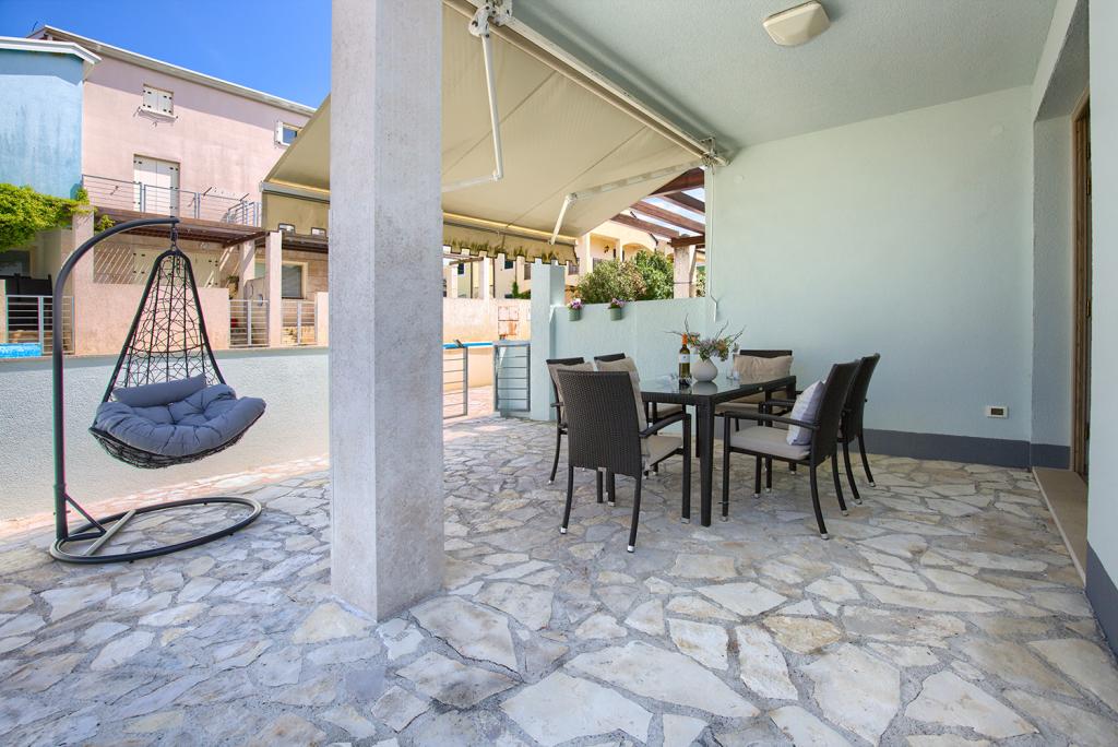The terraced house in the village of Volme near Banjol offers guests a pleasant and beautiful stay. It is equipped with quality furniture and each room has air conditioning, which provides a pleasant stay on warm summer days (3 air conditioners). The house has two bedrooms for 2 people, two toilets, a kitchen with a living room in which there is a corner sofa bed, very comfortable for 1 person. In one bedroom there is a folding cot. The house also has a courtyard with a barbecue that is used only by guests, and within the building there is a beautiful swimming pool that is also used by the surrounding buildings, mostly weekenders. The sea is only 300m away, and only 3000m is the RT Kamenjak with the most beautiful beaches in Istria. There are many cycling paths in the village, so you can also get to Premantura by bike. For pets, the surcharge is 60e for the entire stay