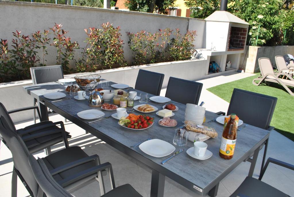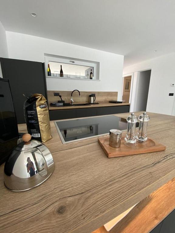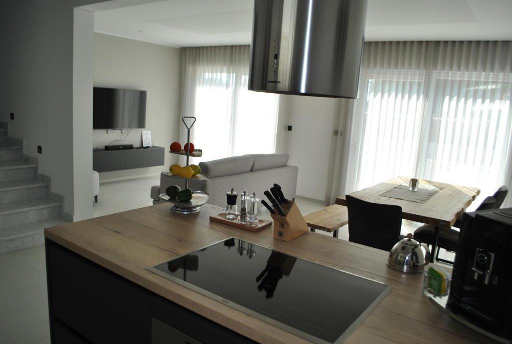 The holiday home is approximately 180 square meters and is located in the village of Volme near Banjol. Volme is easy to reach by car or plane (Pula airport). The village is located directly on the sea with its own harbor and the sea can be reached in just a few minutes' walk (approx. 300m). The holiday home is located in an exclusive holiday park with several units and lockable gates. The house is newly built and completed in early 2021. In the garden of Villa Joka there is a private swimming pool, an outdoor kitchen with a sink and an outdoor barbecue. A large carport with 2 parking spaces is located right next to the entrance to the house. Additional parking spaces are in the immediate vicinity.