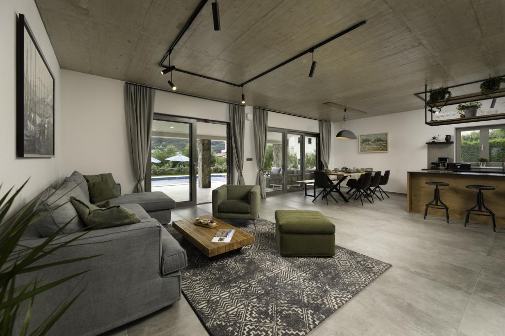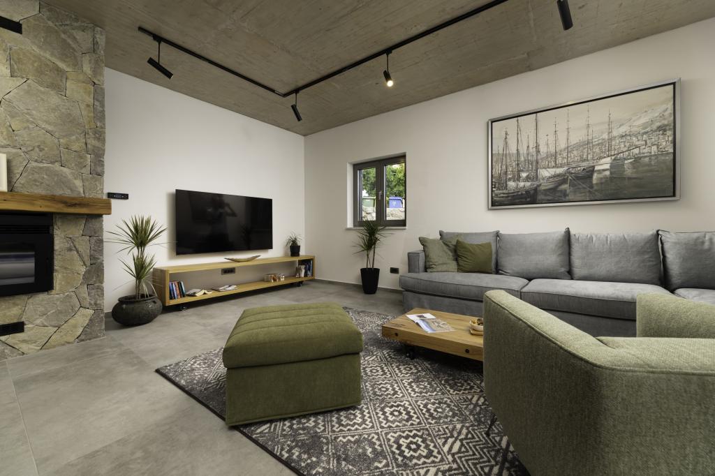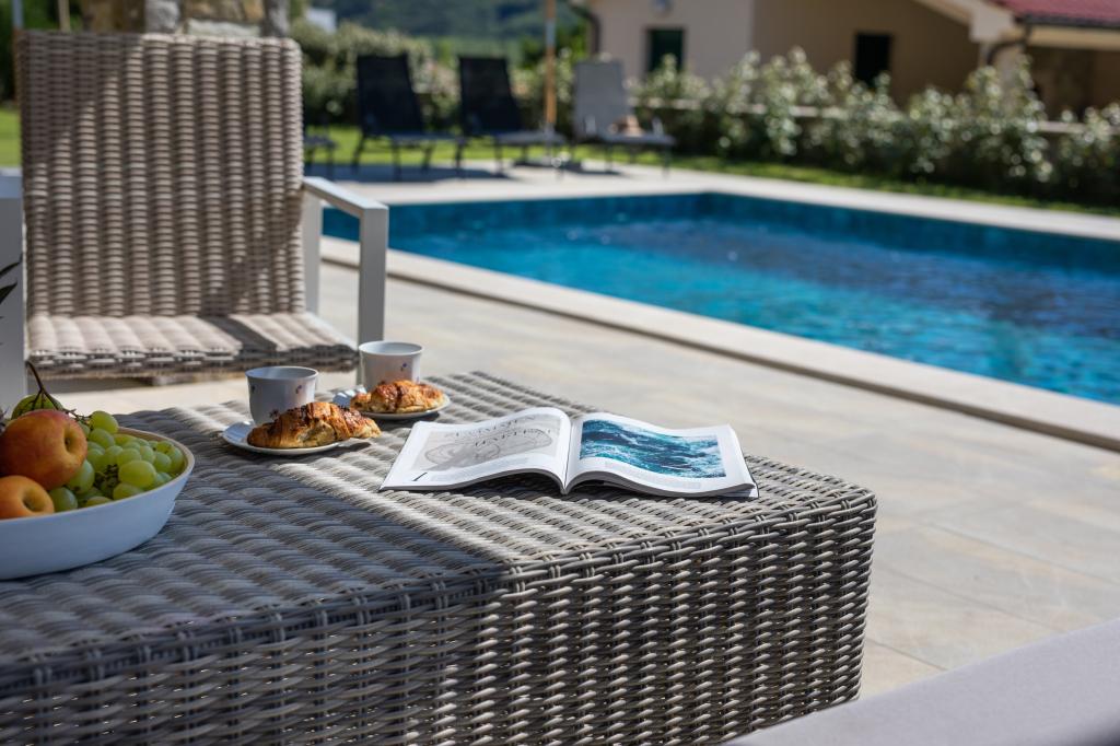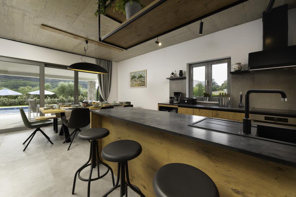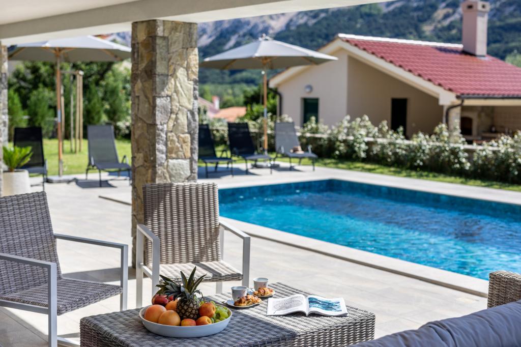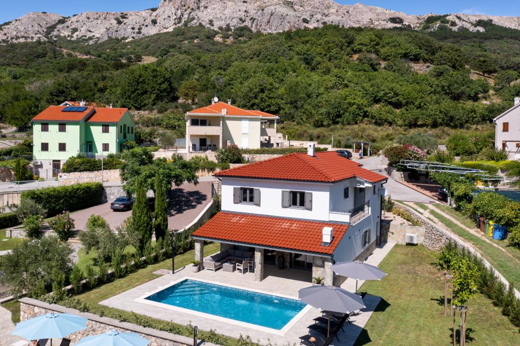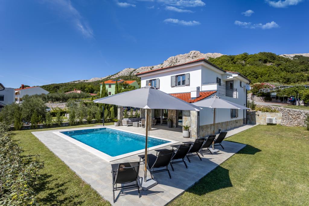 If you are looking for the perfect combination of traditional and modern holiday home, Villa St. Lucia is the perfect choice for you. Bright and spacious interior with a large pool and green garden will surely make your vacation unforgettable. Villa St.Lucia is located In Jurandvor only 1 kilometer away from the sea and center of Baška, island of Krk. Villa St.Lucia is a newly built villa with four bedrooms and four bathrooms and can accommodate a maximum of 9 guests. It has central underfloor heating and a Finnish sauna, so it is also perfect for spring or autumn holidays.