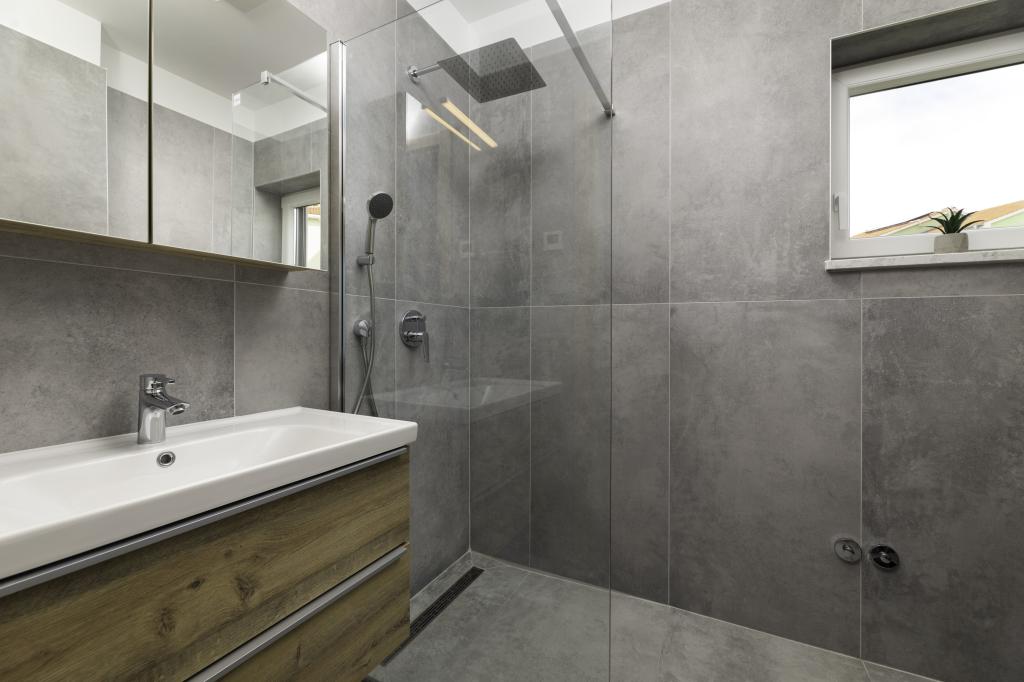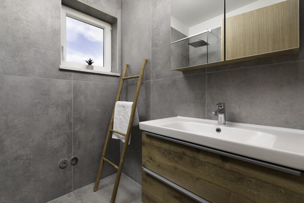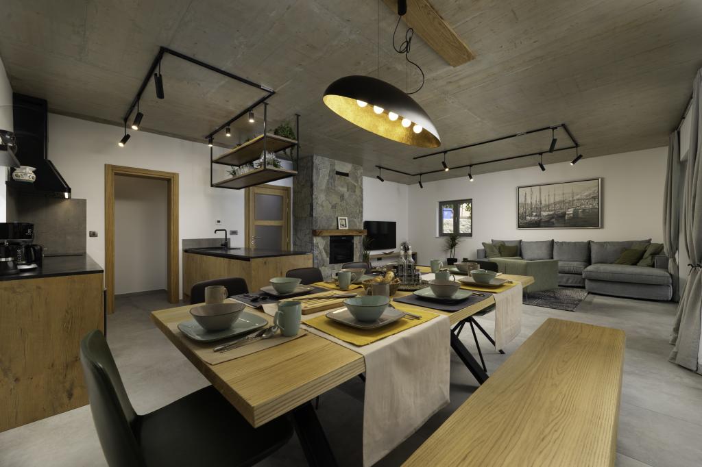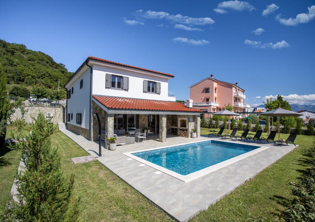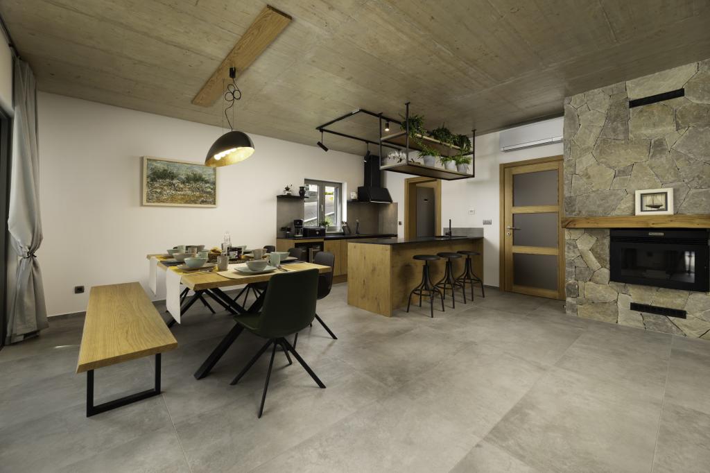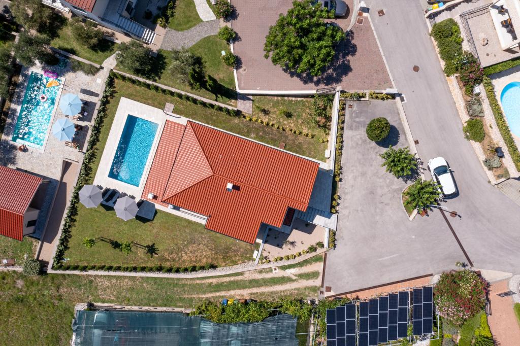 If you are looking for the perfect combination of traditional and modern holiday home, Villa St. Lucia is the perfect choice for you. Bright and spacious interior with a large pool and green garden will surely make your vacation unforgettable. Villa St.Lucia is located In Jurandvor only 1 kilometer away from the sea and center of Baška, island of Krk. Villa St.Lucia is a newly built villa with four bedrooms and four bathrooms and can accommodate a maximum of 9 guests. It has central underfloor heating and a Finnish sauna, so it is also perfect for spring or autumn holidays.
