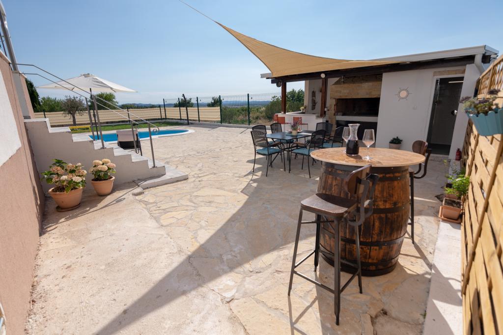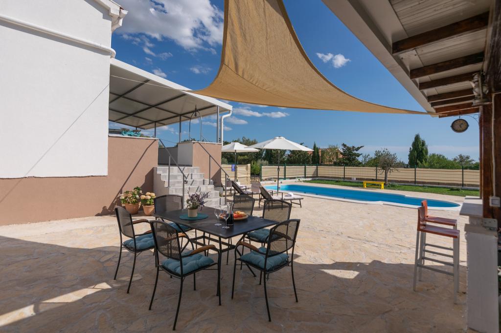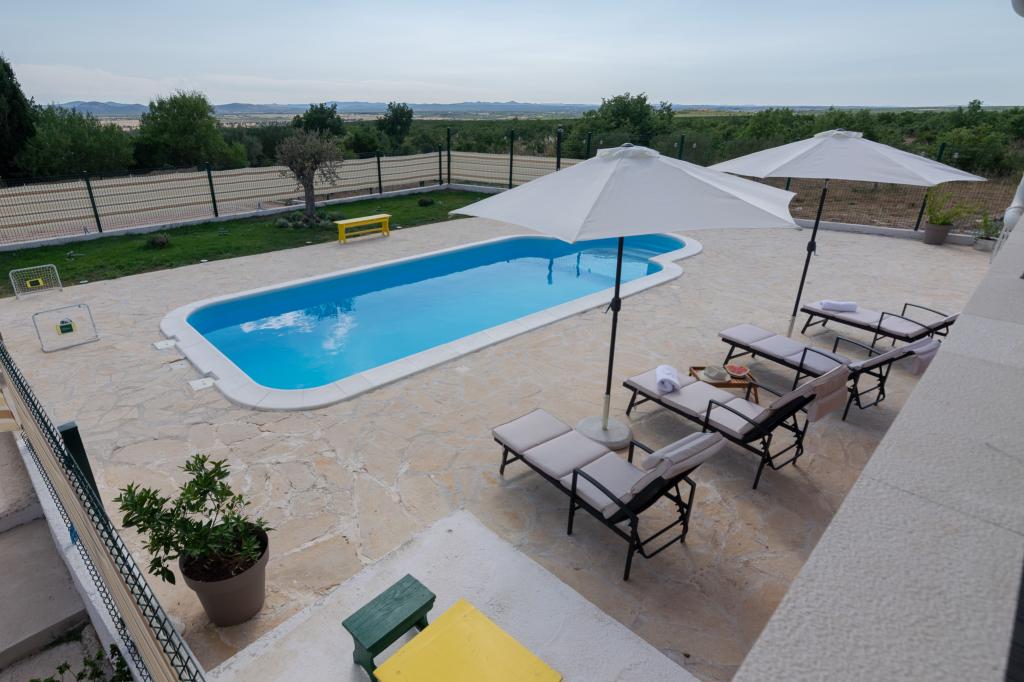 Our fully equipped holiday home offers all the necessary comfort and privacy, located only 20 minutes from Zadar, where there are beautiful beaches and interesting cultural attractions. It is located in the peaceful surroundings of the town of Nadin, known for its wine and olive growing. A large heated swimming pool, fireplace and terrace provide refreshment and relaxation. Only 1-2 hours drive away, there are four National Parks and two Nature Parks. If you want to enjoy the smells and sounds of untouched nature, this holiday home is the ideal option for you. The peace and quiet of the rural village, along with the indispensable offer of indigenous top-quality wines and olive oils, allows our guests to have the necessary rest...