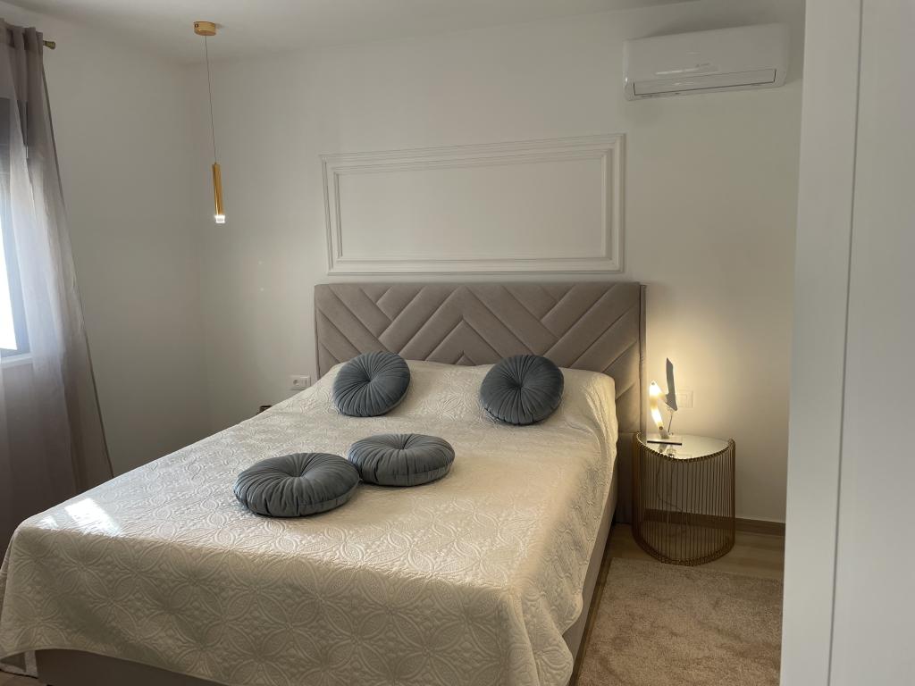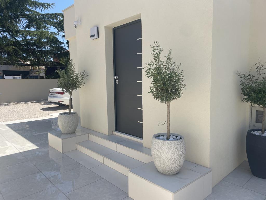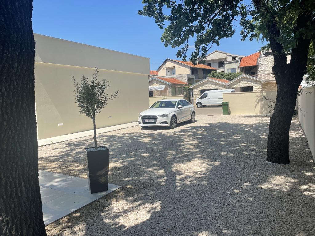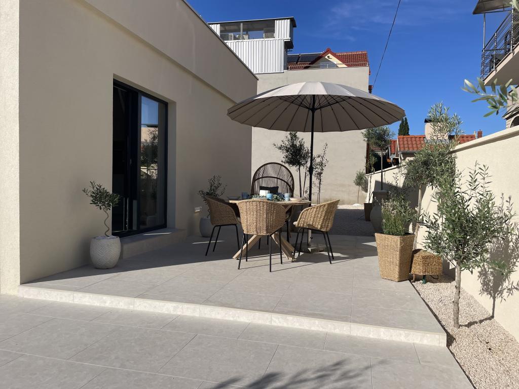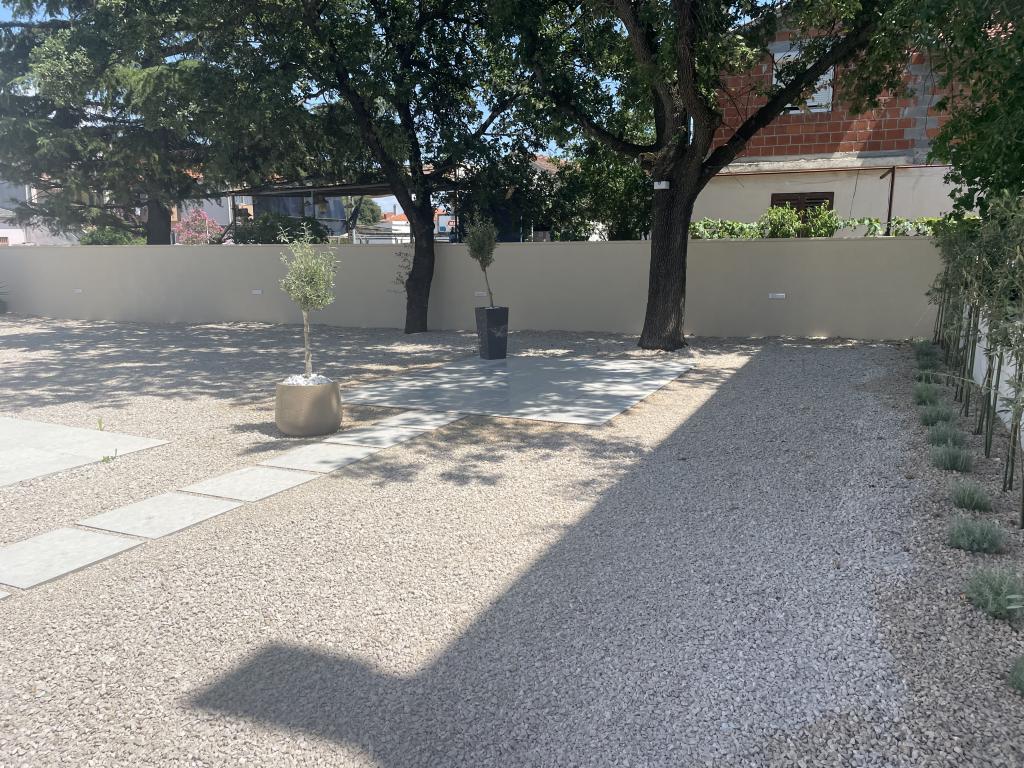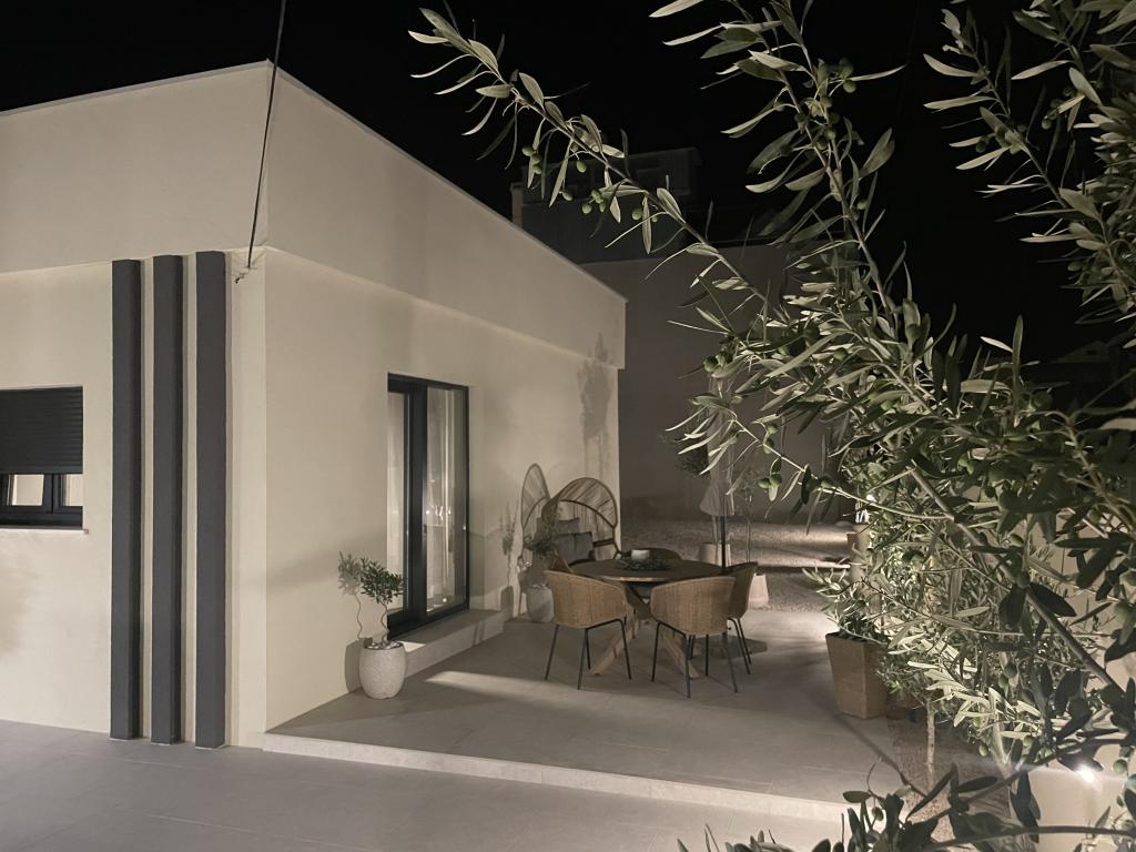 Modernly decorated villa with a large yard and parking. Designer furnished and 10 minutes' walk from the beach, and 5 minutes' walk from the center. The building has 3 bedrooms, is fully air-conditioned and has underfloor heating. The area around the house is arranged for a full-day stay, especially considering the hundred-year-old trees that provide exceptional shade in the hot summer months.